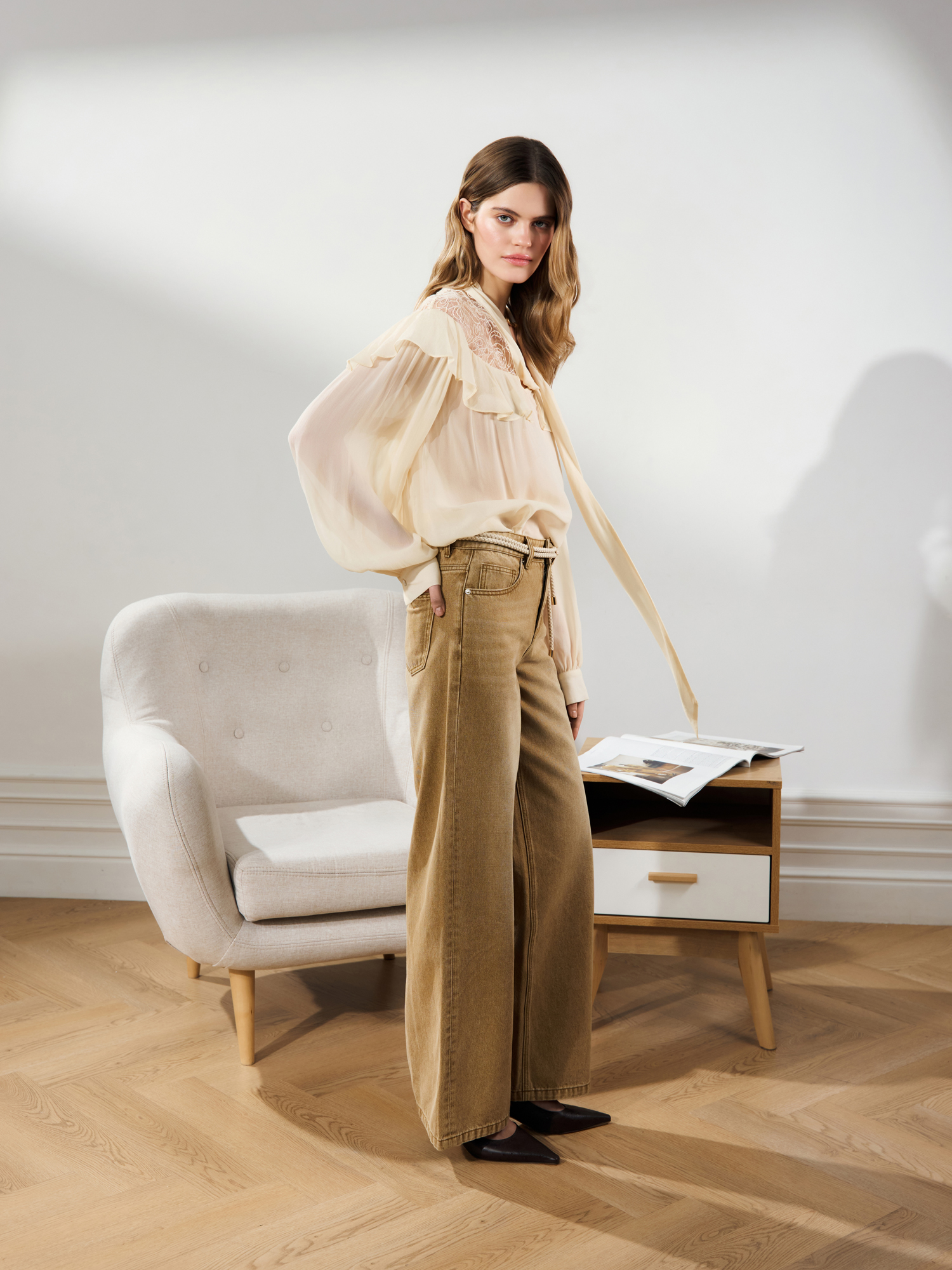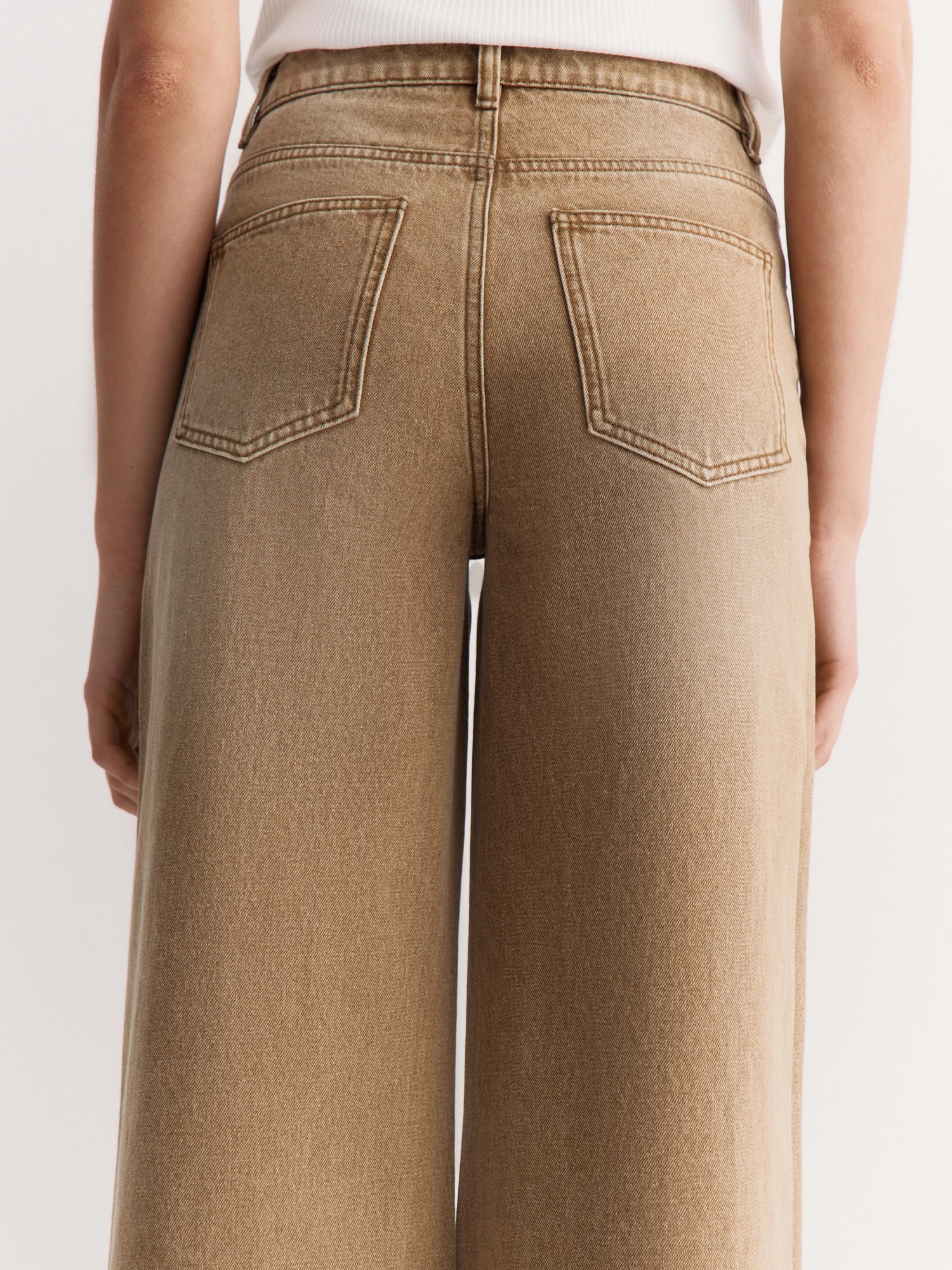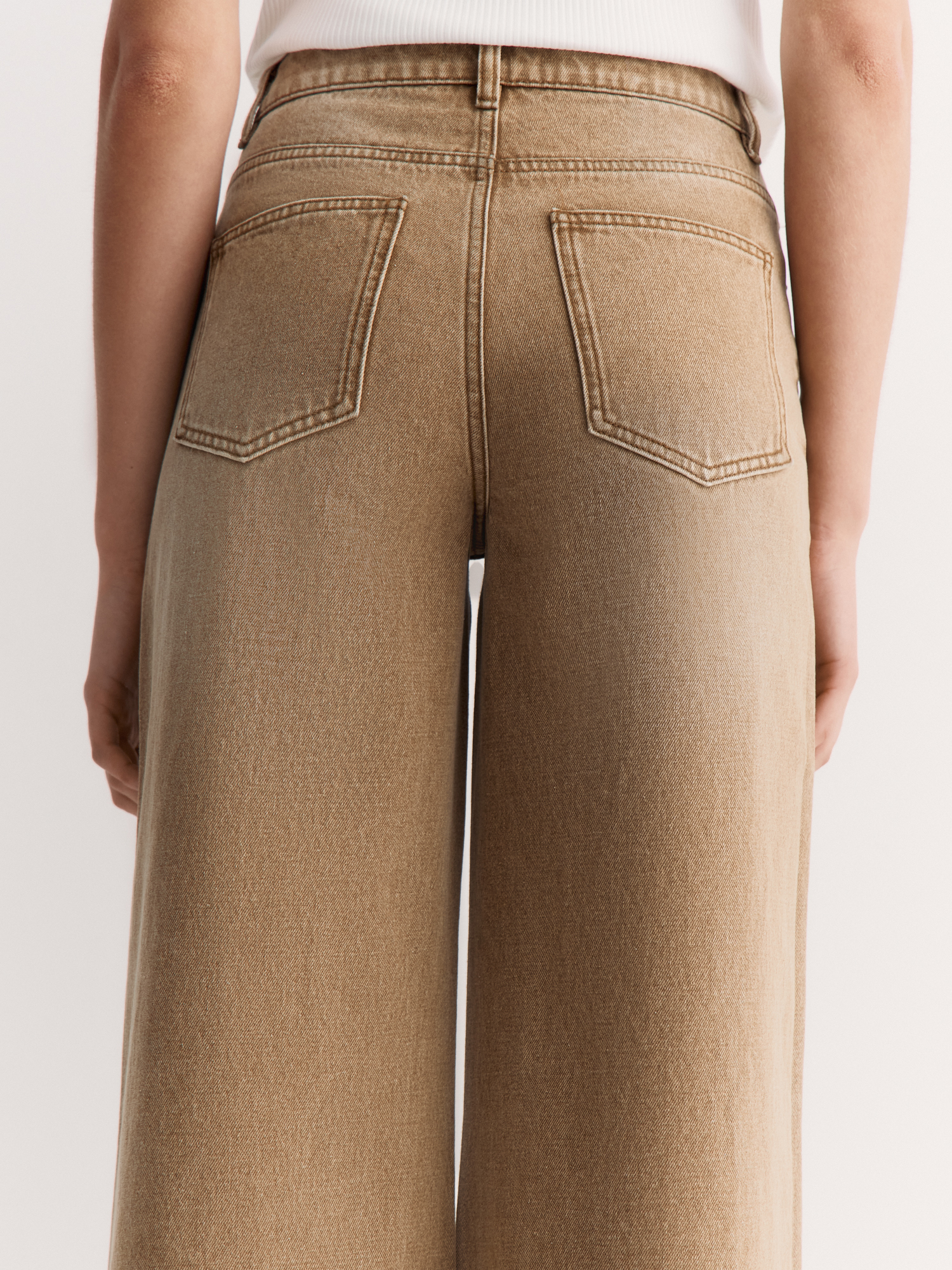 Деним из 100% хлопка в базовом бежевом и лаконичный крой позволяют носить эти джинсы с чем угодно: можно сочетать с рубашкой для нестрогого офиса, с футболкой для встречи с друзьями или с джемпером для работы и отдыха.