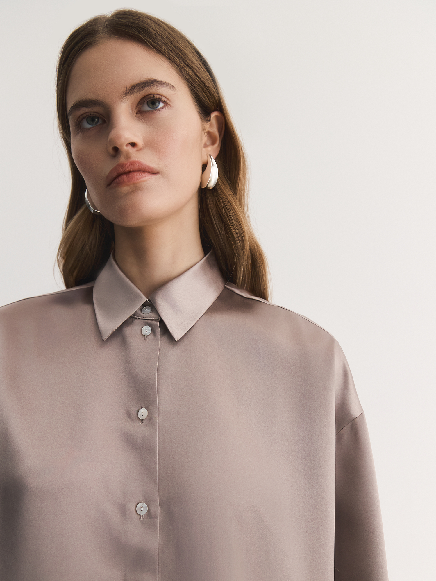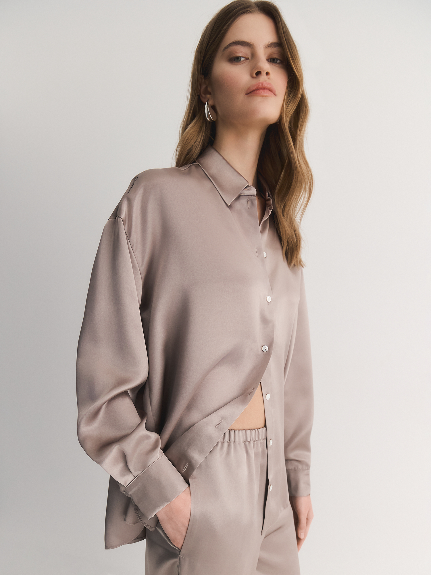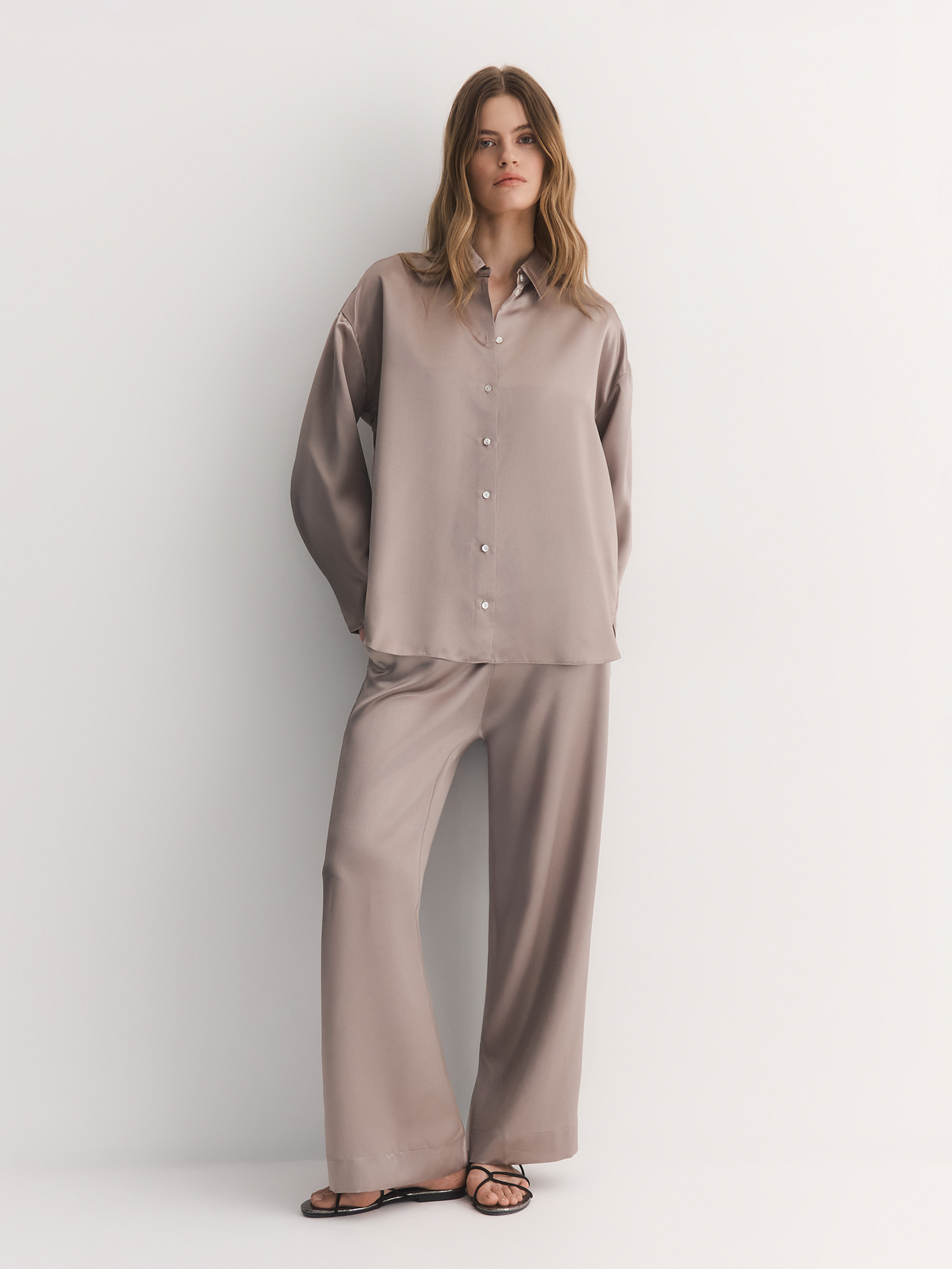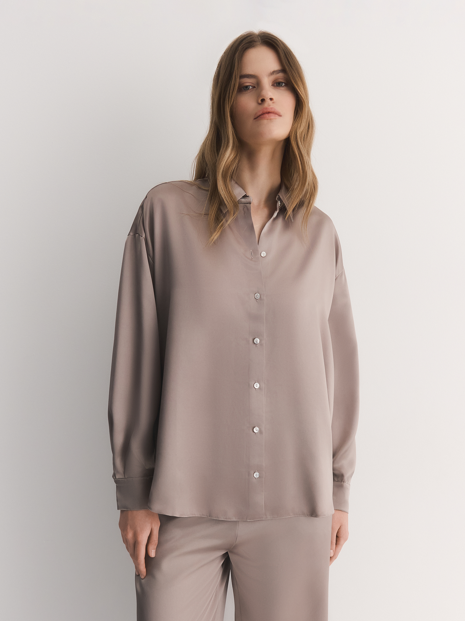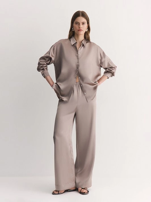 Блуза в пижамном стиле — это идеальное сочетание комфорта и стиля, что делает ее универсальным элементом гардероба для создания расслабленных и модных образов. Ацетатный шелк легкий и приятно ощущается на коже, что делает блузу комфортной в носке. Ткань хорошо дышит, что позволяет коже оставаться свежей даже в теплую погоду.