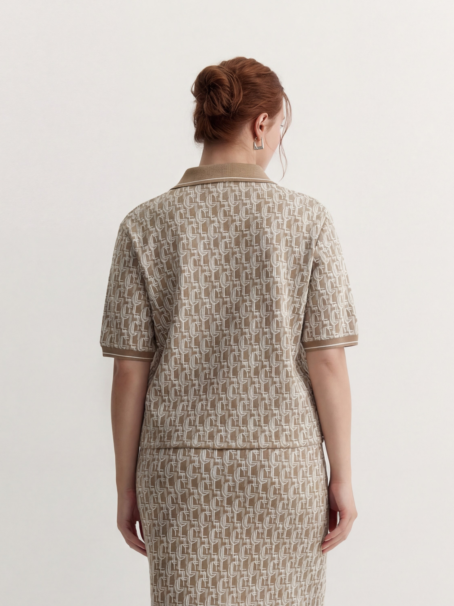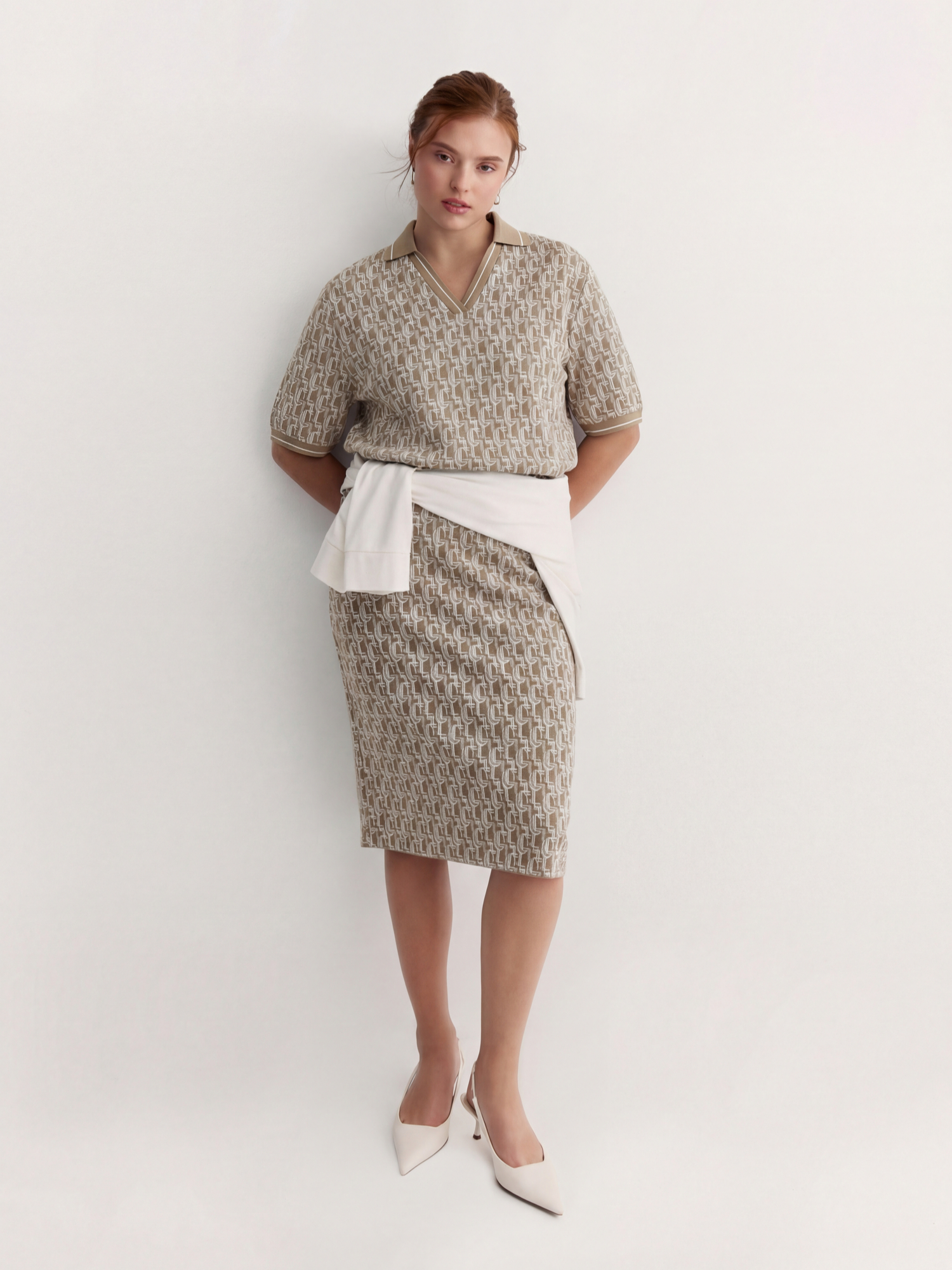 Блуза из рельефного жаккарда – стильная, с характером и фирменным принтом. Выполнена из поливискозного трикотажа с объемным узором, который эффектно подчеркивает логотип бренда.
