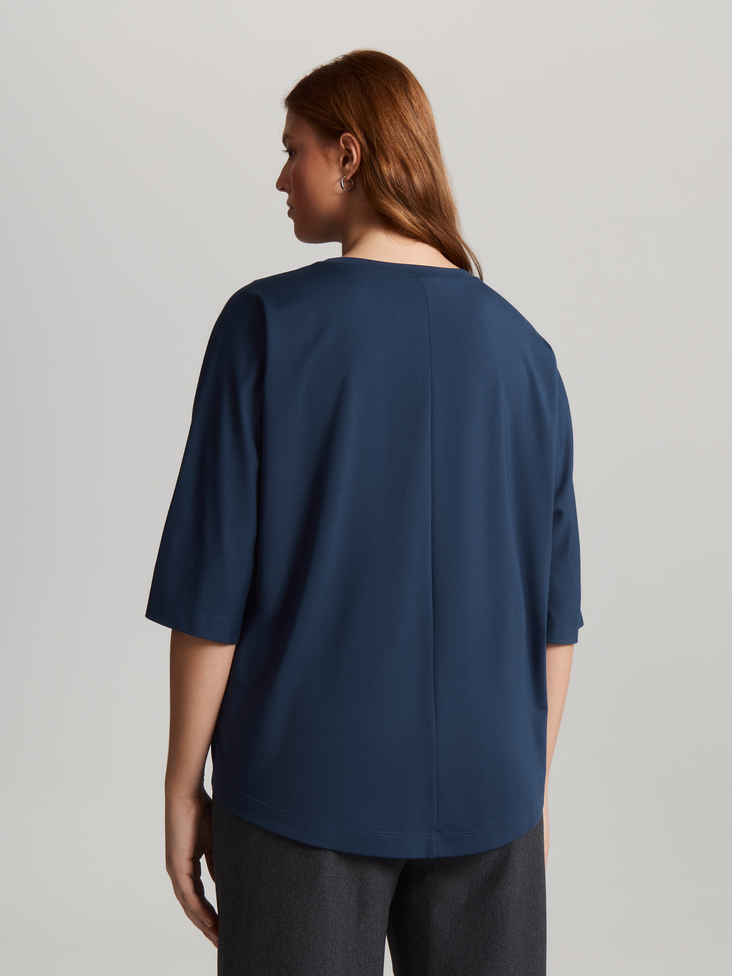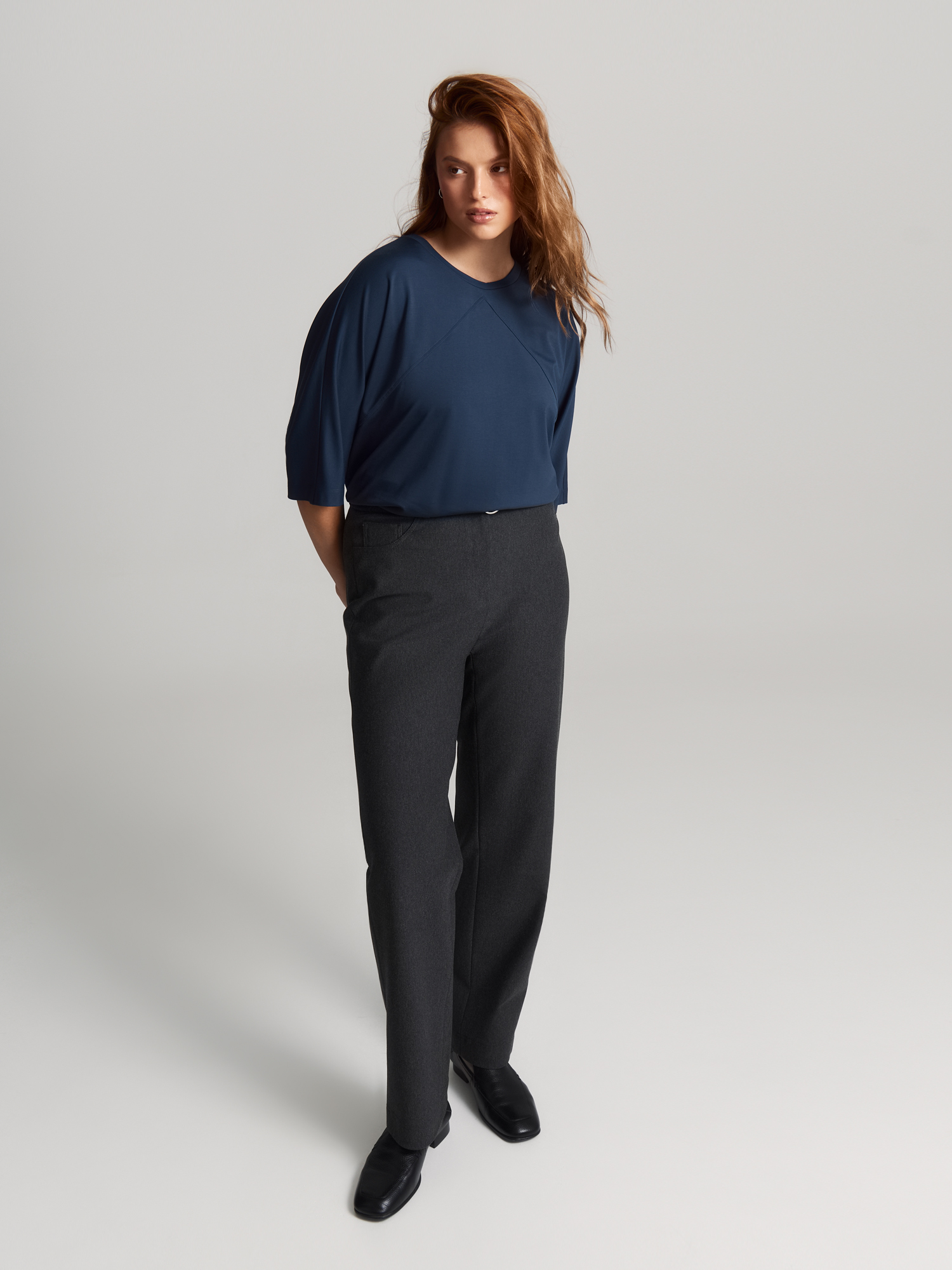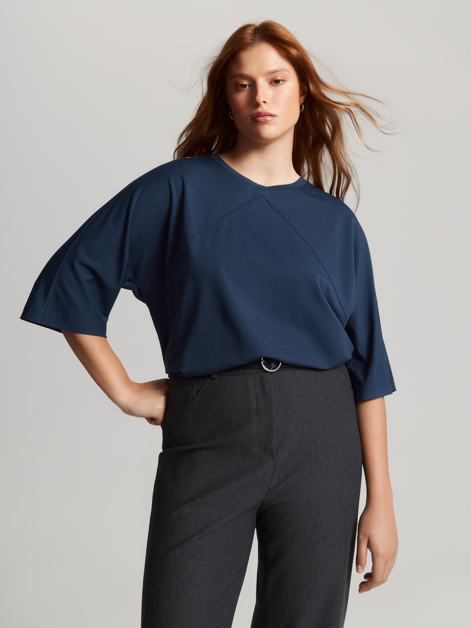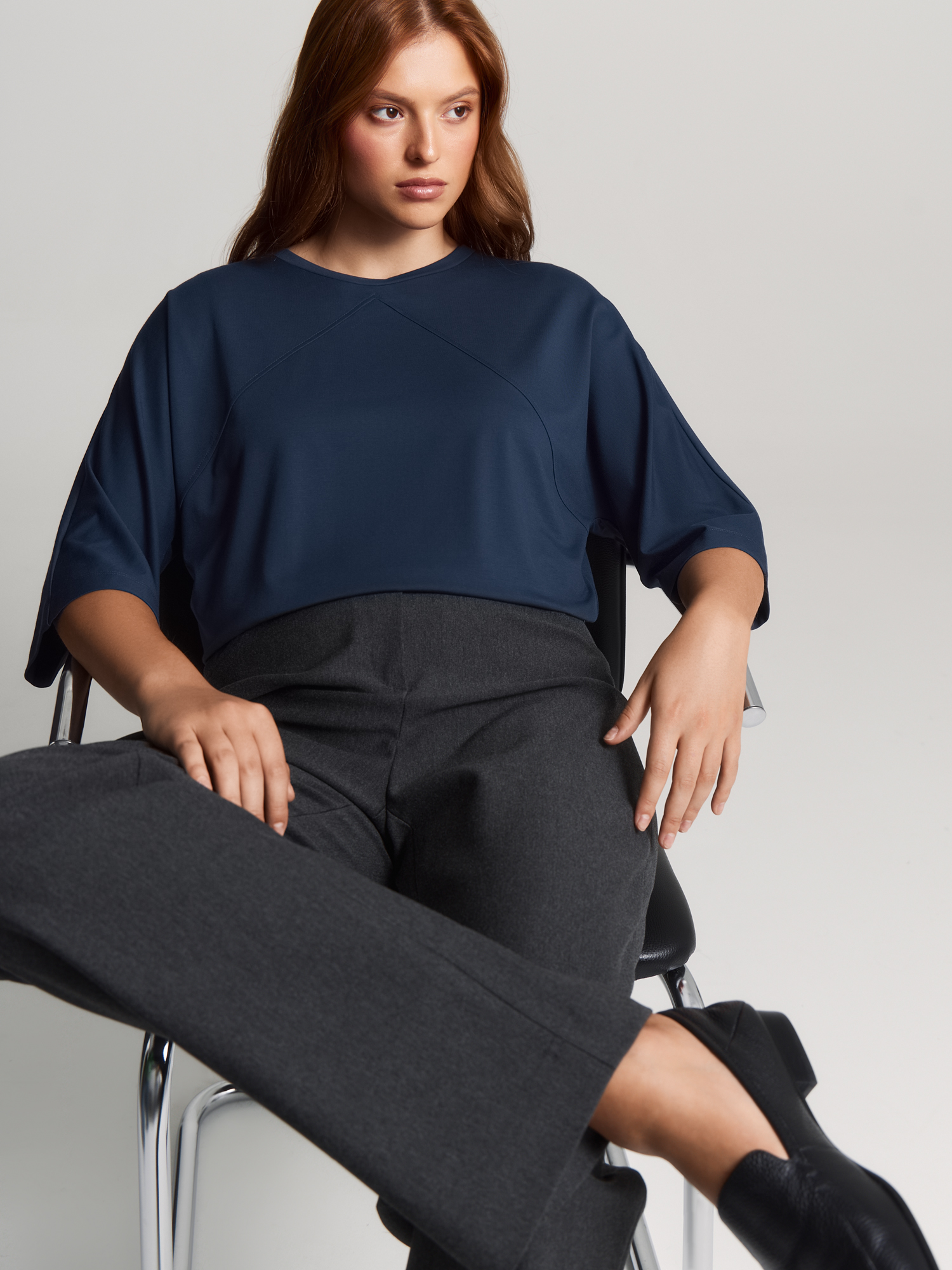 Блуза из вискозного трикотажа с добавлением нейлона – мягкая, эластичная и очень удобная. Материал приятно облегает фигуру, не сковывая движений.