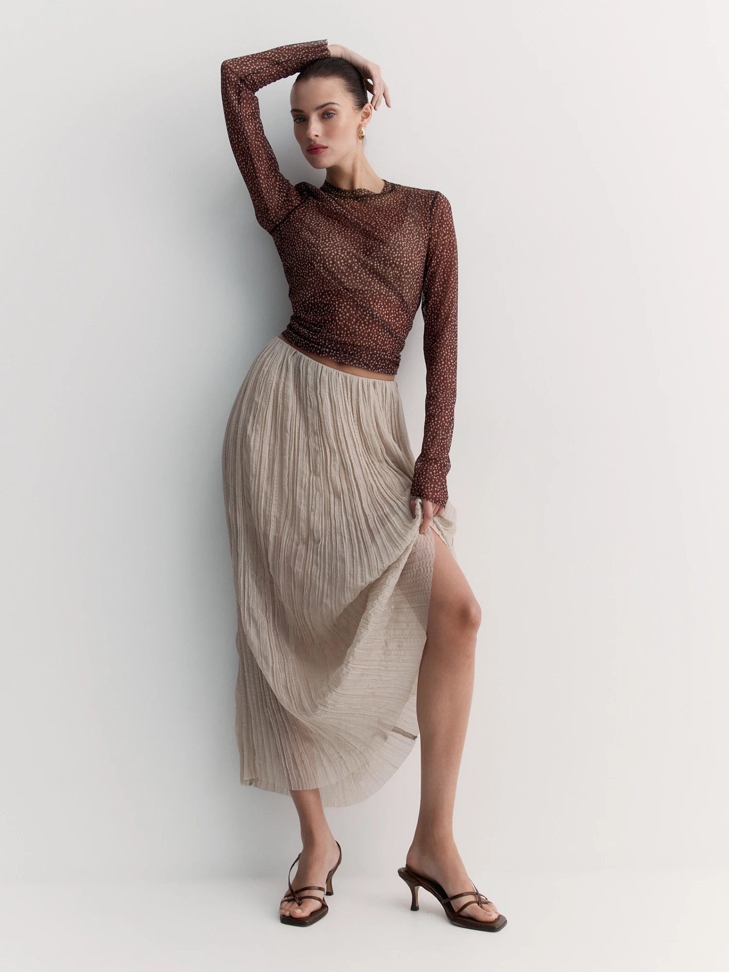 Легкая блуза из сетки – идеальная база для многослойных образов. Сшита из эластичной густой сетки, которая мягко облегает фигуру, сохраняя комфорт.