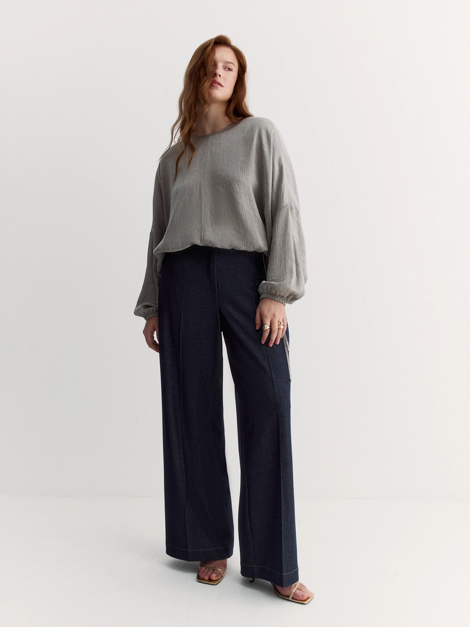 Круглый вырез подчёркивает изящество, а рукава «летучая мышь» добавляют лёгкости и оригинальности. Кулиска по низу позволяет регулировать силуэт, создавая красивый объём. Резинки на рукавах обеспечивают удобную посадку, не сковывая движения.