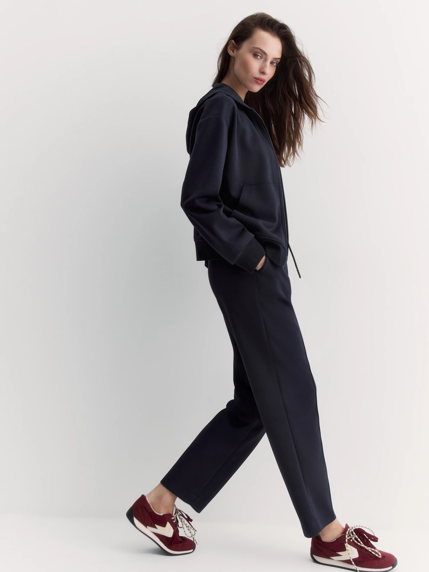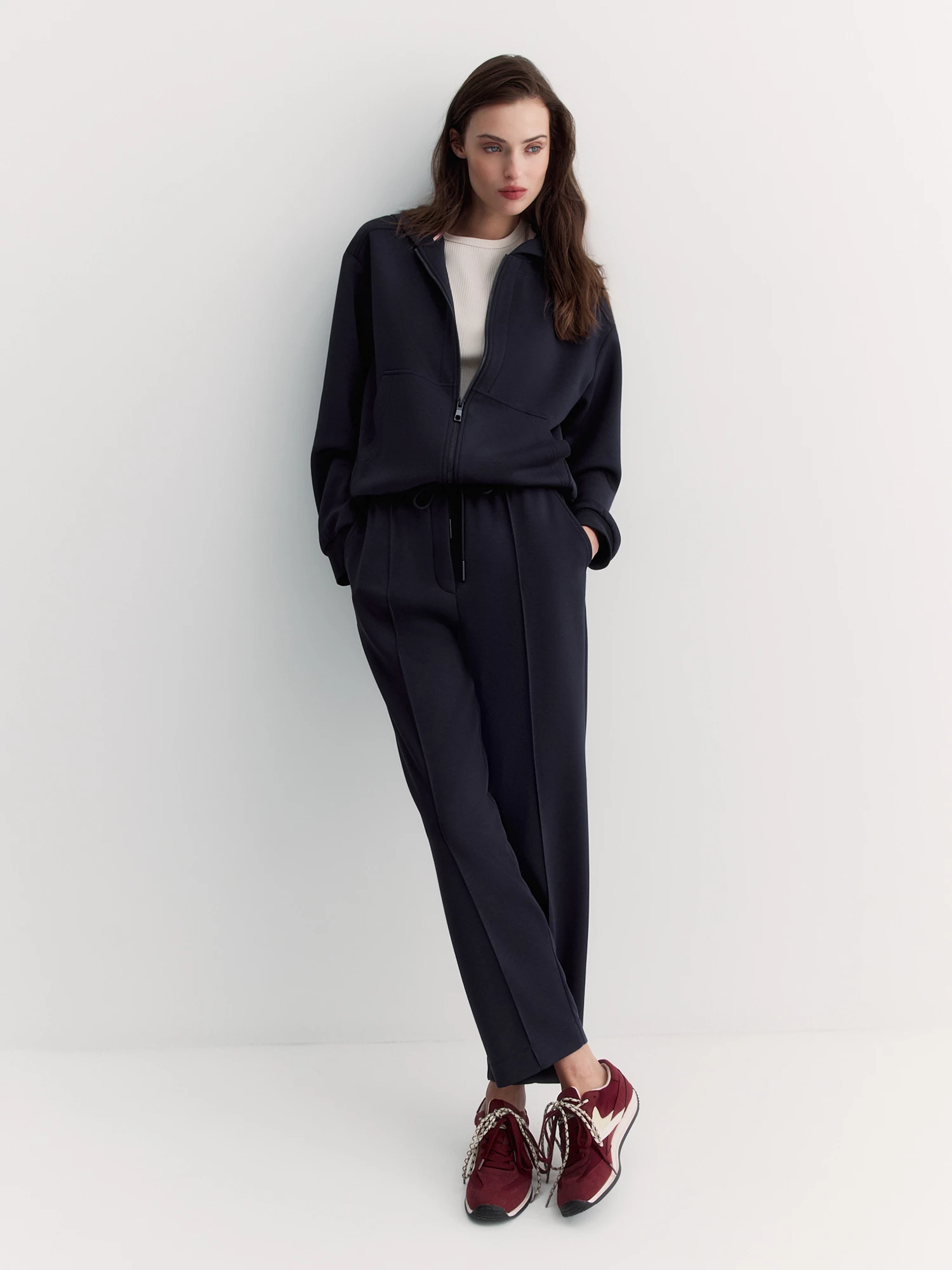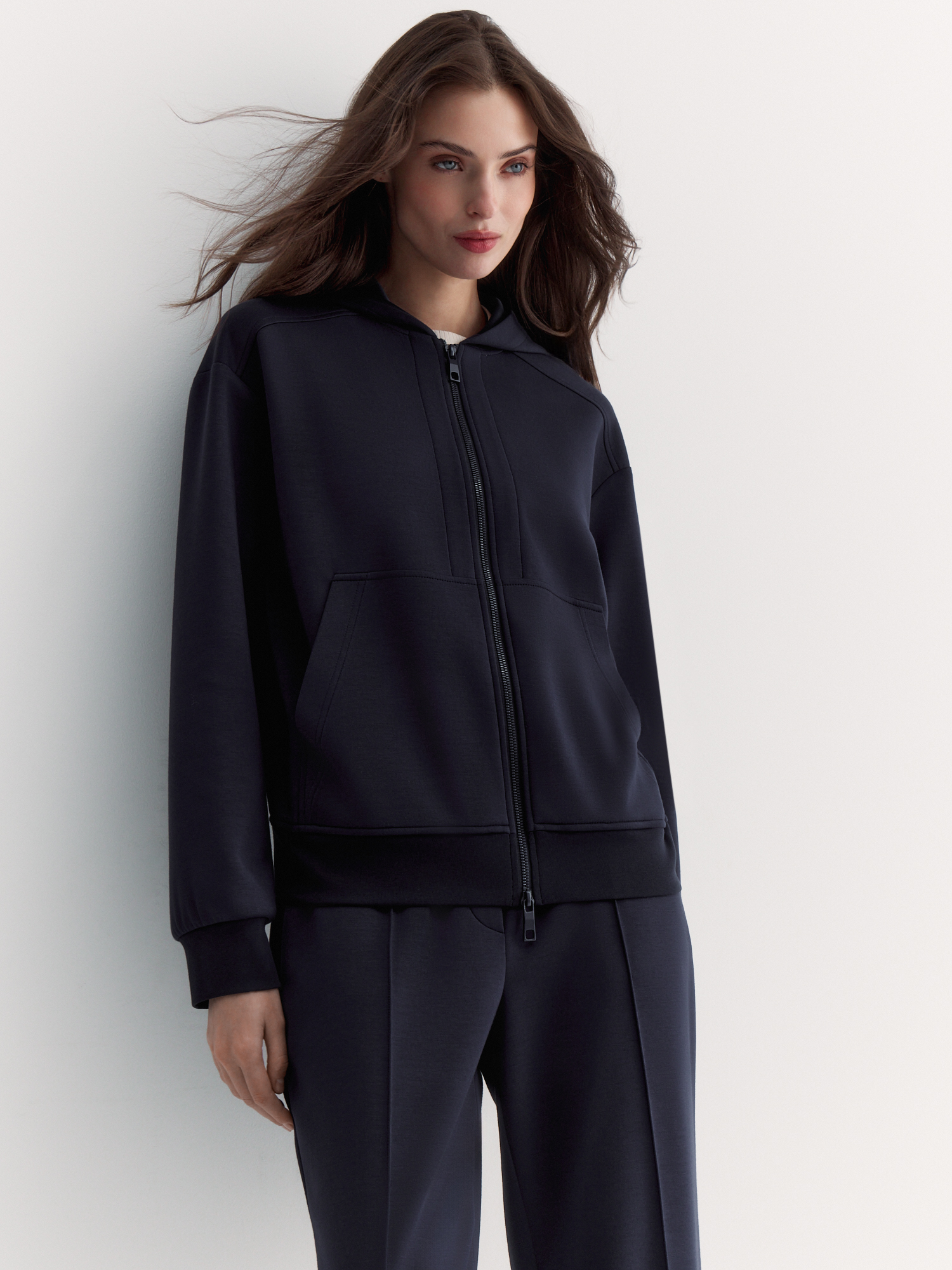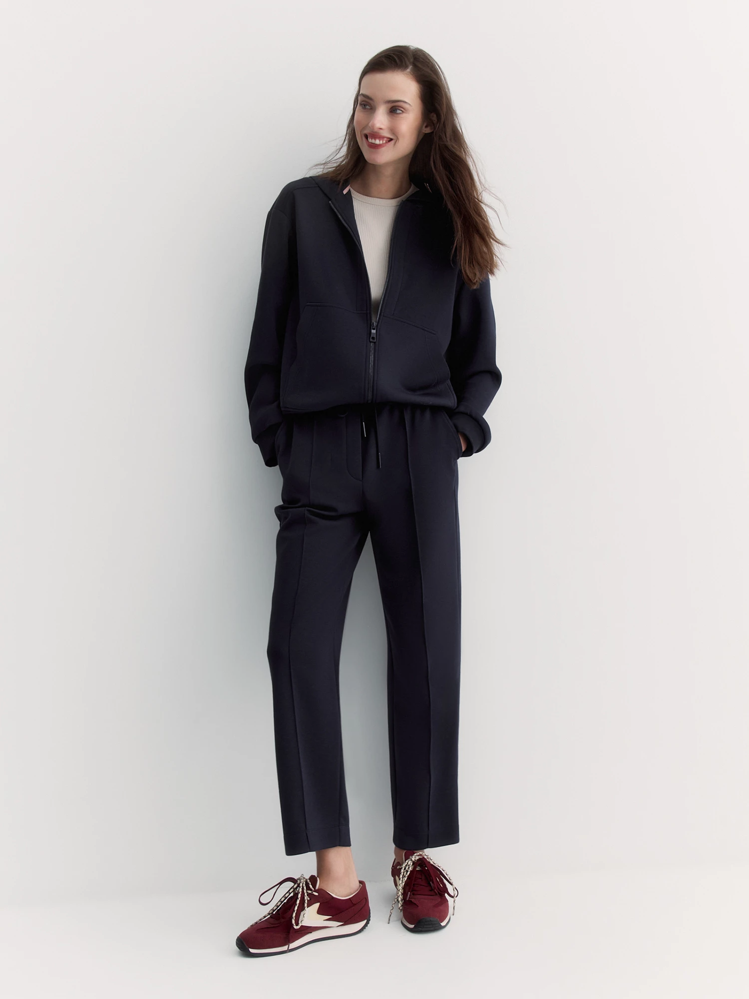 Этот бомбер можно носить с брюками из неопрена TR0697K.