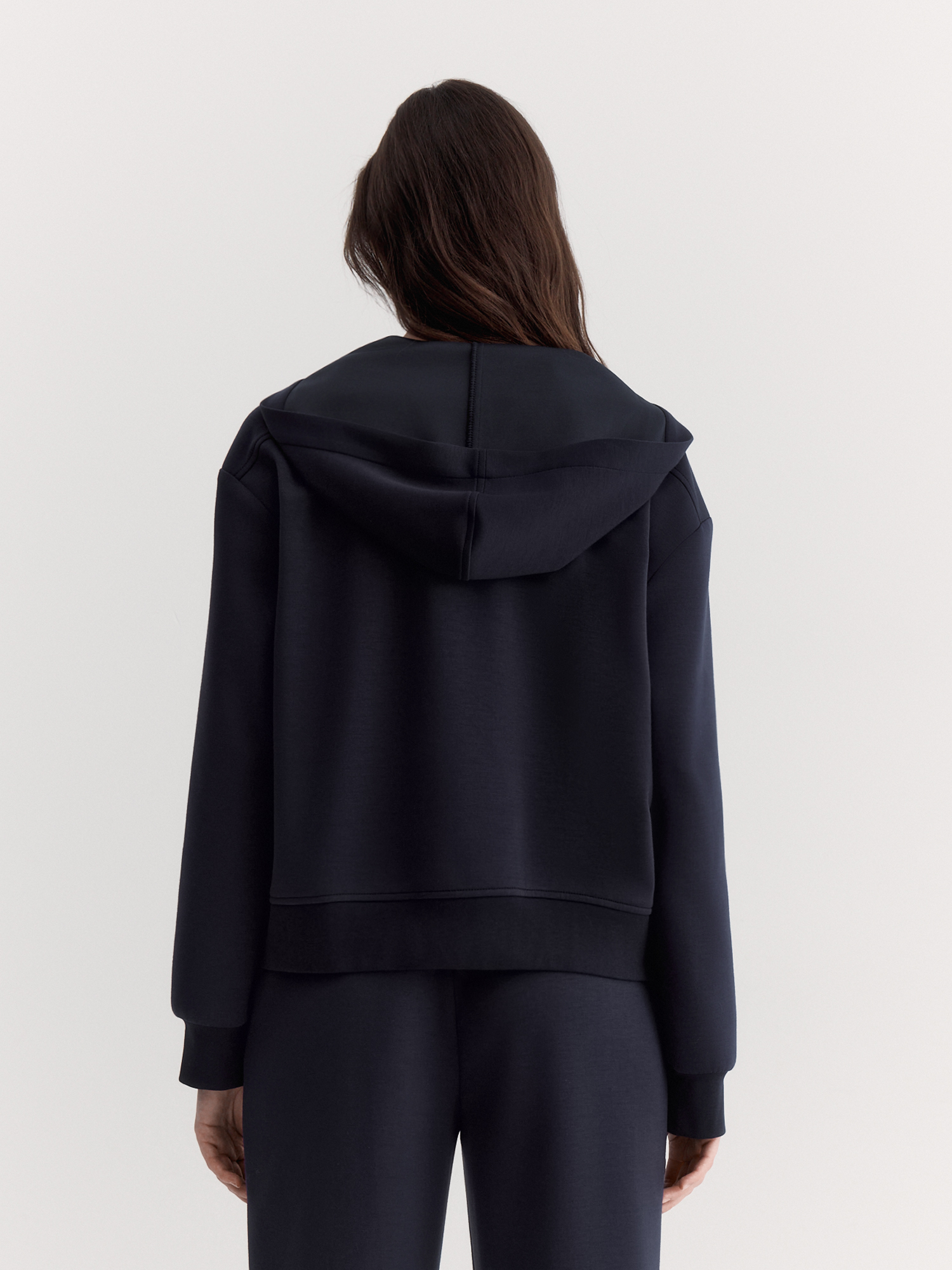 Короткая модель с капюшоном и надежной застежкой-молнией создает стильный образ. Эластичные манжеты и низ изделия добавляют удобства, а продуманная узкая кокетка по плечам обеспечивает идеальную посадку. Вместительные косые карманы делают куртку практичной.