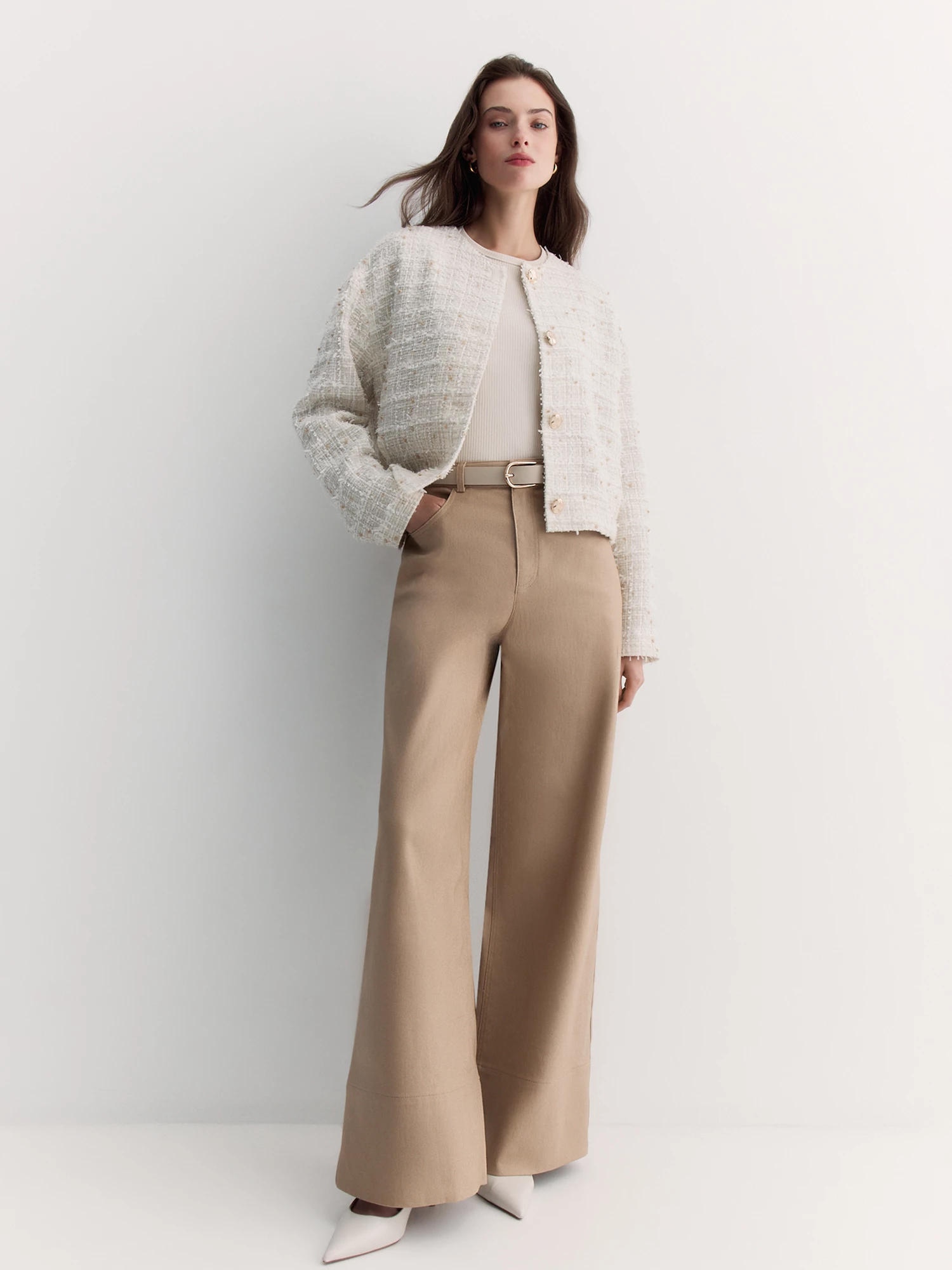 В сочетании с юбкой SK0633 или брюками TR03721 образ с бомбером является ключевым для капсульной коллекции.