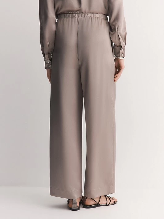 Изготовленные из ацетата, брюки обладают приятным атласным блеском и легкостью, что делает их комфортными в носке в любое время года. Ацетат хорошо дышит и приятно ощущается на коже.