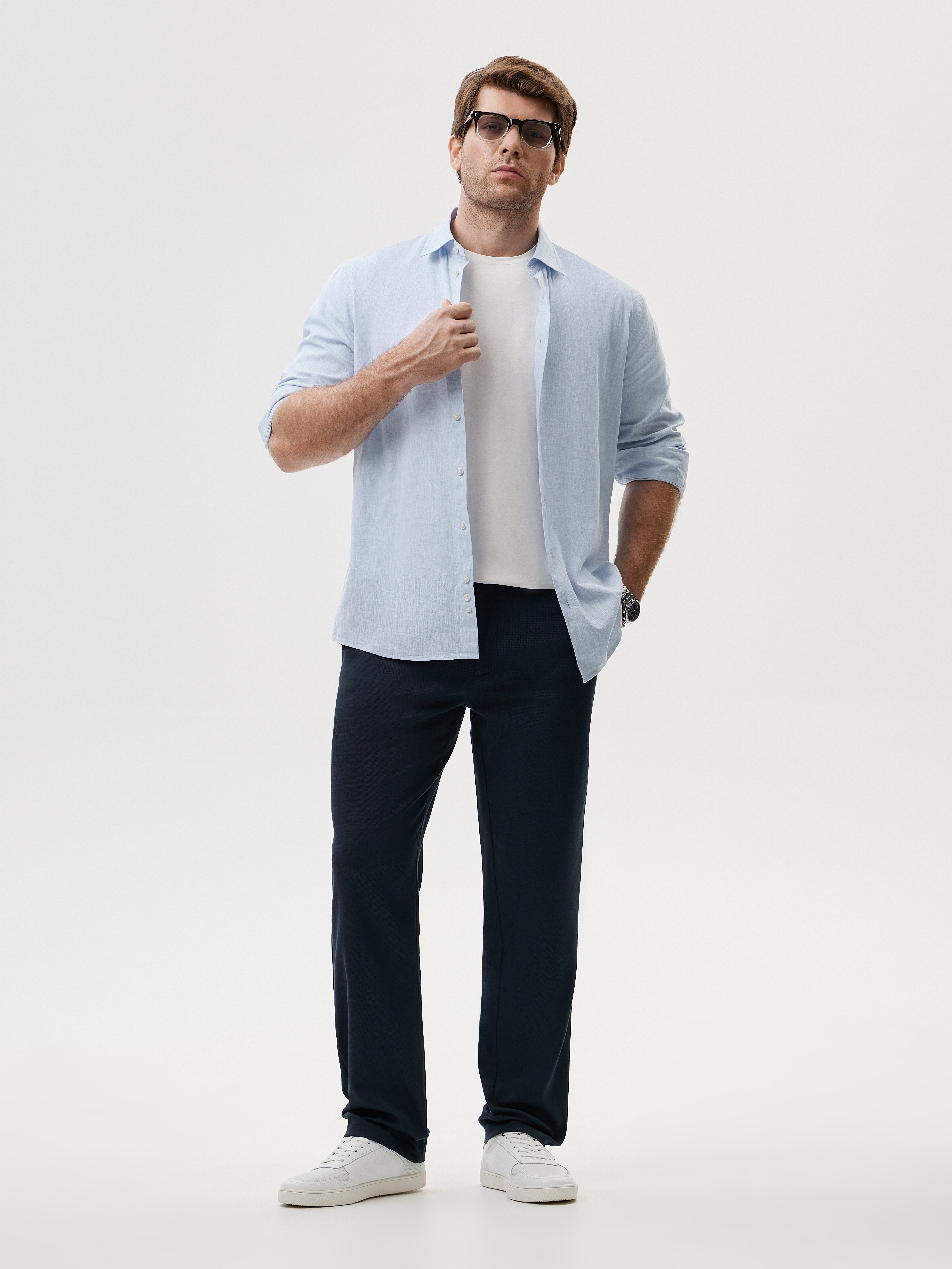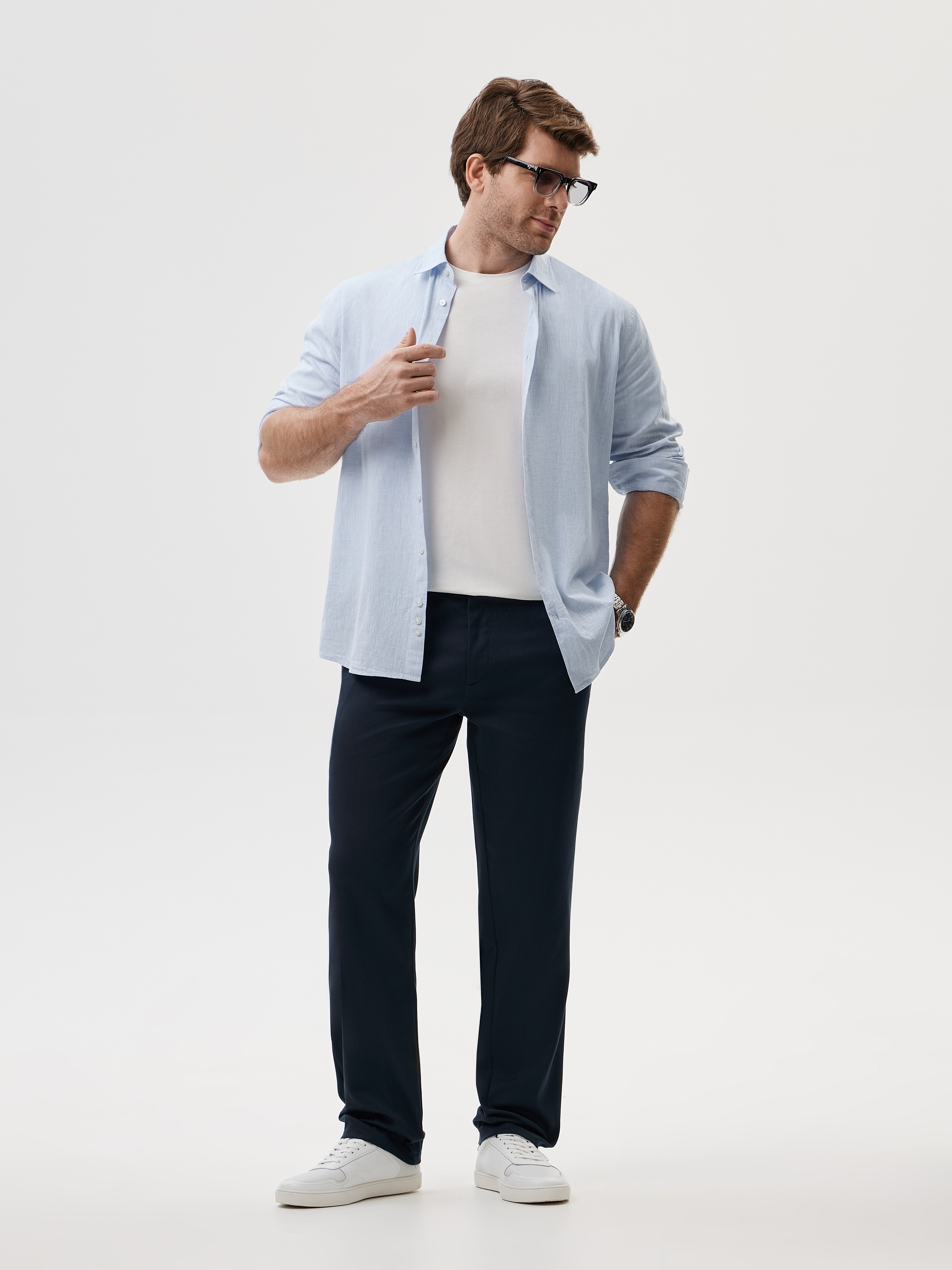 Бренд: 20lineЦвет: Темно-синийСостав: Хлопок - 97%, Эластан - 3%Артикул: ITR0128Размер на модели: 50Коллекция: 20LINE 26.