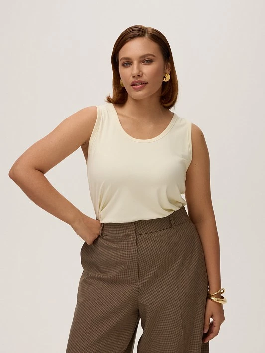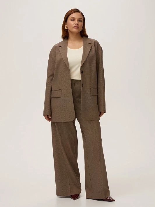 Брюки прямого силуэта сочетают в себе элегантный дизайн и практичность, что делает их идеальными для различных случаев — от деловых встреч до повседневных выходов. Брюки имеют притачной пояс, который обеспечивает комфортную посадку и позволяет регулировать прилегание благодаря шлевкам для ремня. Это позволяет подчеркивать талию и создавать более структурированный силуэт. На передней части расположены косые карманы, которые не только добавляют функциональности, но и придают брюкам стильный вид. Застежка-гульфик на тесьму-молнию и крючок обеспечивает надежную фиксацию и легкость в использовании. На задних половинках брюки оснащены вытачками, которые обеспечивают правильное прилегание и подчеркивают линии бедер, создавая эффектный силуэт. В поясе предусмотрена резинка, что добавляет дополнительный комфорт и свободу движений, позволяя брюкам идеально сидеть на фигуре. Модель выполнена из качественной турецкой костюмной ткани, в состав которой входят вискоза, поливолокна и эластан. Вискоза придает ткани мягкость и дышащие свойства, что делает брюки комфортными в носке на протяжении всего дня. Поливолокна обеспечивают прочность и долговечность, а эластан добавляет эластичности, позволяя брюкам сохранять свою форму даже после многократных стирок. Эти брюки можно легко сочетать с различными верхами — от классических блузок до уютных свитеров, создавая стильные и гармоничные образы. Благодаря своему универсальному дизайну и высококачественным материалам, они могут стать незаменимым элементом гардероба, подчеркивая индивидуальный стиль и обеспечивая комфорт в любой ситуации. Бежевый цвет брюк добавляет универсальности и позволяет легко комбинировать их с другими элементами гардероба.