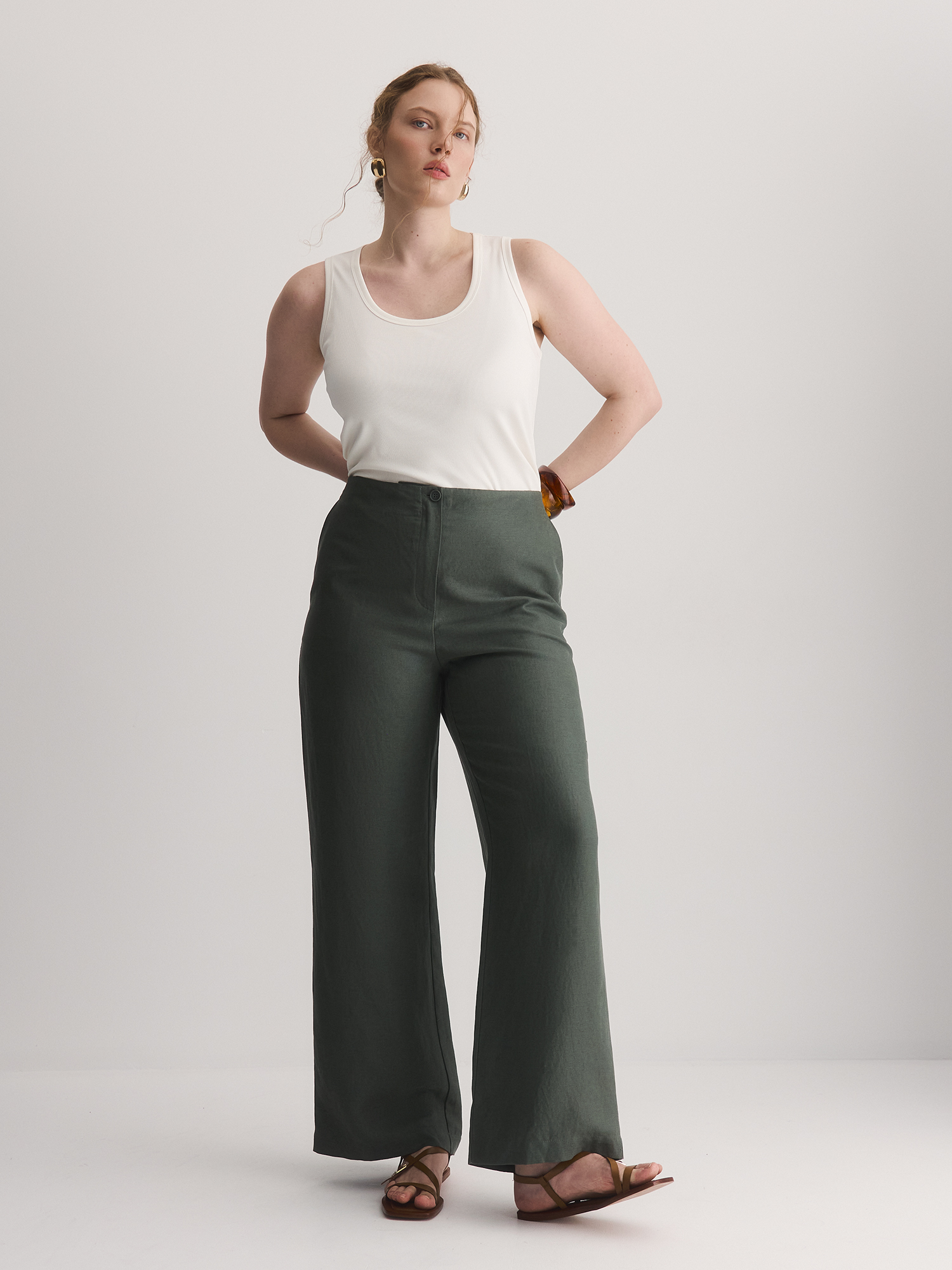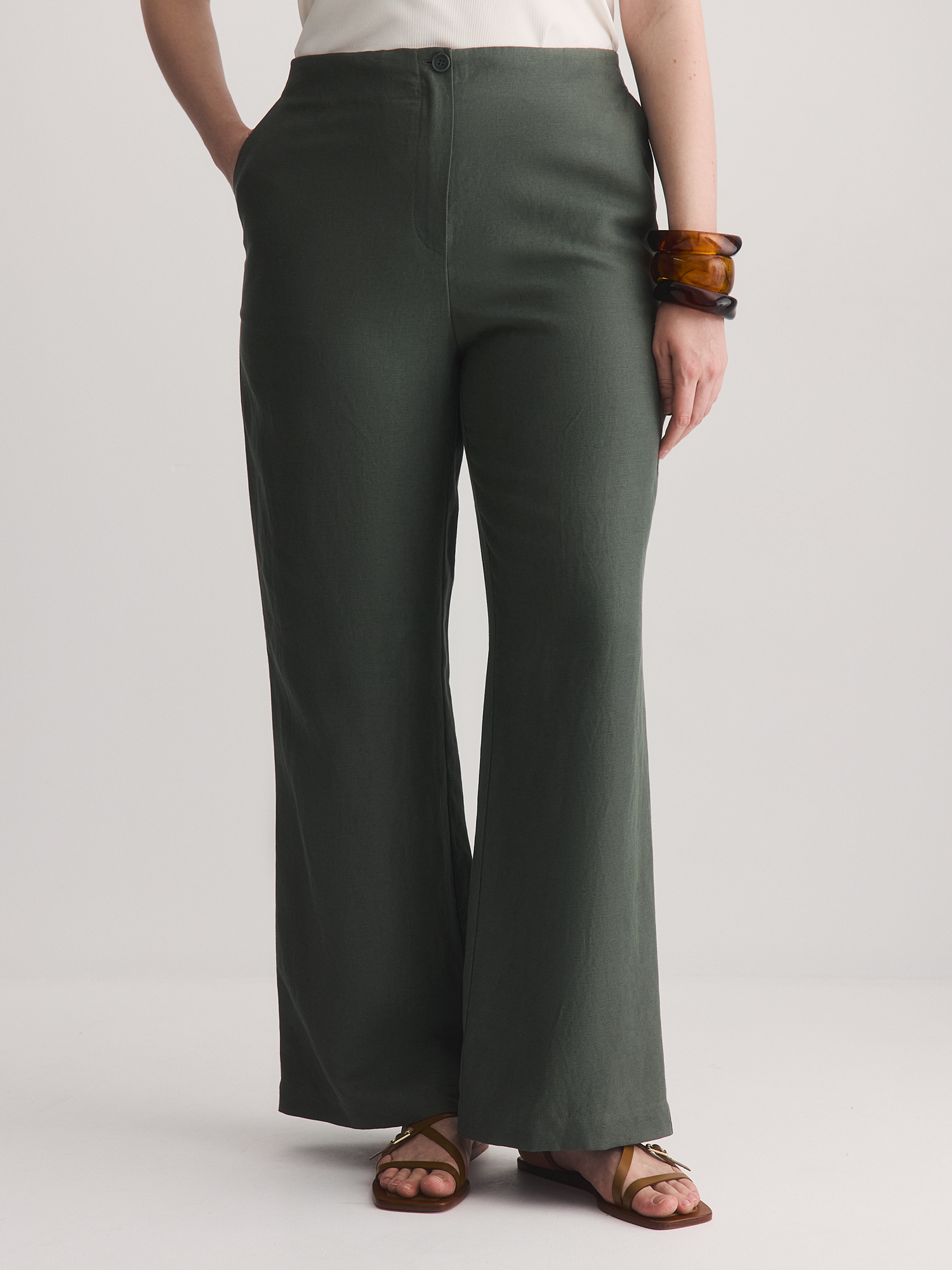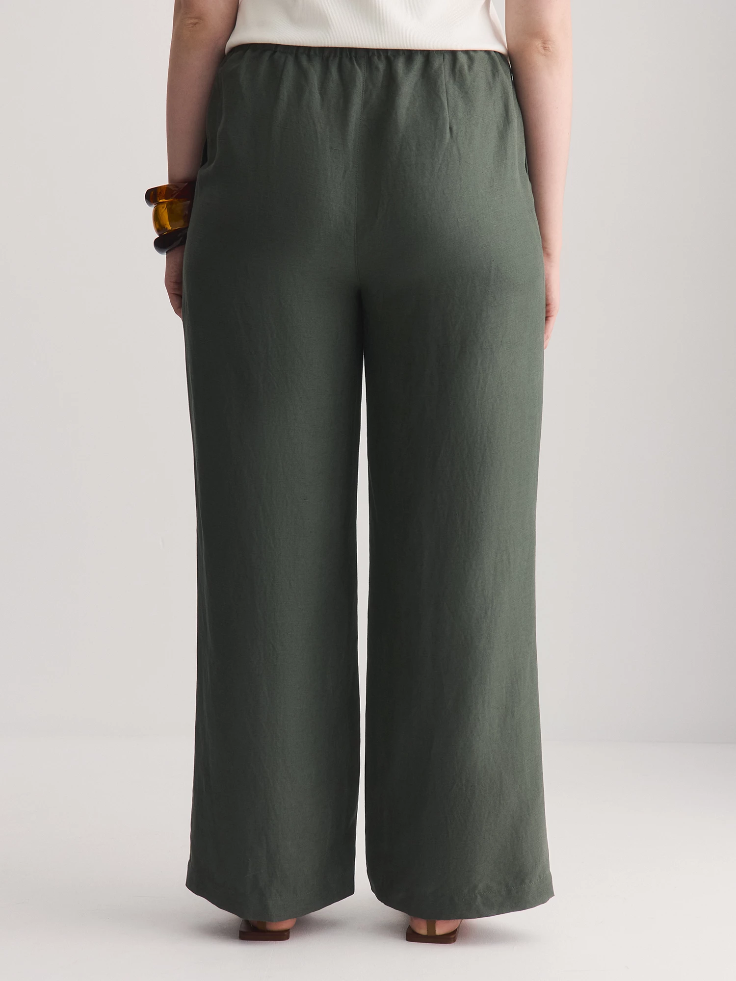 Прямые свободные брюки – идеальный баланс комфорта и стиля. Сшитые из смеси льна и лиоцелла, они мягкие, дышащие и приятные к телу, поддерживают комфортную температуру.