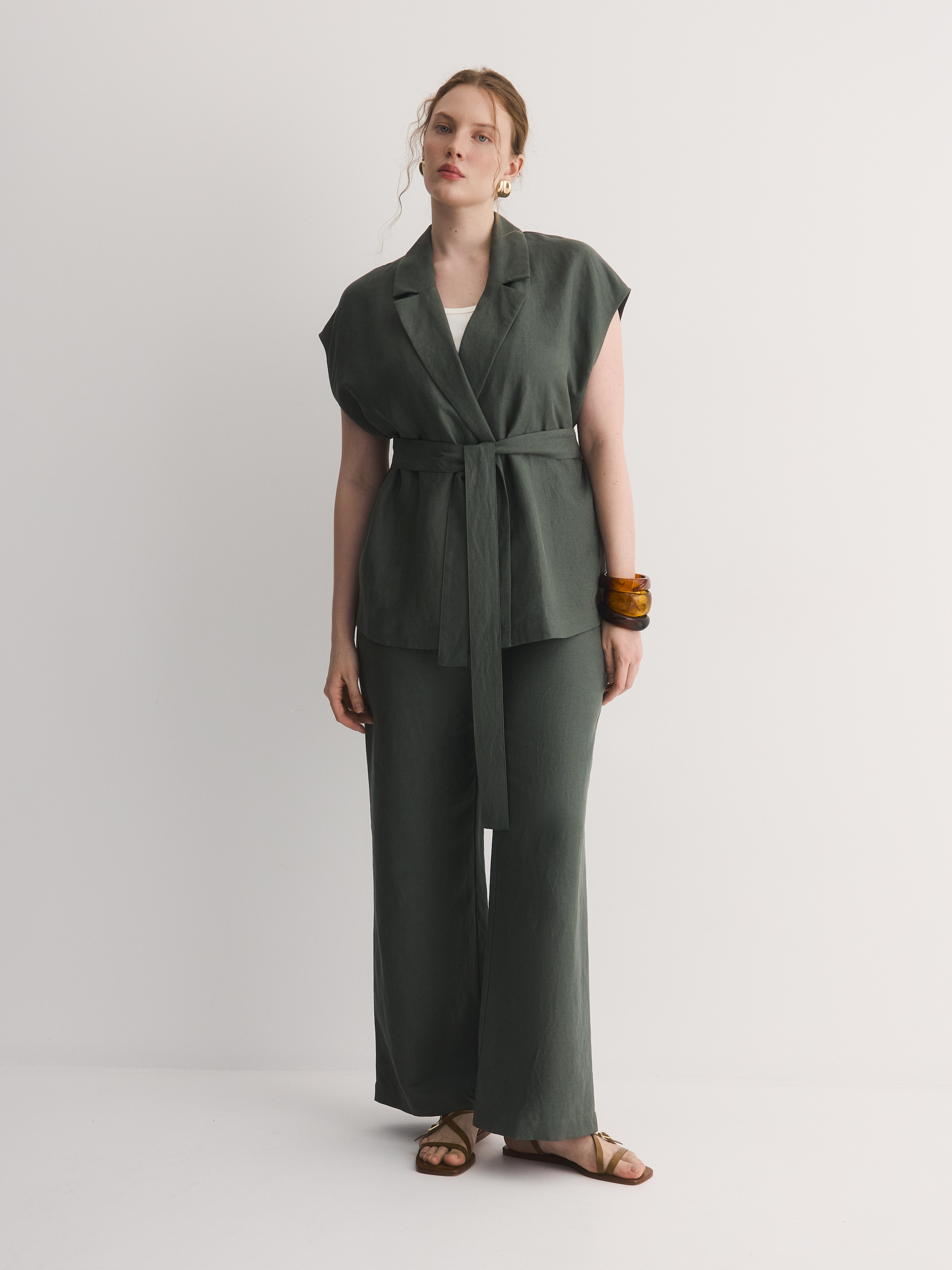 Бренд: LalisЦвет: ЗеленыйСостав: Лиоцелл - 66%, Лен - 34%Артикул: TR0791PРазмер на модели: 50Коллекция: РИМСКИЕ КАНИКУЛЫ