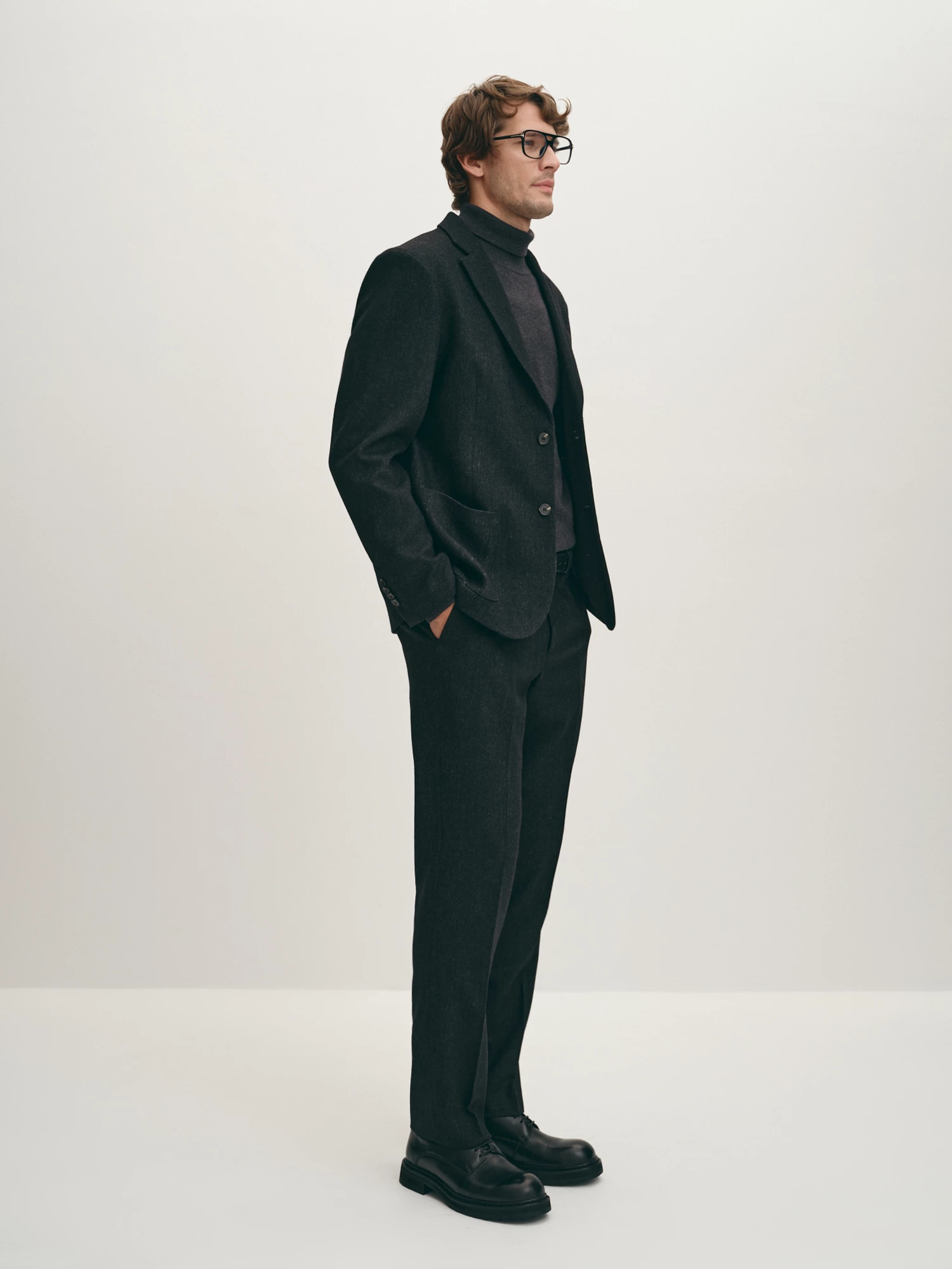 Комфортные брюки - идеальный выбор для офиса. Чтобы создать завершенный и стильный образ – дополните однобортным пиджаком из той же ткани. Материал с выраженной текстурой выполнен из натуральной овечьей шерсти с добавлением синтетических волокон для прочности материала. Их полуприлегающий крой с заутюженными стрелками подчеркнет вашу фигуру и удлинит силуэт, а пояс с петлями под ремень и боковые карманы добавят комфорта ежедневной носке.