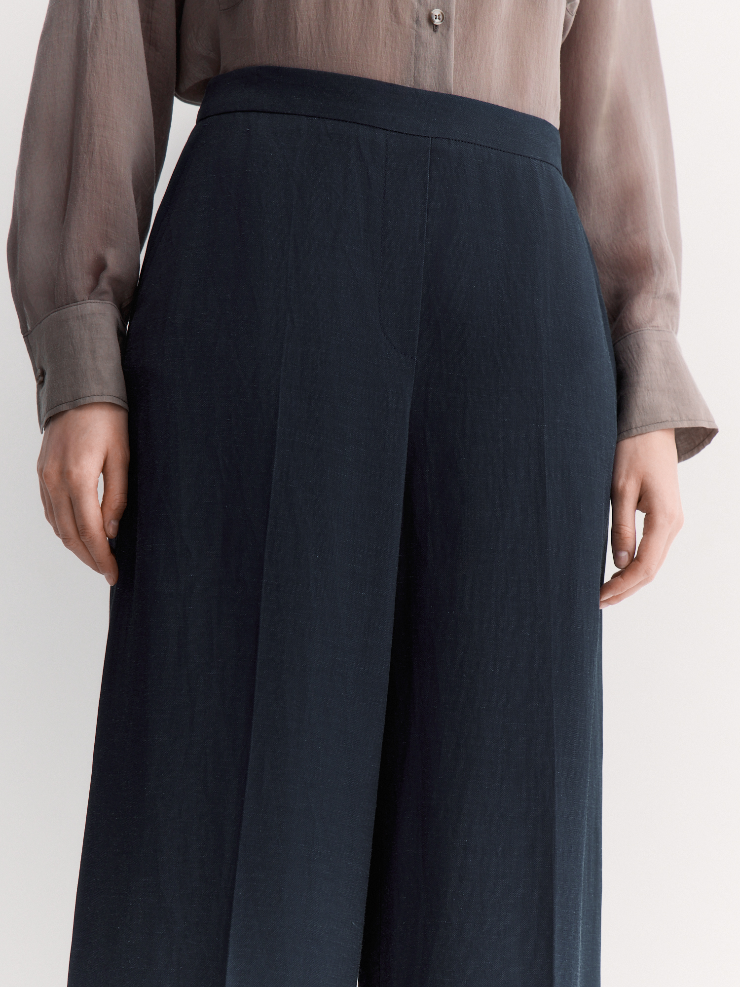 Легкие брюки прямого кроя – идеальный вариант для повседневной носки. Сшиты из текстурной ткани из вискозы и льна, которая приятна к телу, держит форму и обладает прекрасной терморегуляцией.