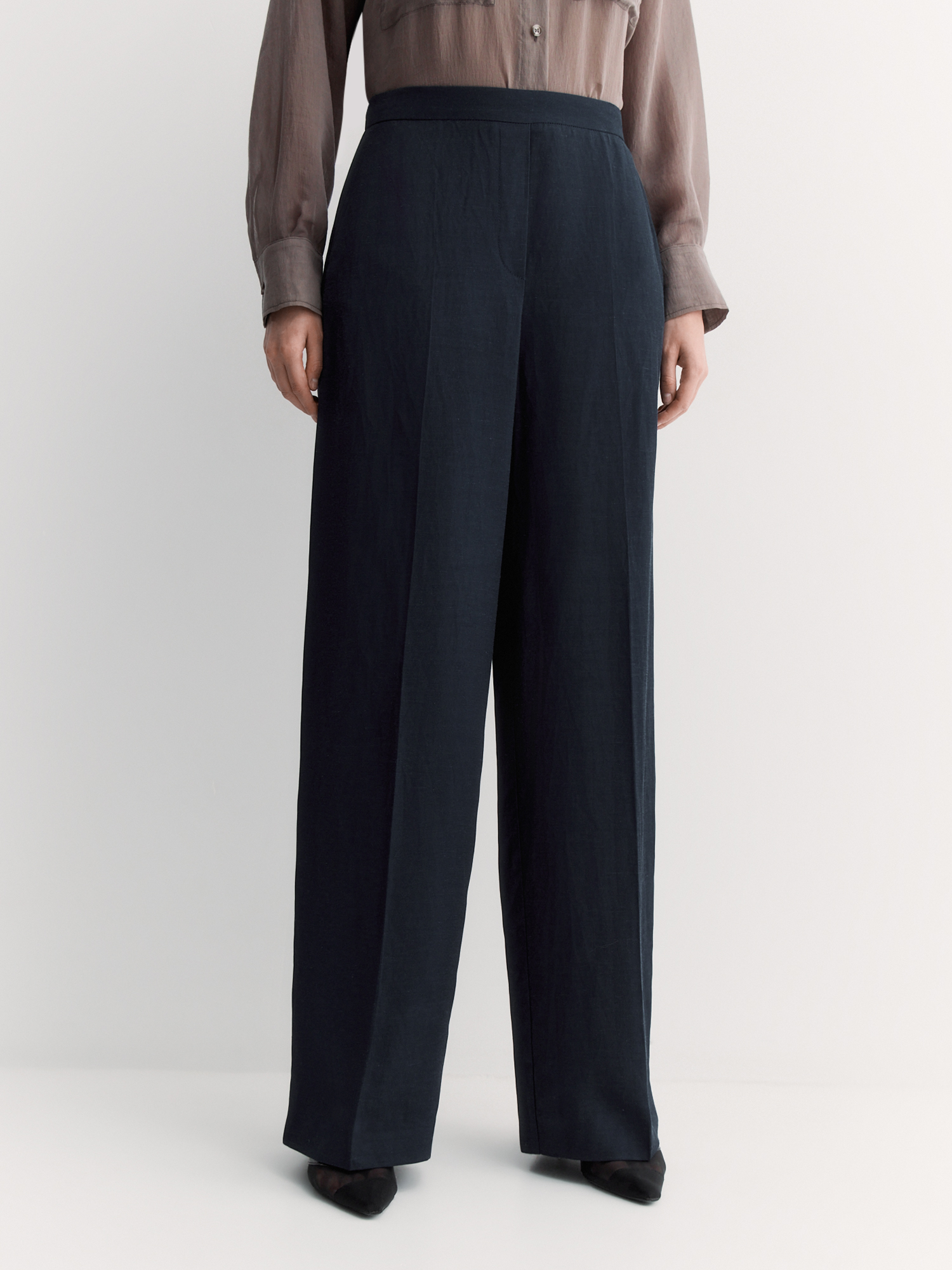 Глубокий тёмно-синий цвет делает брюки универсальной базой для разных сочетаний.
