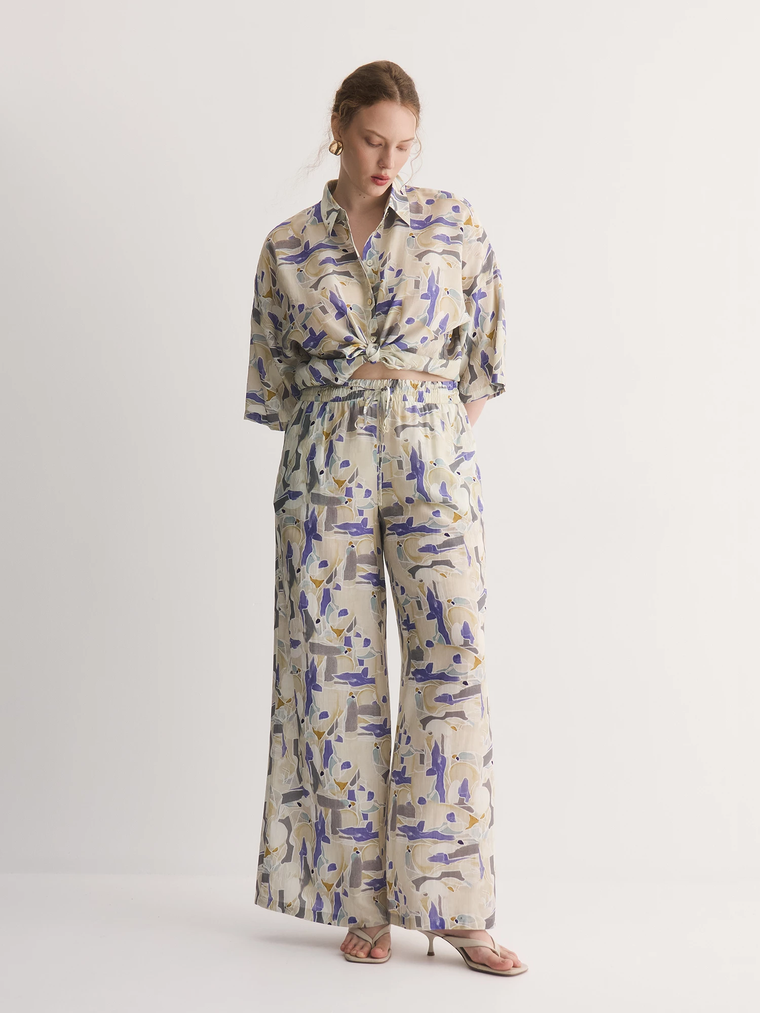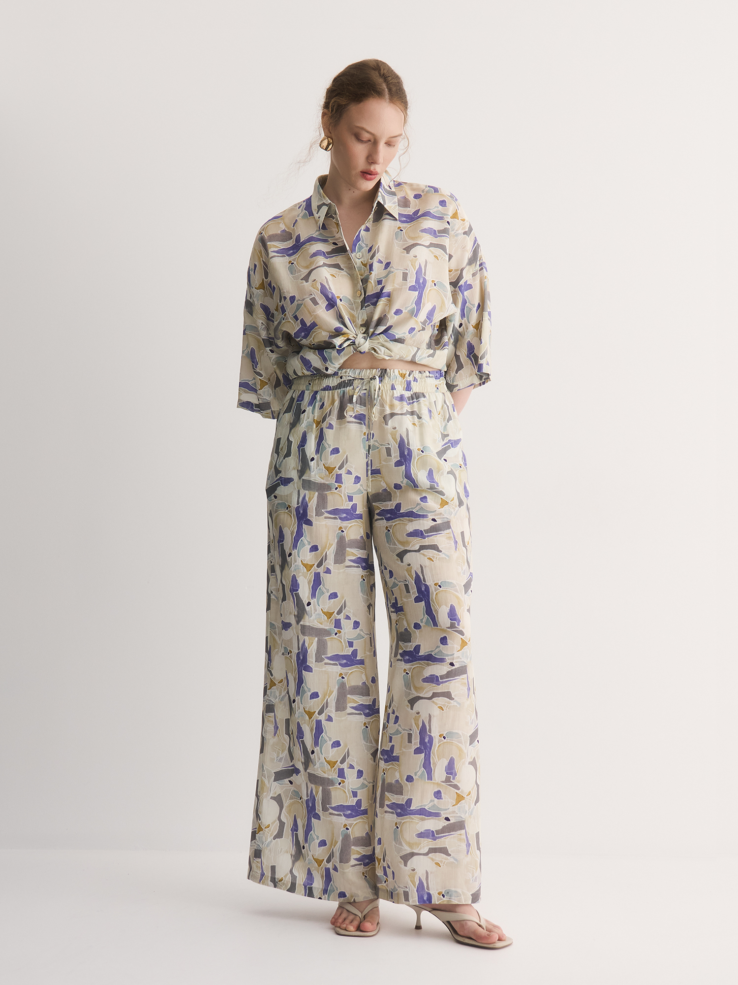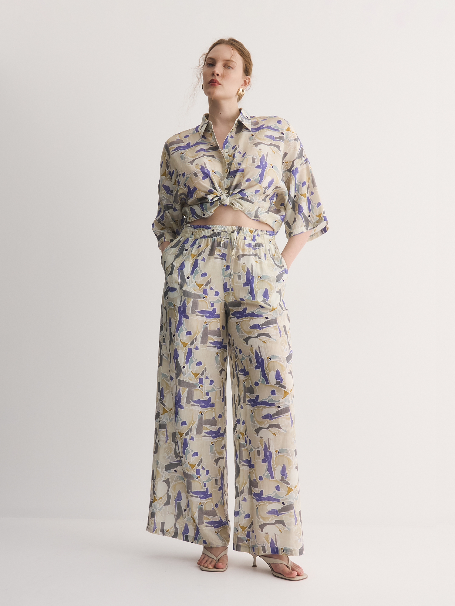 Бежево-голубой принт освежает повседневный образ, привлекает к себе внимание и добавляет образу изюминку.