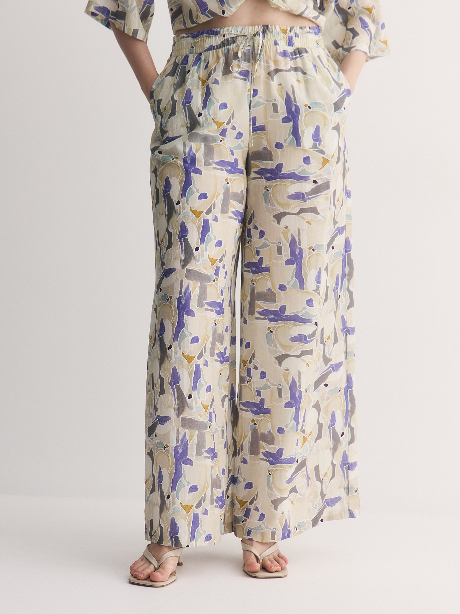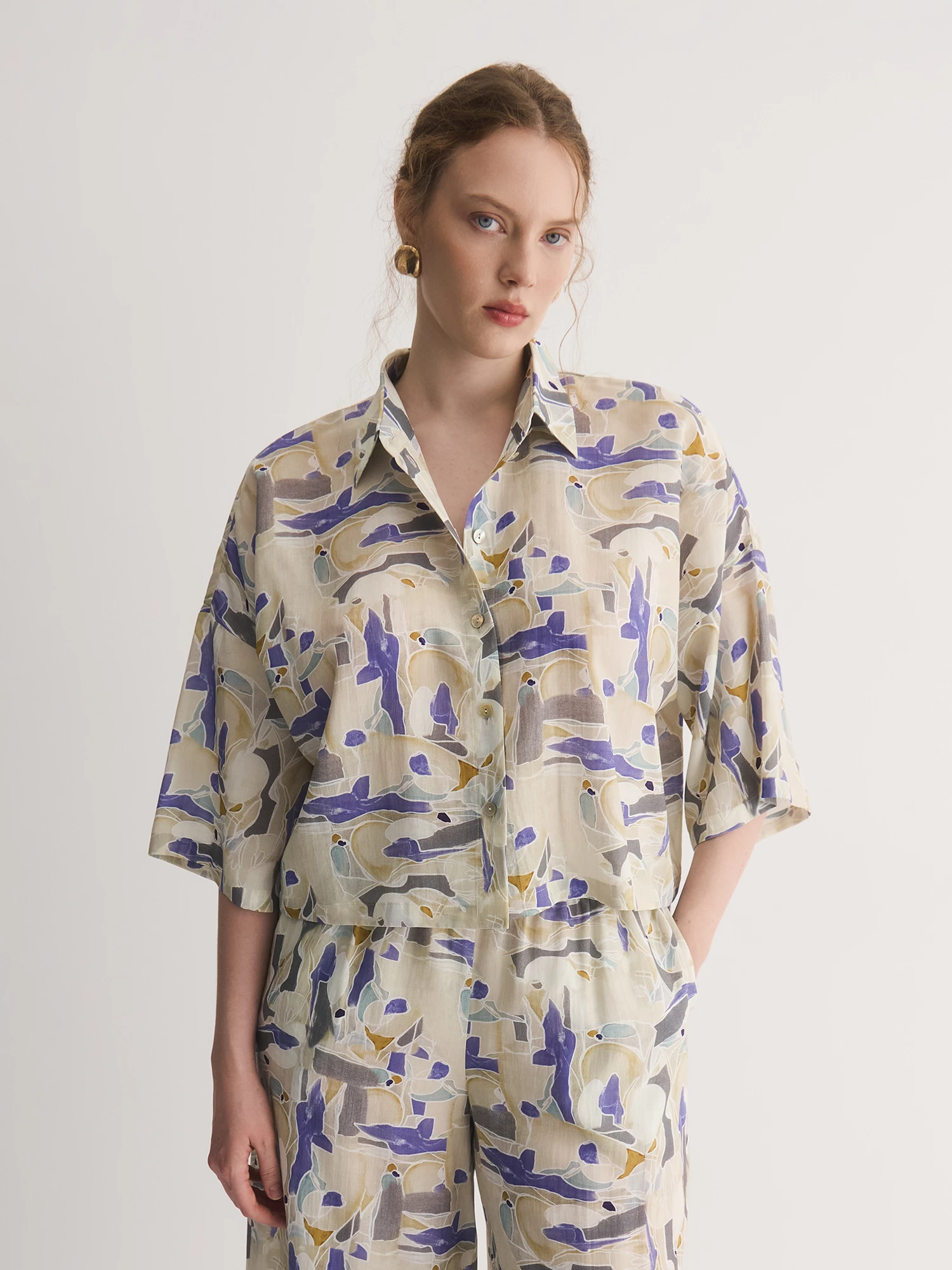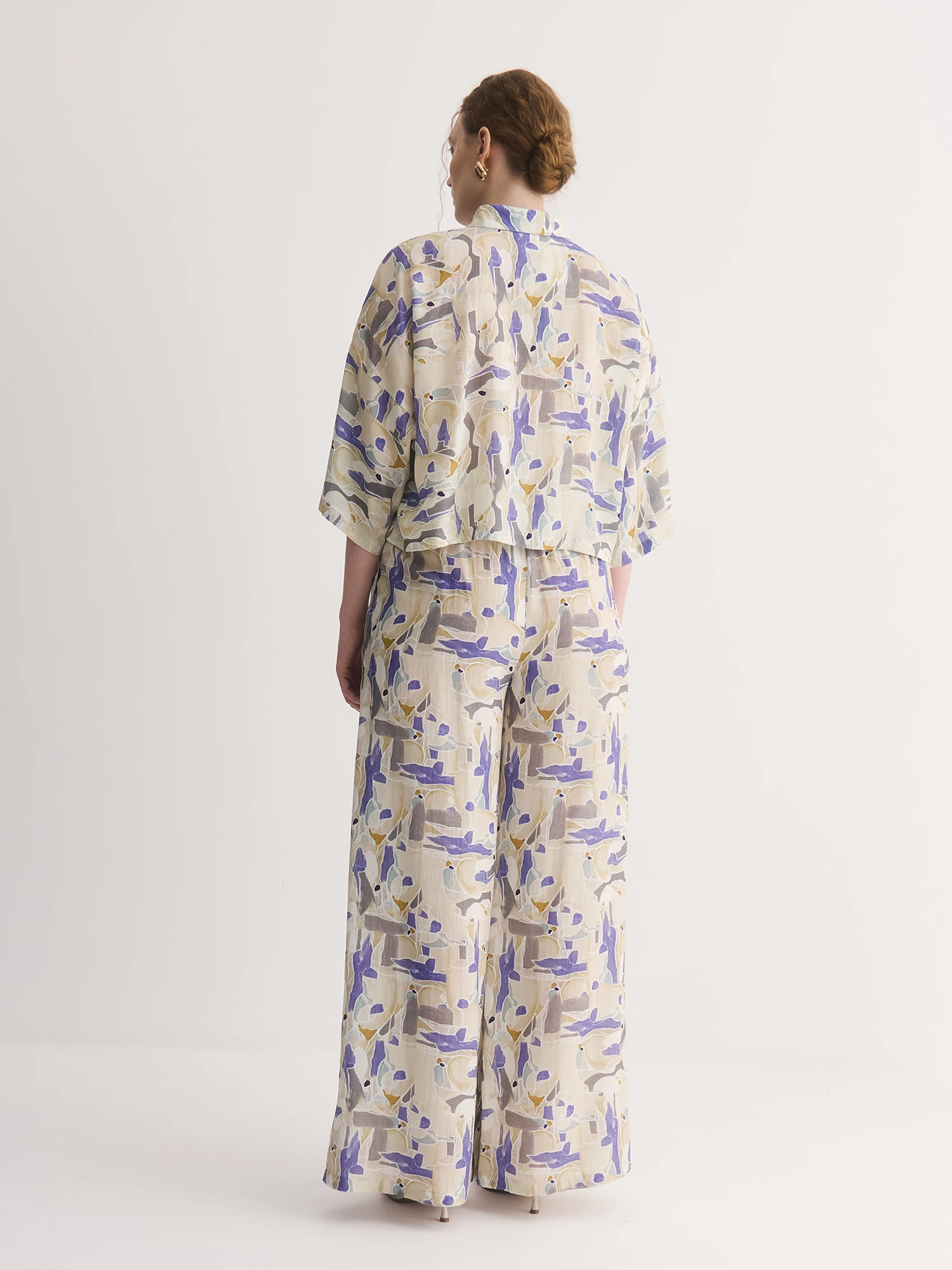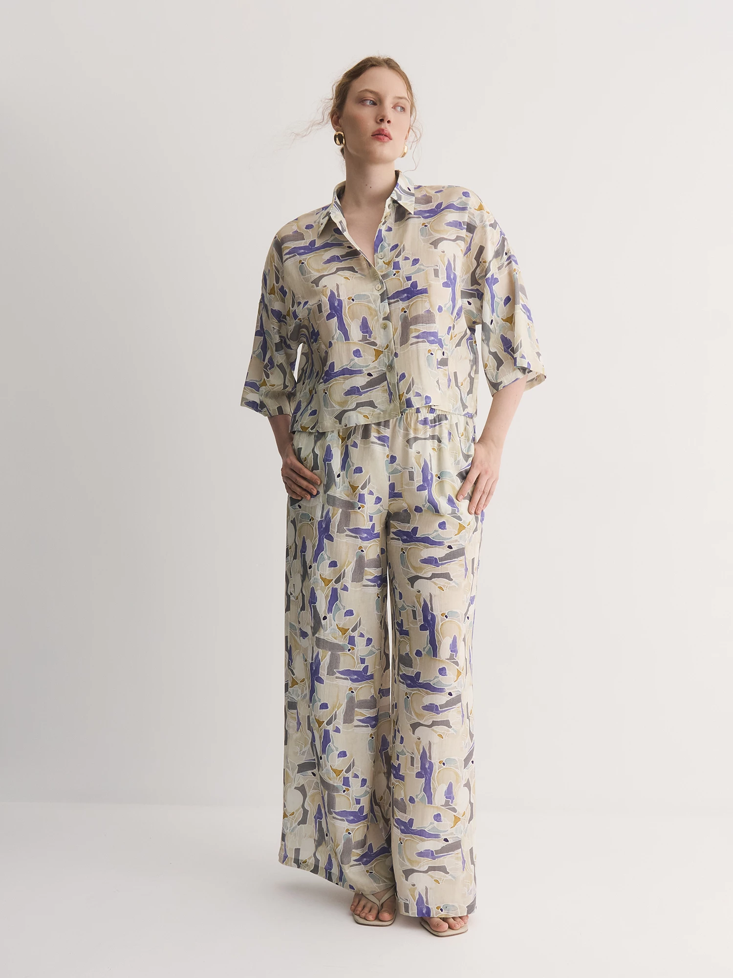 Бежево-голубой принт освежает повседневный образ, привлекает к себе внимание и добавляет образу изюминку.