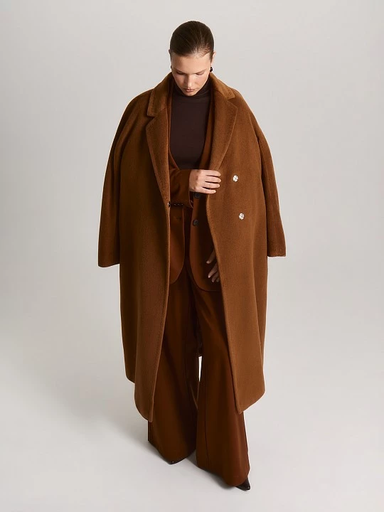 Коричневые прямые брюки без стрелок выполнены из плотного трикотажа, состоящего из вискозы, нейлона и эластана, что обеспечивает мягкость, износостойкость и эластичность, гарантируя комфорт и идеальную посадку по фигуре. Модель оснащена притачным поясом с резинкой по спинке, что добавляет удобство и легкость в носке, а потайная молния сбоку подчеркивает минималистичный и аккуратный дизайн. На передней части брюк расположена имитация застежки-гульфика, добавляющая стилистическую деталь, отсылающую к классическому крою, но в современной интерпретации. Задние половинки брюк оформлены вытачками, которые обеспечивают четкую посадку по фигуре, подчеркивая силуэт. Функциональность модели дополнена косыми боковыми карманами, сочетающими практичность и визуальную легкость. Коричневый цвет добавляет универсальность, делая брюки подходящими как для повседневных, так и для более стильных образов.