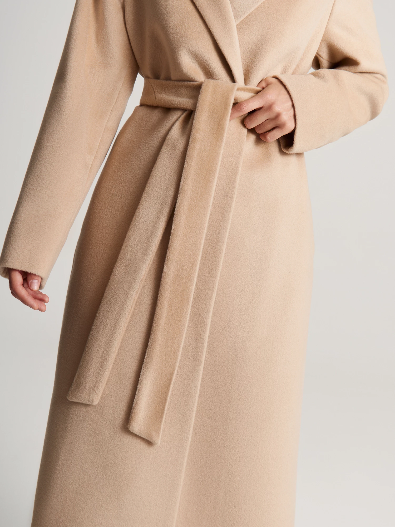 Ценное шерстяное полотно с мягким ворсом - отличный выбор для модели такого кроя. С одной стороны, ткань теплая и уютная, с другой - она демонстрирует нюансные переливы цвета и света, а потому эффектно драпируется. На нашей фабрике особенно заботятся о внешнем виде ткани пальто - при производстве используют минимум влажно-тепловой обработки и высокую долю ручного труда. Модель выполнена на полной вискозной подкладке, без застежки, со съемным поясом, дополнена классическим английским воротником и втачным двухшовным рукавом. Один из швов рукава проходит в области локтя, что способствует сохранению формы детали. Выверенный крой спущенного плеча комфортен в эксплуатации. Боковые карманы в швах практически незаметны и не перегружают модель, а высокая шлица создана для уверенного шага. Песочный оттенок Golden Fleece (рус. "золотое руно") - мягкий, универсальный в сочетаниях, пальто зайдет в гардероб как базовое, оно уместно в деловом, кэжуал и спортивном стиле. Образ от наших стилистов - вязаный джемпер из хлопковой пряжи с рукавом реглан-погон JM0160V и брюки палаццо TR0519.
