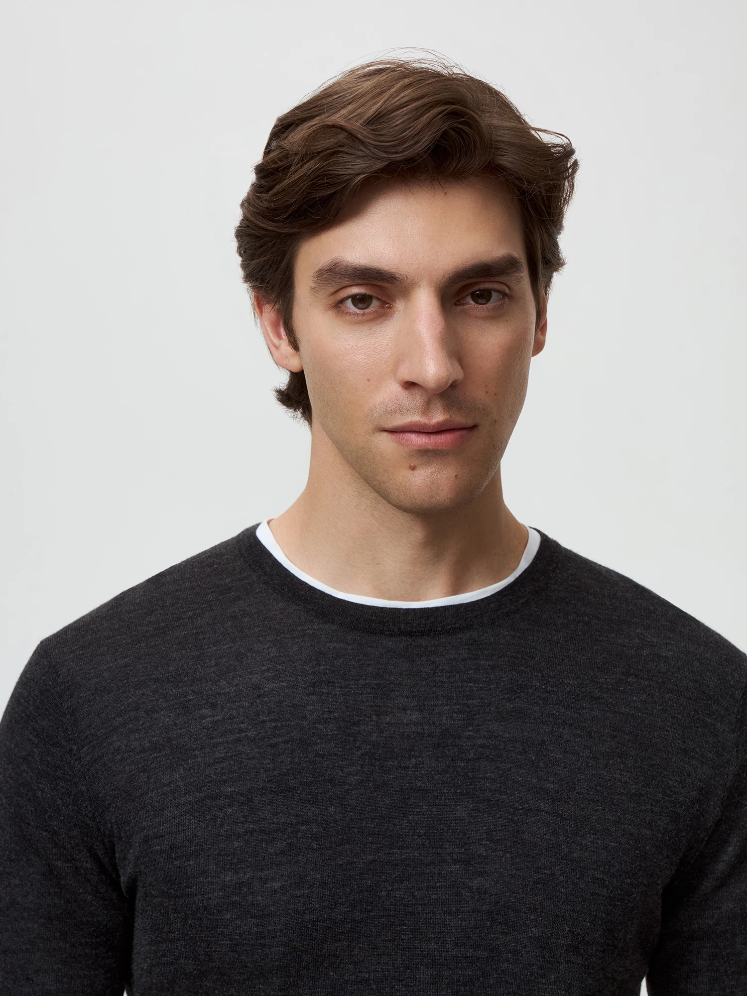 Бренд: 20lineЦвет: Серый меланжСостав: Шерсть мериноса - 100%Рост: 187Артикул: IJM0018VY1Размер на модели: 50Коллекция: EARLY FALL