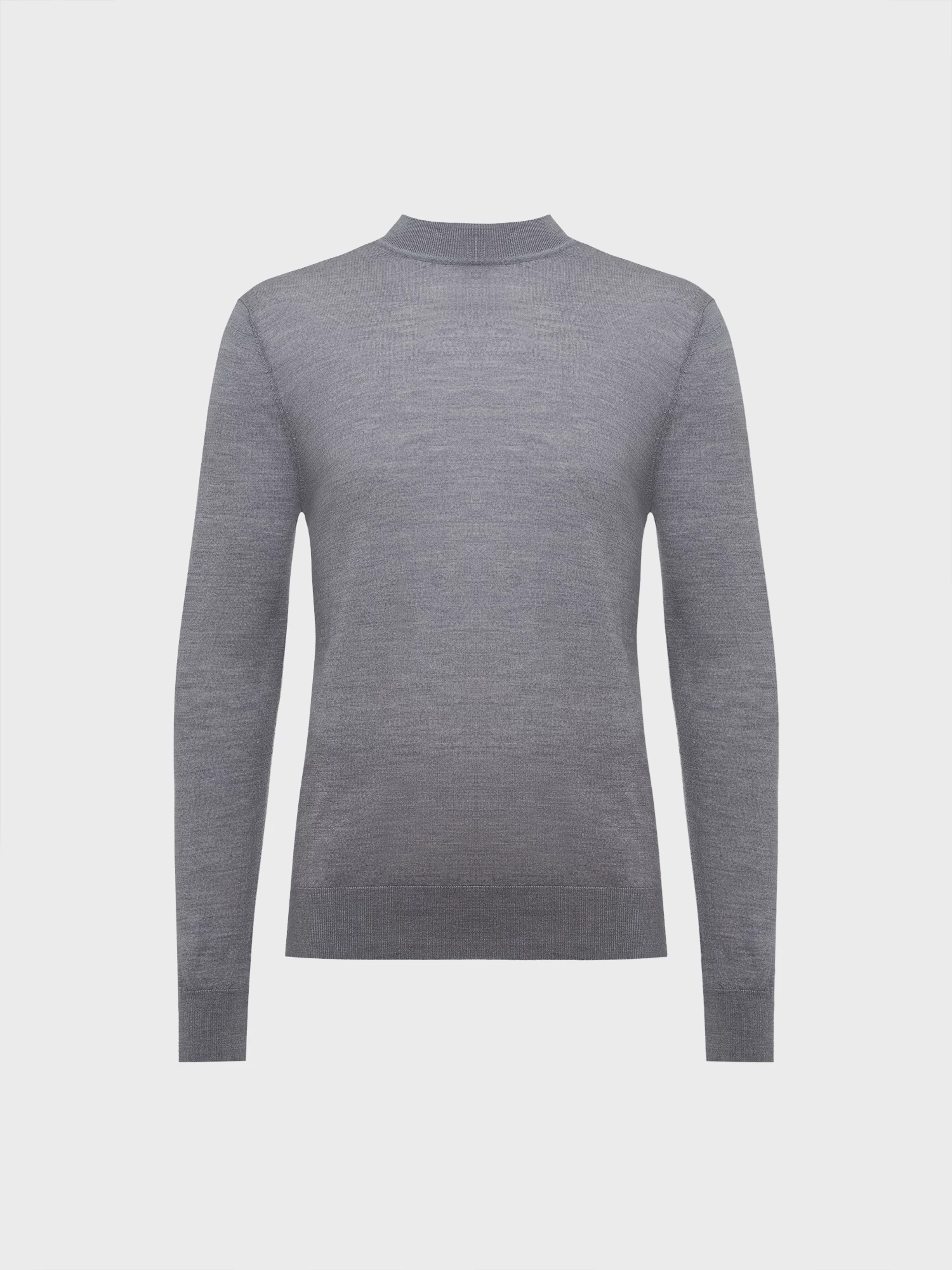 Классический джемпер из премиальной пряжи - хорошая инвестиция в базовый гардероб. Лаконичный дизайн модели делает ее подходящей для неформальных мероприятий, офиса, повседневной носки. Длинные рукава и воротник-полустойка добавляют уют и защищают от холода, а также позволяют создавать многослойные образы с рубашками, благодаря С-образной форме воротника. Джемпер выполнен из натуральной шерсти мериноса, известной своей мягкостью. Такой состав пряжи делает джемпер комфортным для ношения даже на голое тело. Терморегуляционные свойства шерсти обеспечивают комфортную температуру в любых условиях: она согревает в холод и охлаждает в тепло. Шерсть мериноса эластична, не сковывает движения и подходит для активного образа жизни. Серый цвет универсален, подчеркивает сдержанность и стиль джемпера. Крой модели комфортного облегания не стесняет движения, обеспечивая свободу и удобство. Кеттельная эластичная обработка швов делает их практически незаметными, что подчеркивает высокое качество изделия и обеспечивает долговечность. Высокий 18-й класс вязания — это вершина технологий в трикотажном производстве. Он гарантирует тонкость и премиальное качество вязаного полотна, создавая изделия, которые сочетают в себе легкость, комфорт и роскошь. Такой джемпер — прекрасный выбор для тех, кто ценит внимание к деталям и стремится к совершенству своего гардероба.