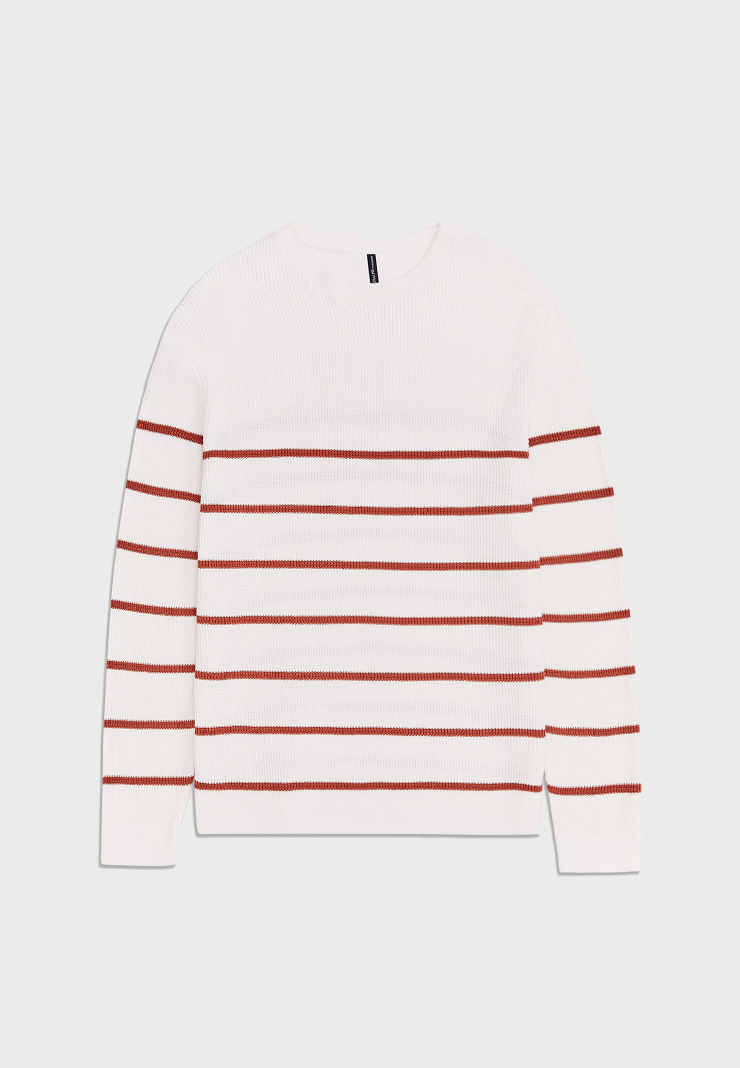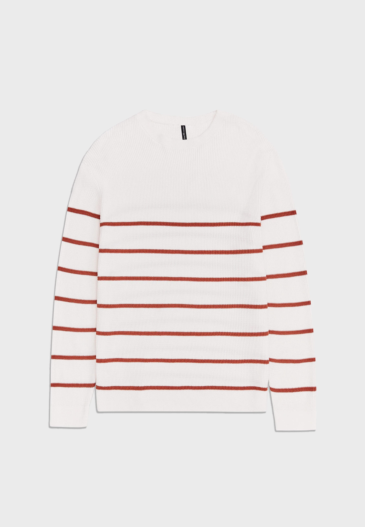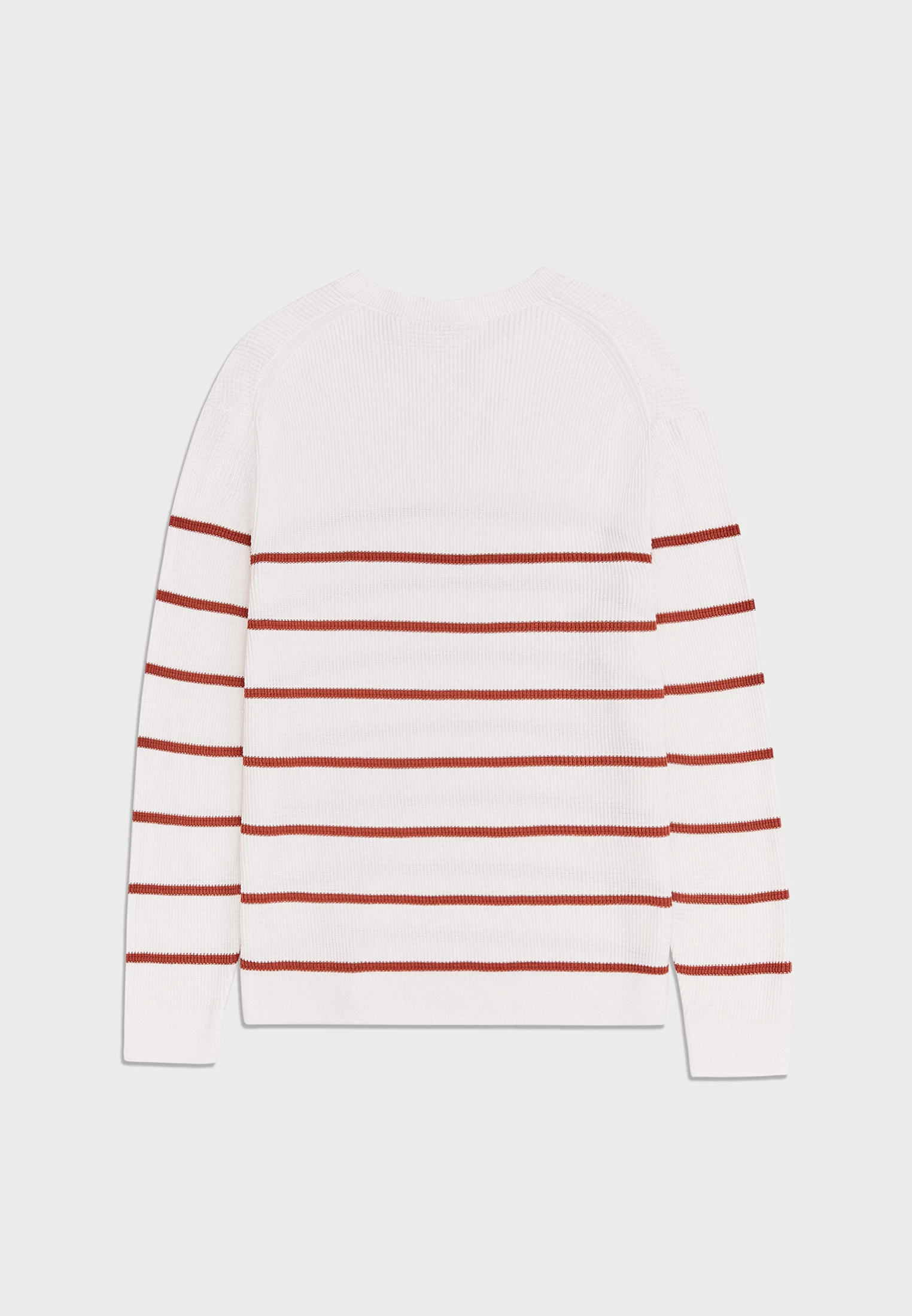 Джемпер терракотового цвета с фактурной вязкой и узором в полоску терракотового оттенка. Мягкая пряжа из натурального хлопка приятна к телу и сохраняет тепло. Модель прямого силуэта с круглым вырезом горловины, длинным рукавом с манжетами, и чуть спущенной линией плеча. Актуальный вязаный джемпер станет интересным акцентом в ваших повседневных образах в сочетании с джинсами и брюками.