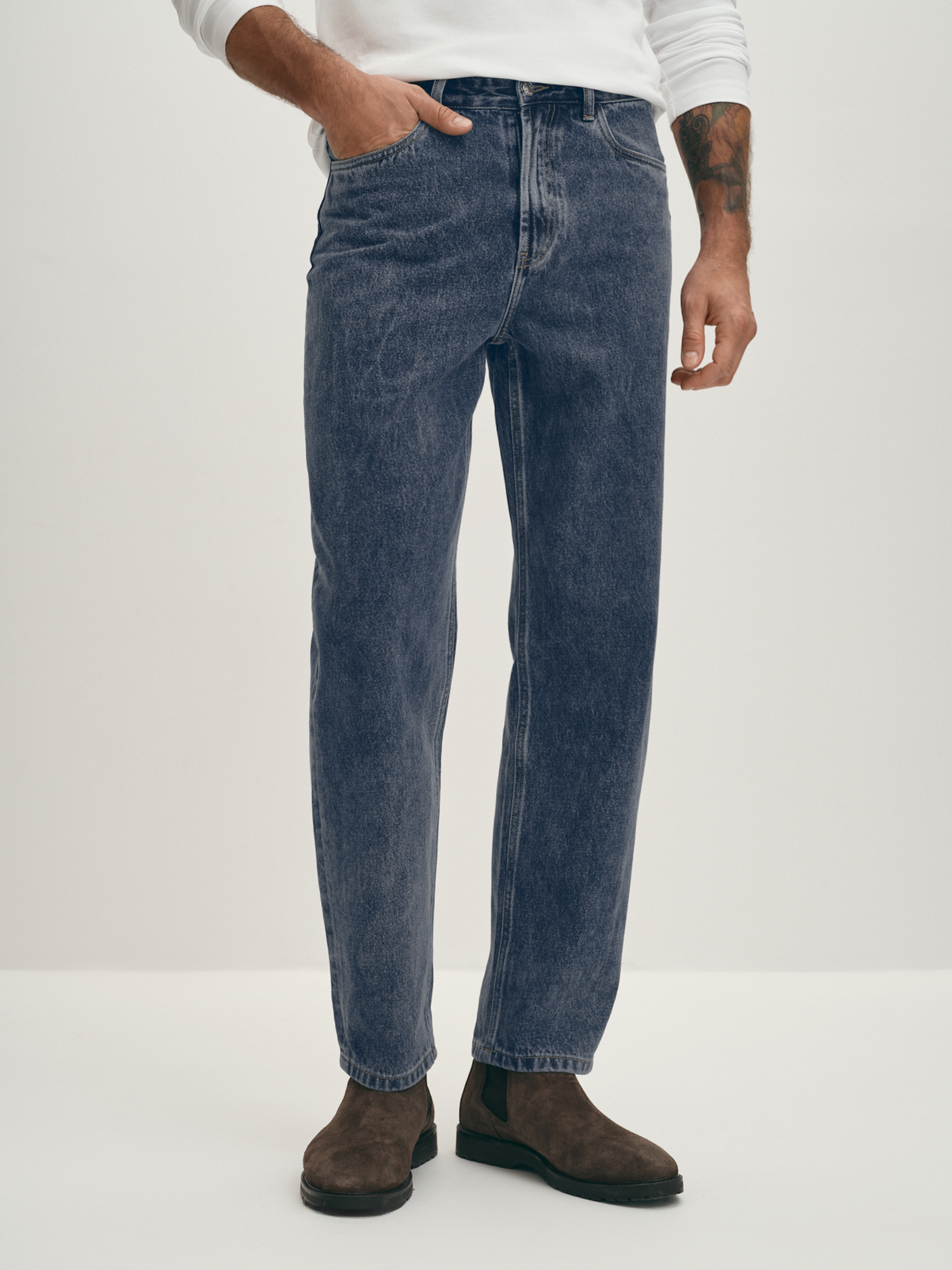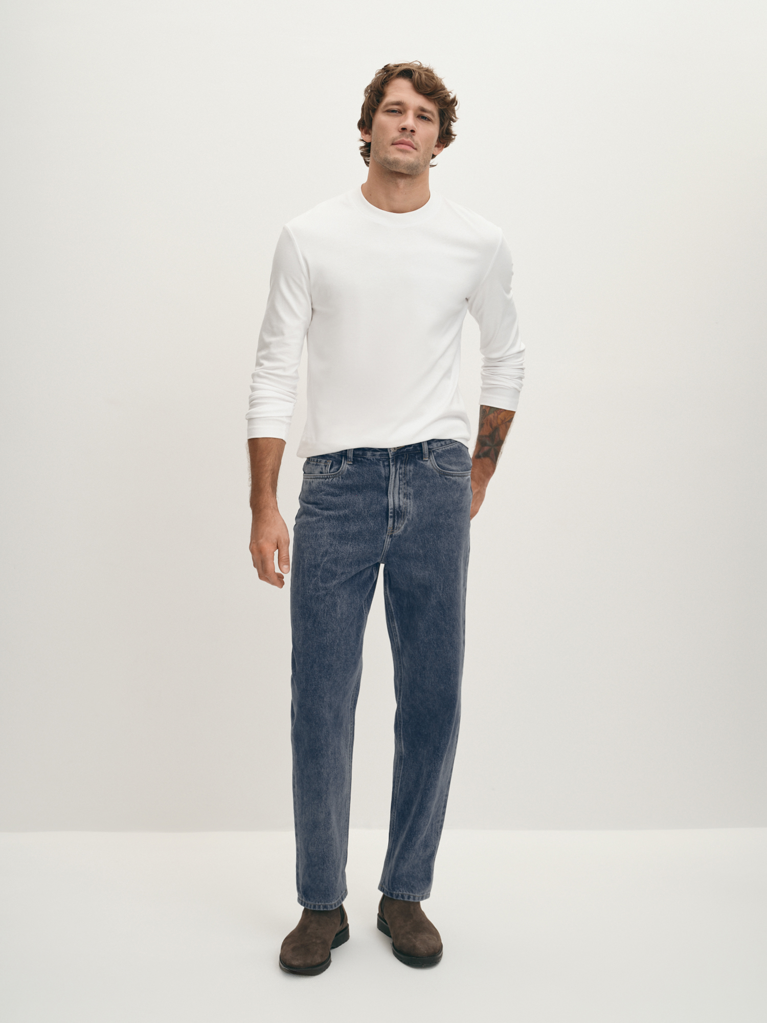 Ни один мужской гардероб не обходится без базовых темно-синих джинсов. Это настоящая, проверенная годами, классика в мире денима. Материал из мягкого натурального хлопка тщательно обработали для создания эффекта вываренной джинсы. Прямые джинсы полной длины справятся с многозадачностью в гардеробе, сочетая вещи разной степени формальности.