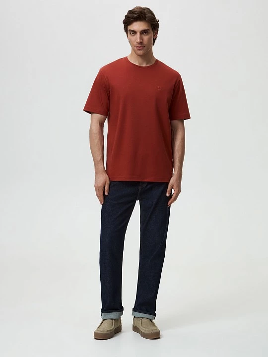 Стильная футболка с коротким рукавом в силуэте regular и оттенке "красная земля" станет отличным дополнением гардероба. Футболка выполнена из тактильно приятного трикотажа, состоящего на 100% из хлопка. Этот материал обеспечивает отличную воздухопроницаемость и комфорт в носке, что делает футболку идеальным выбором для повседневной жизни.