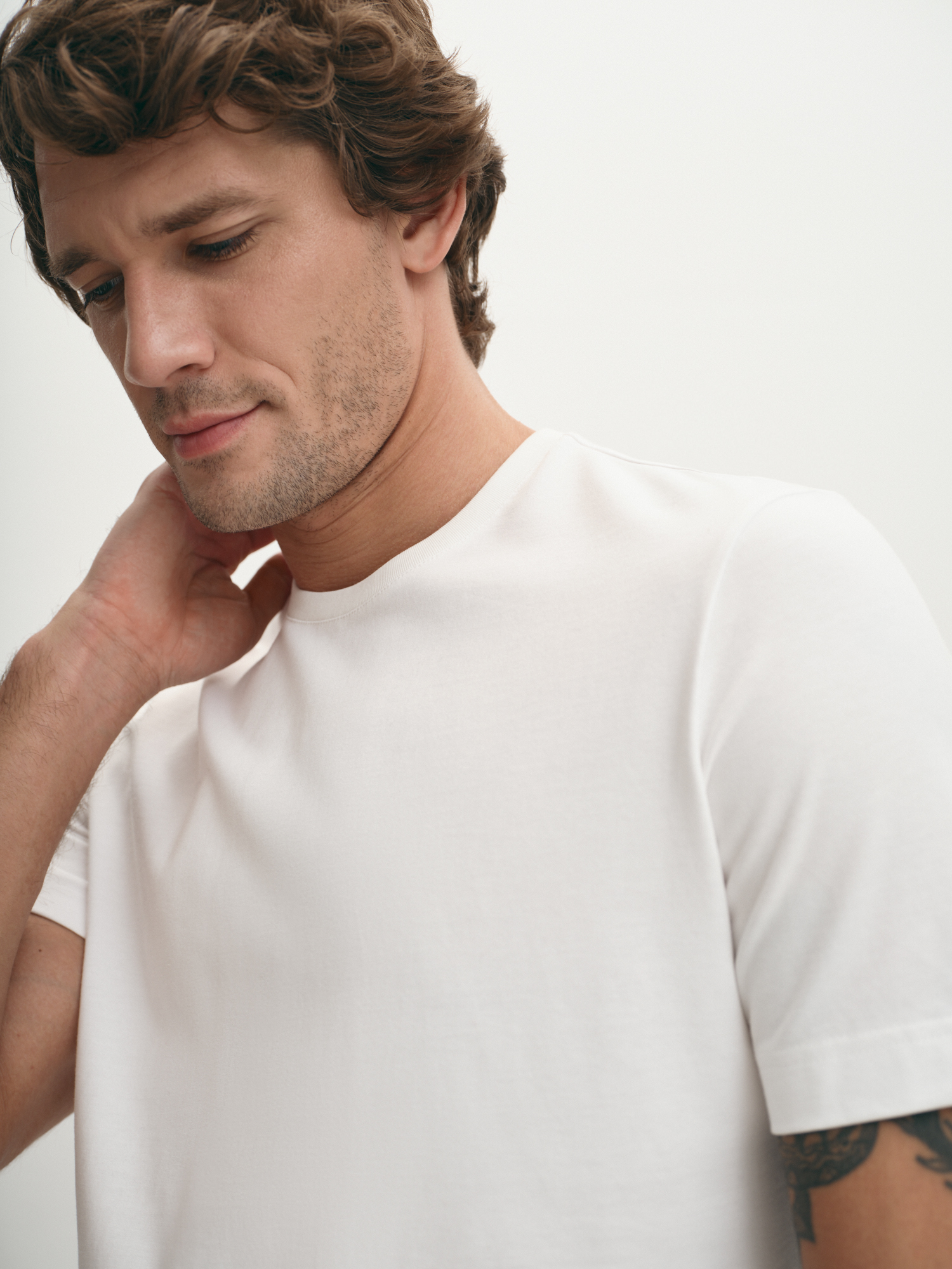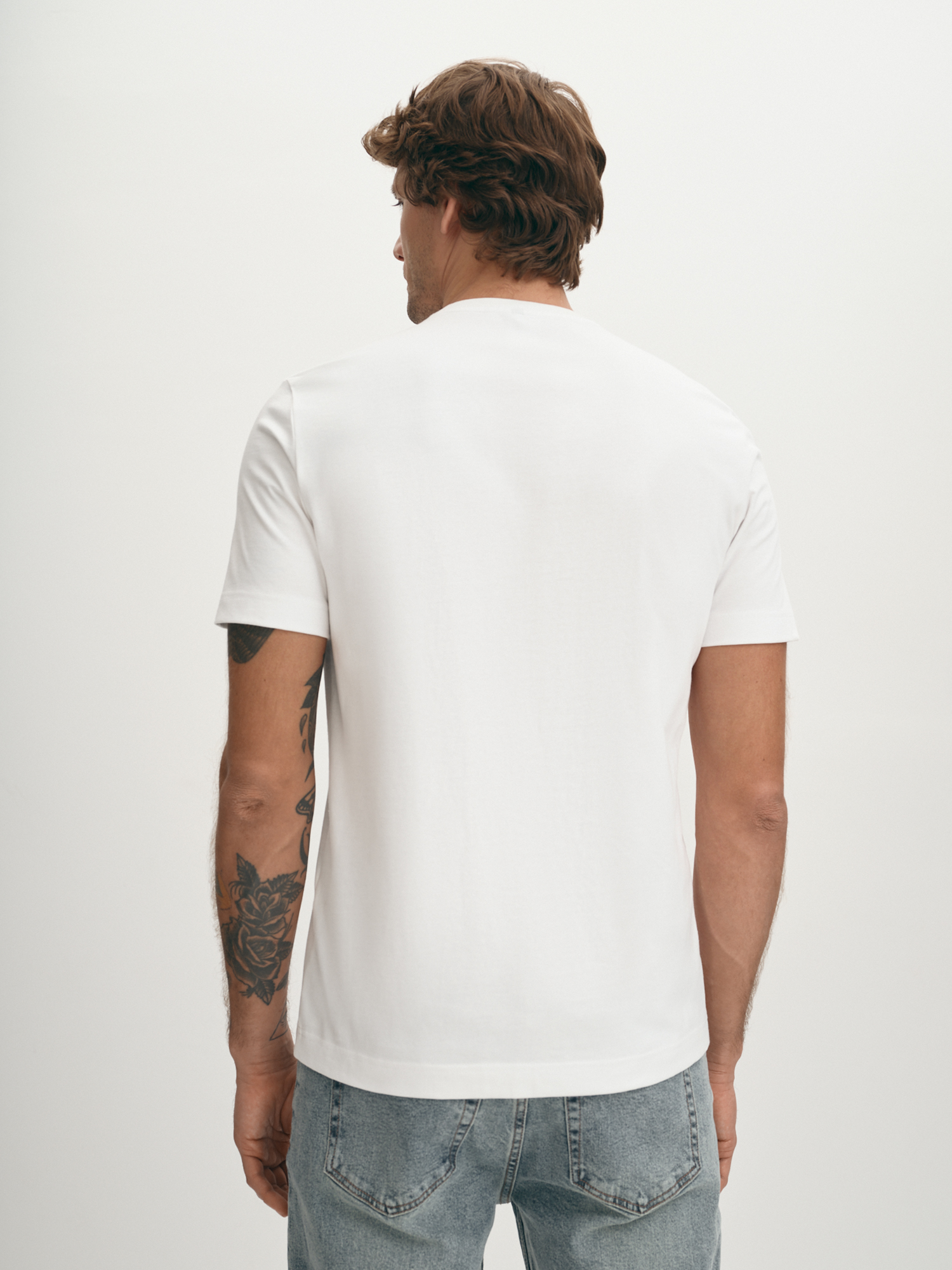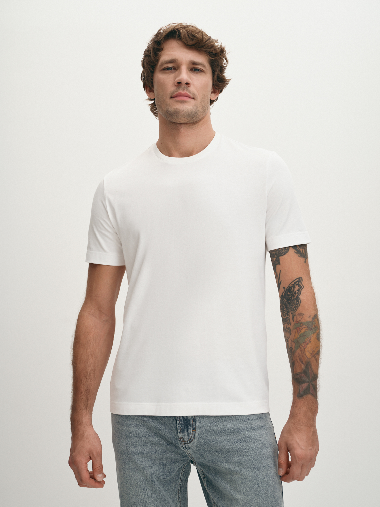Белая однотонная футболка станет универсальной базой вашего гардероба, комбинируя с джинсами и брюками различных фасонов и оттенков. Создана модель из мягкого хлопкового трикотажа, такой материал поддерживает хорошую циркуляцию воздуха и дарит непревзойденный комфорт в течении всего дня.