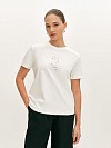 Лёгкая белоснежная футболка с авторским принтом выполнена из нежного премиального хлопка. Дышащий материал приятно ощущается на теле и обеспечивает комфорт в теплую погоду. Модель прямого силуэта с коротким втачным рукавом и круглым вырезом горловины, обработанным бейкой. Универсальную футболку легко сочетать со спортивными брюками или джинсами.