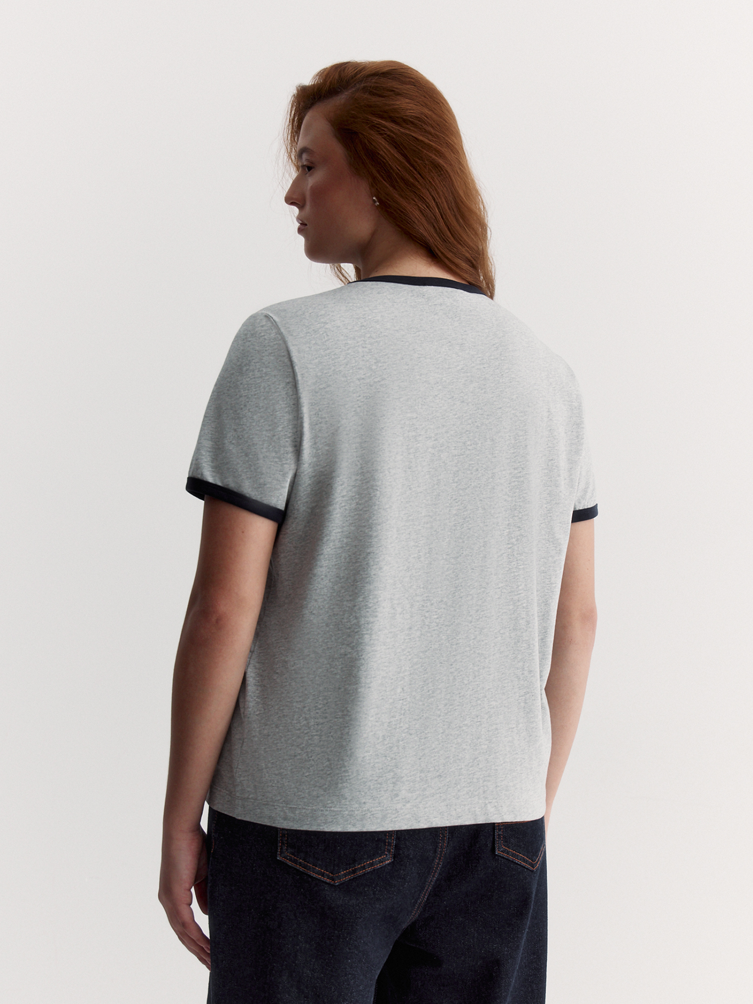 Футболка полуприлегающего кроя – мягкая, удобная и с аккуратными деталями. Сшита из хлопкового меланжевого трикотажа, приятного к телу и гипоаллергенного.