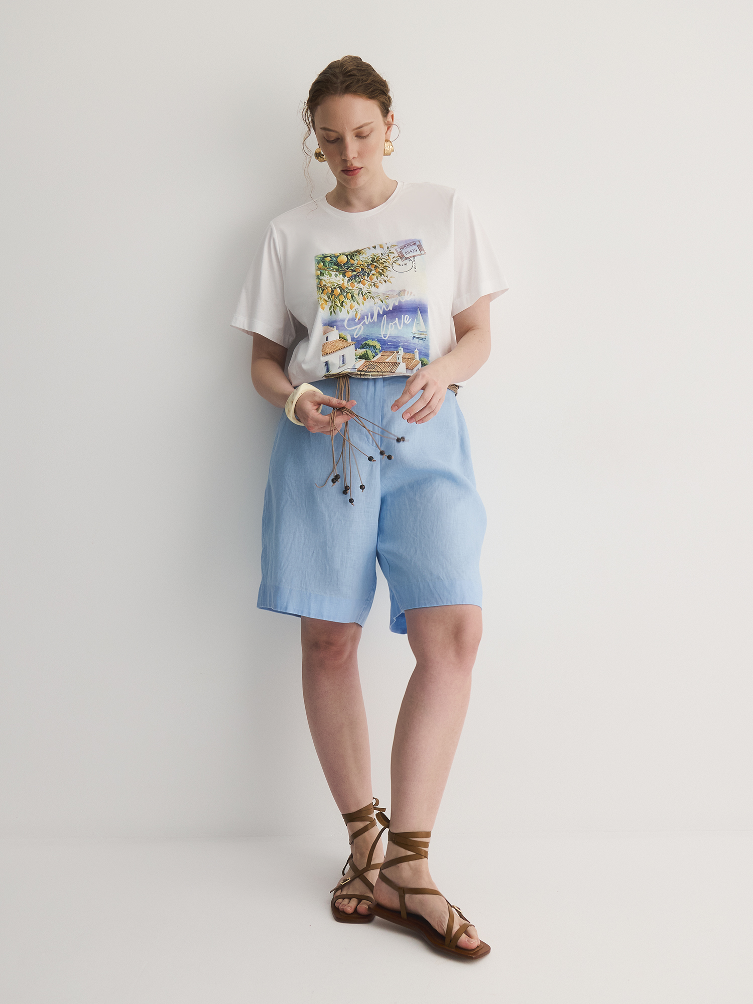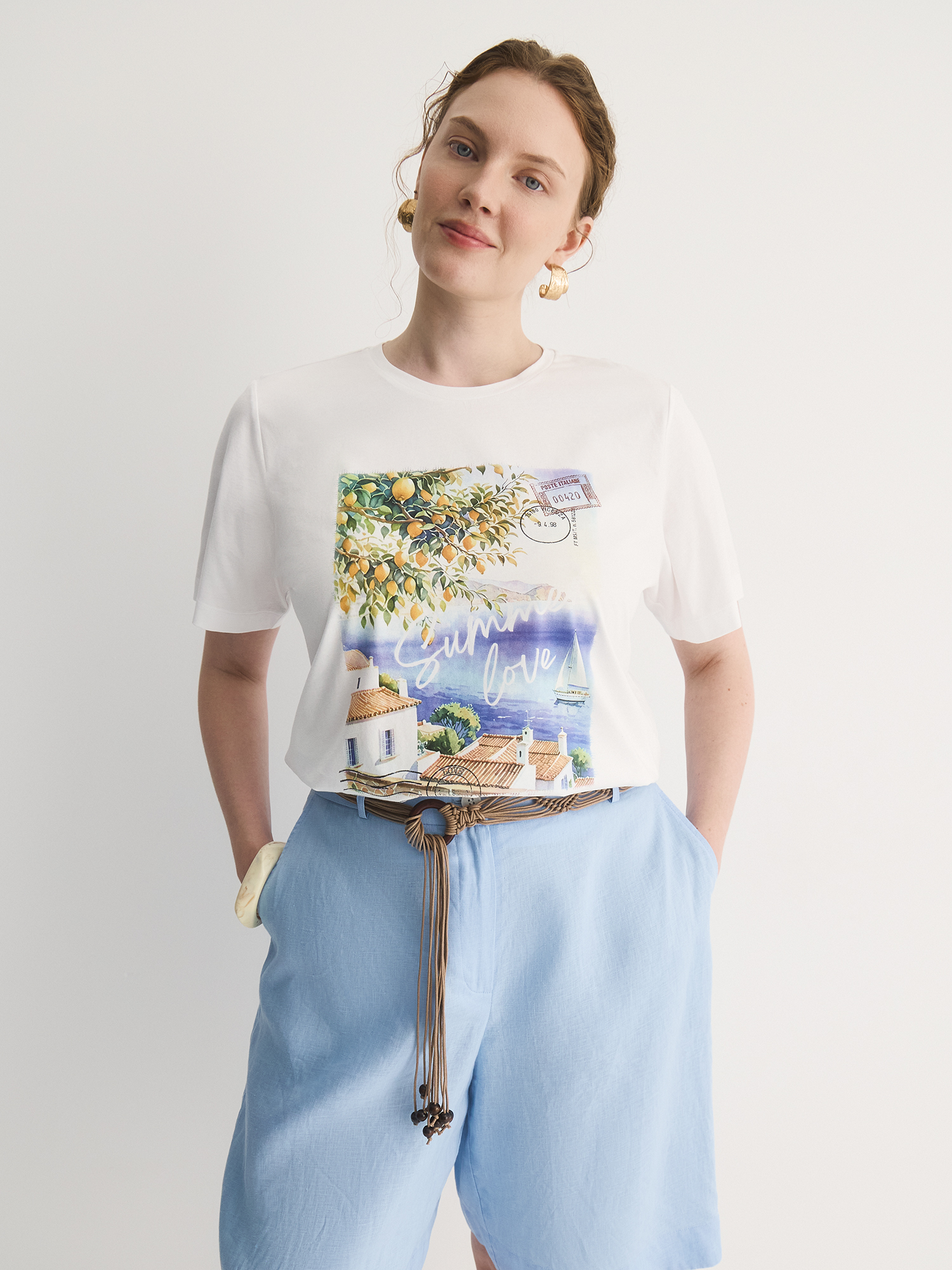 Бренд: LalisЦвет: БелыйСостав: Хлопок - 100%Артикул: TS0125K6Размер на модели: 50Коллекция: РИМСКИЕ КАНИКУЛЫ
