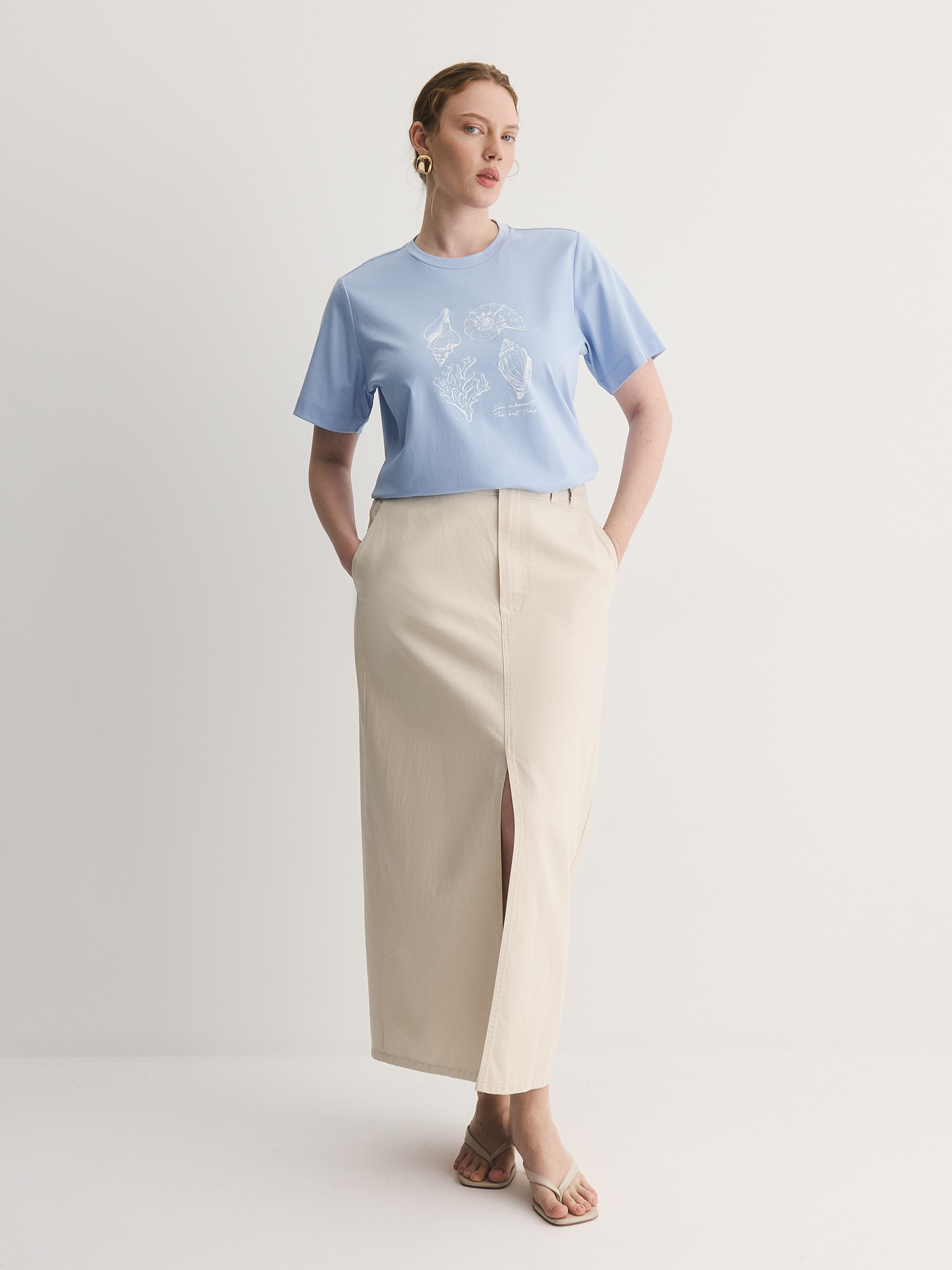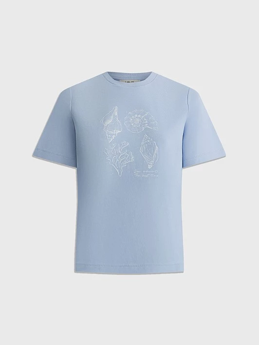 Бренд: LalisЦвет: ГолубойСостав: Хлопок - 100%Артикул: TS0125K7Размер на модели: 50Коллекция: МОРСКАЯ ПРОГУЛКА