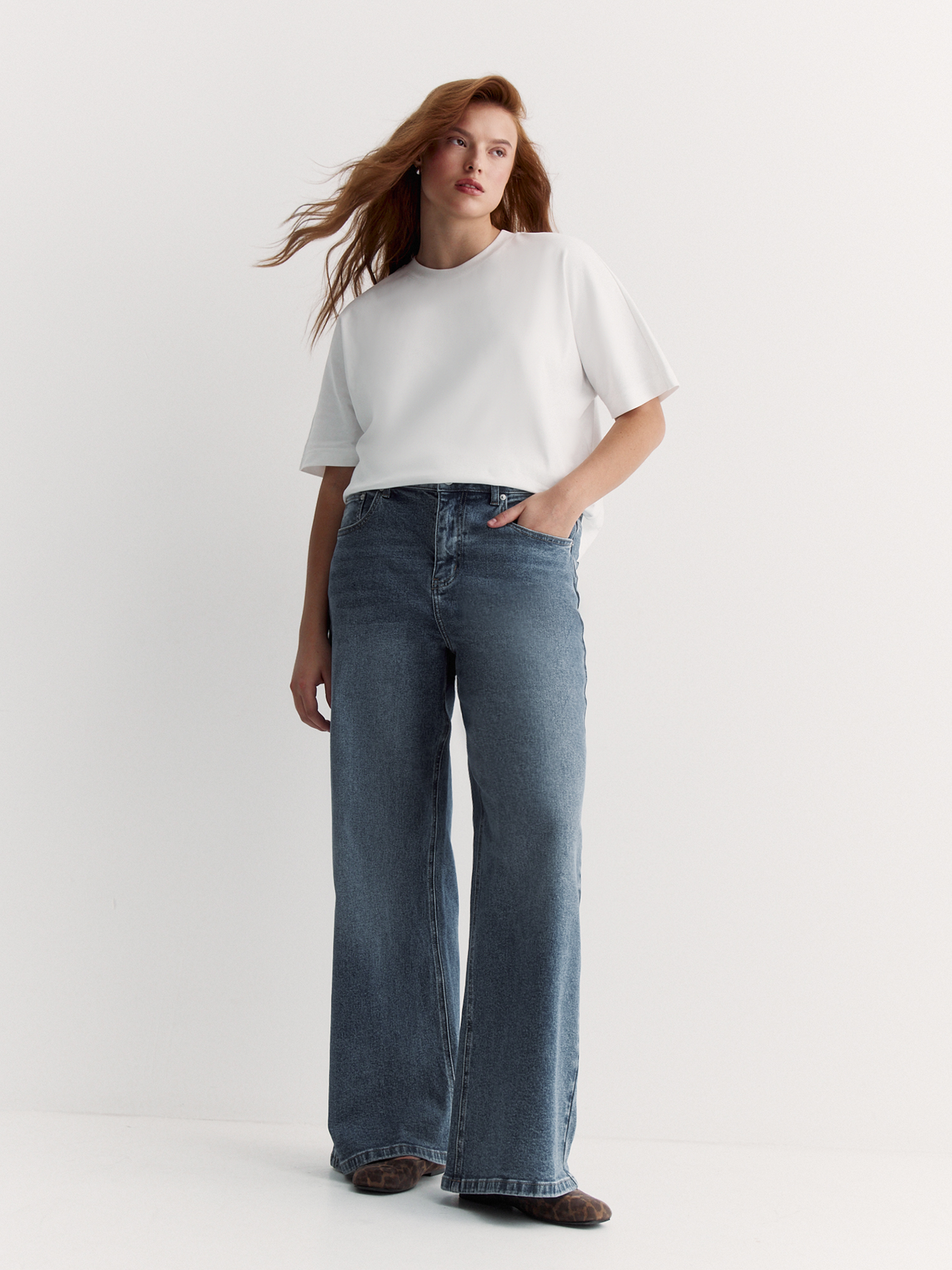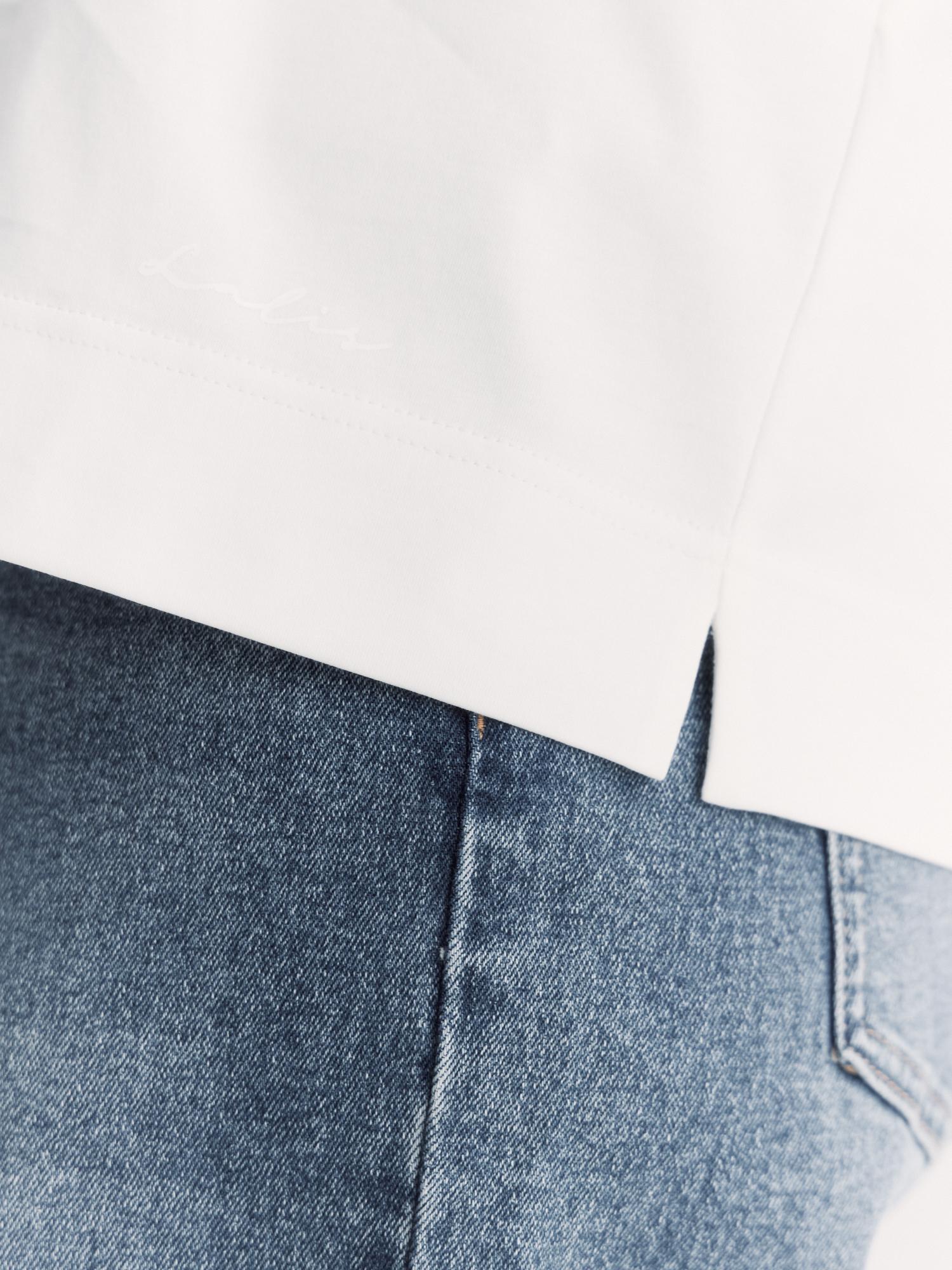 Модель в базовом молочном оттенке хорошо сочетается с джинсами и повседневными брюками.