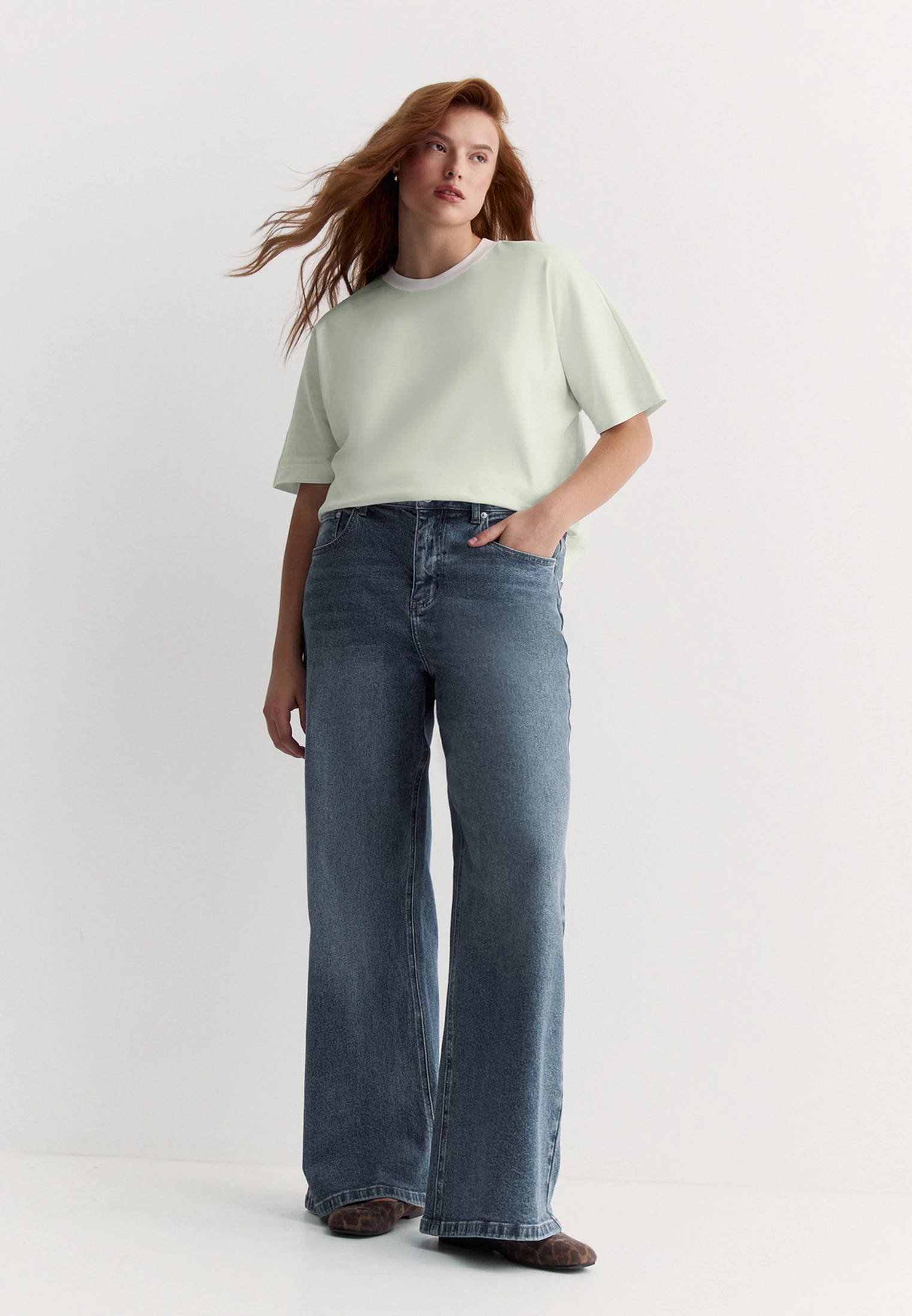 Модель в актуальном серо-зеленом хорошо сочетается с джинсами и кэжуальными брюками.
