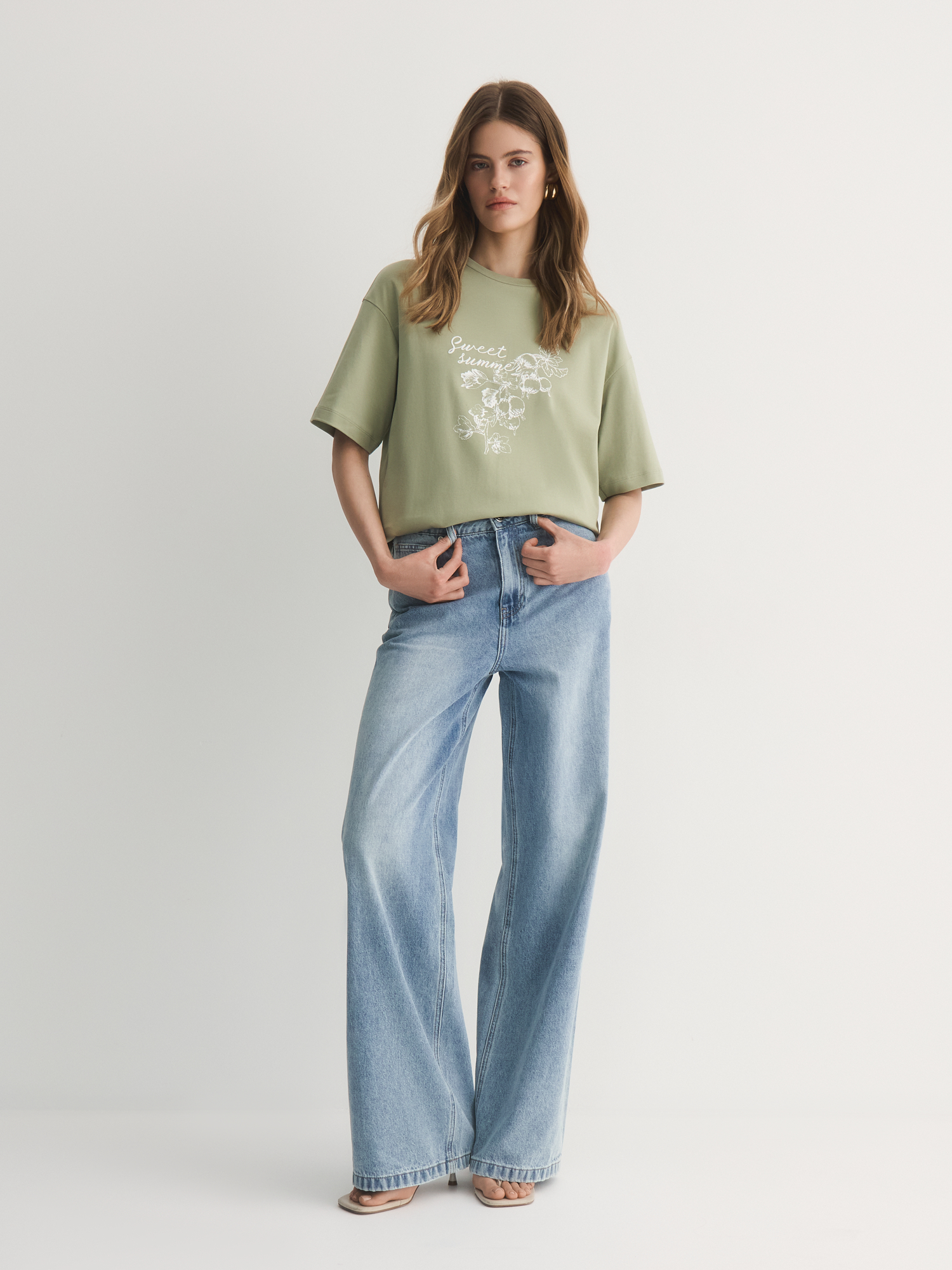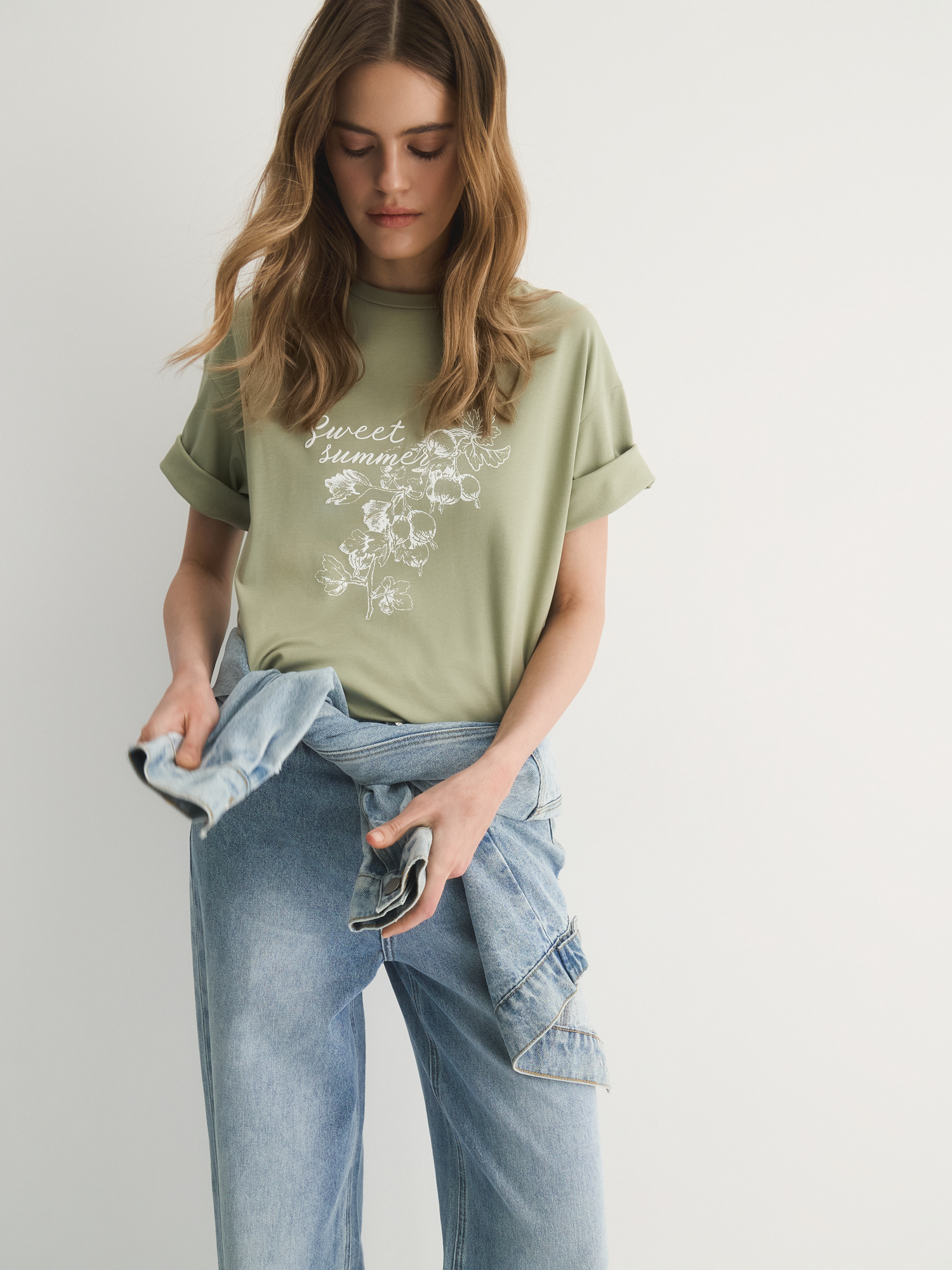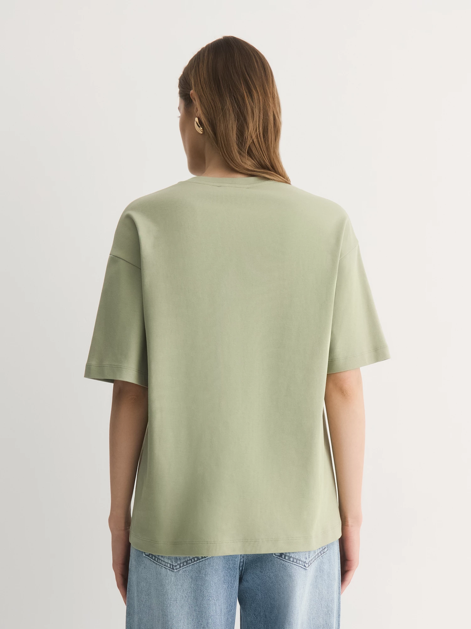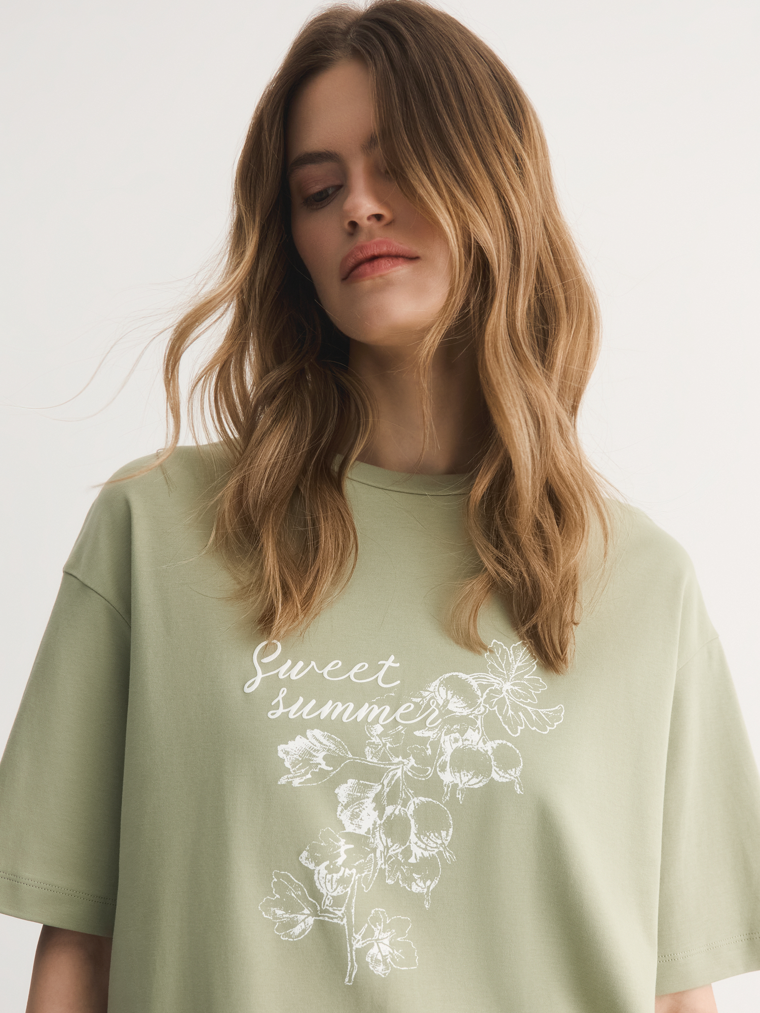 Футболка свободного кроя с дизайнерским принтом – стильная база для повседневных образов. Сшита из мягкого мерсеризованного хлопка, который приятен к телу, хорошо сохраняет цвет и обладает особым шелковистым блеском.