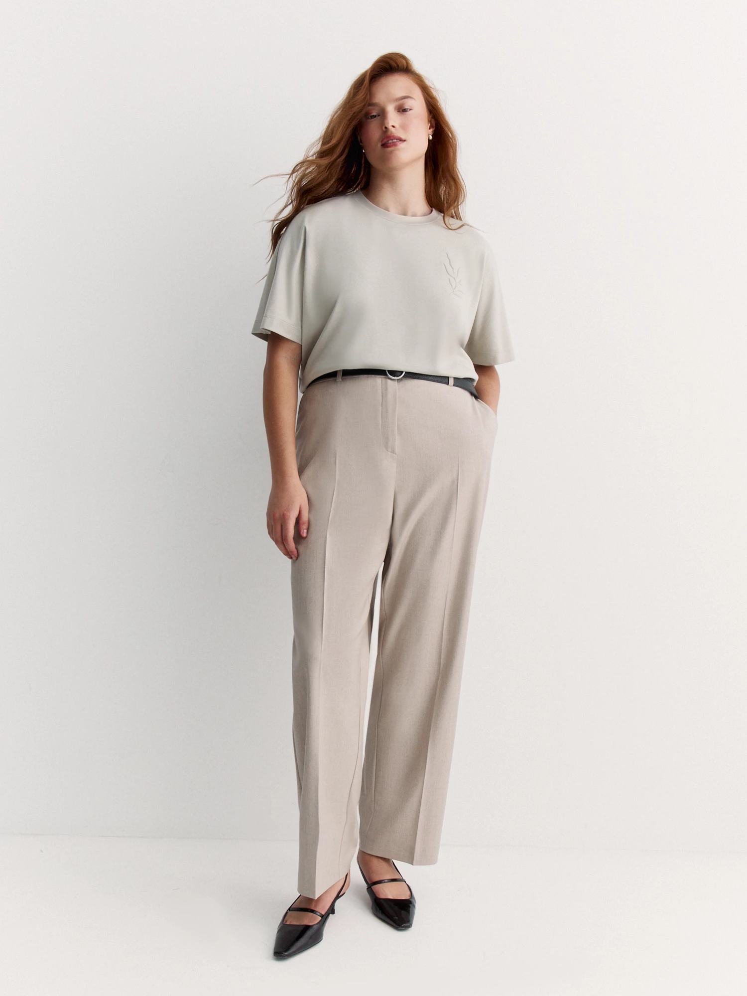 Бренд: LalisЦвет: Серо-зеленыйСостав: Хлопок - 100%Артикул: TS0034K7PРазмер на модели: 50Коллекция: ВРЕМЯ ЦВЕСТИ