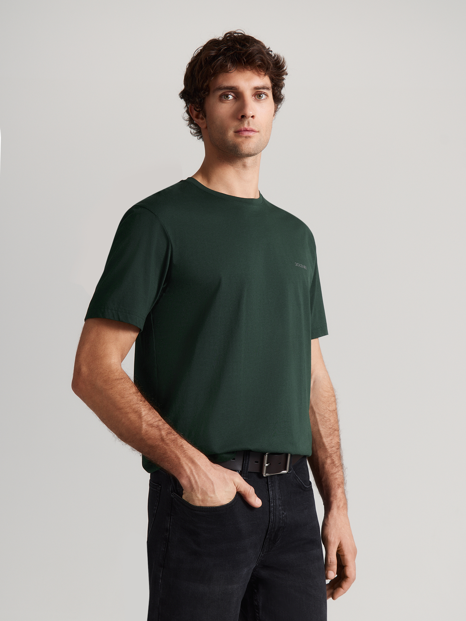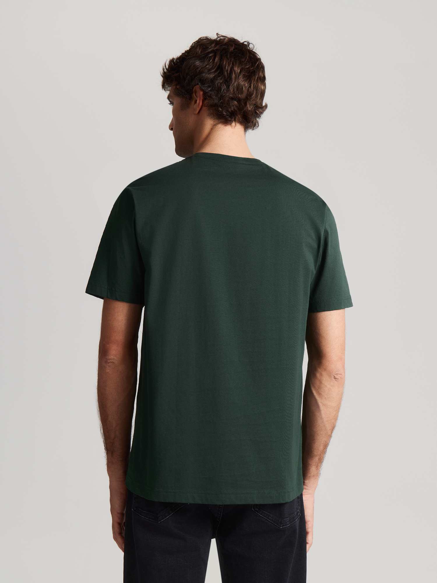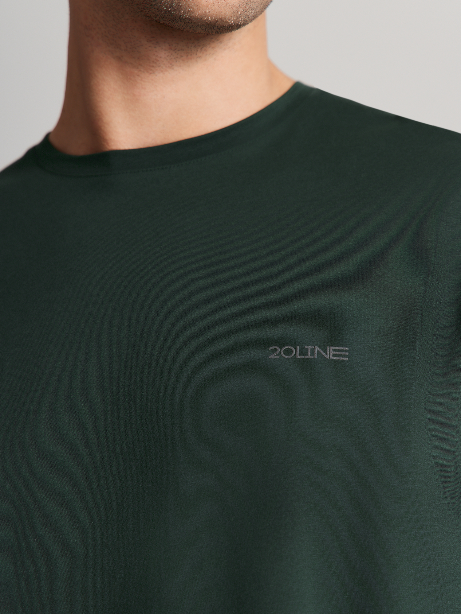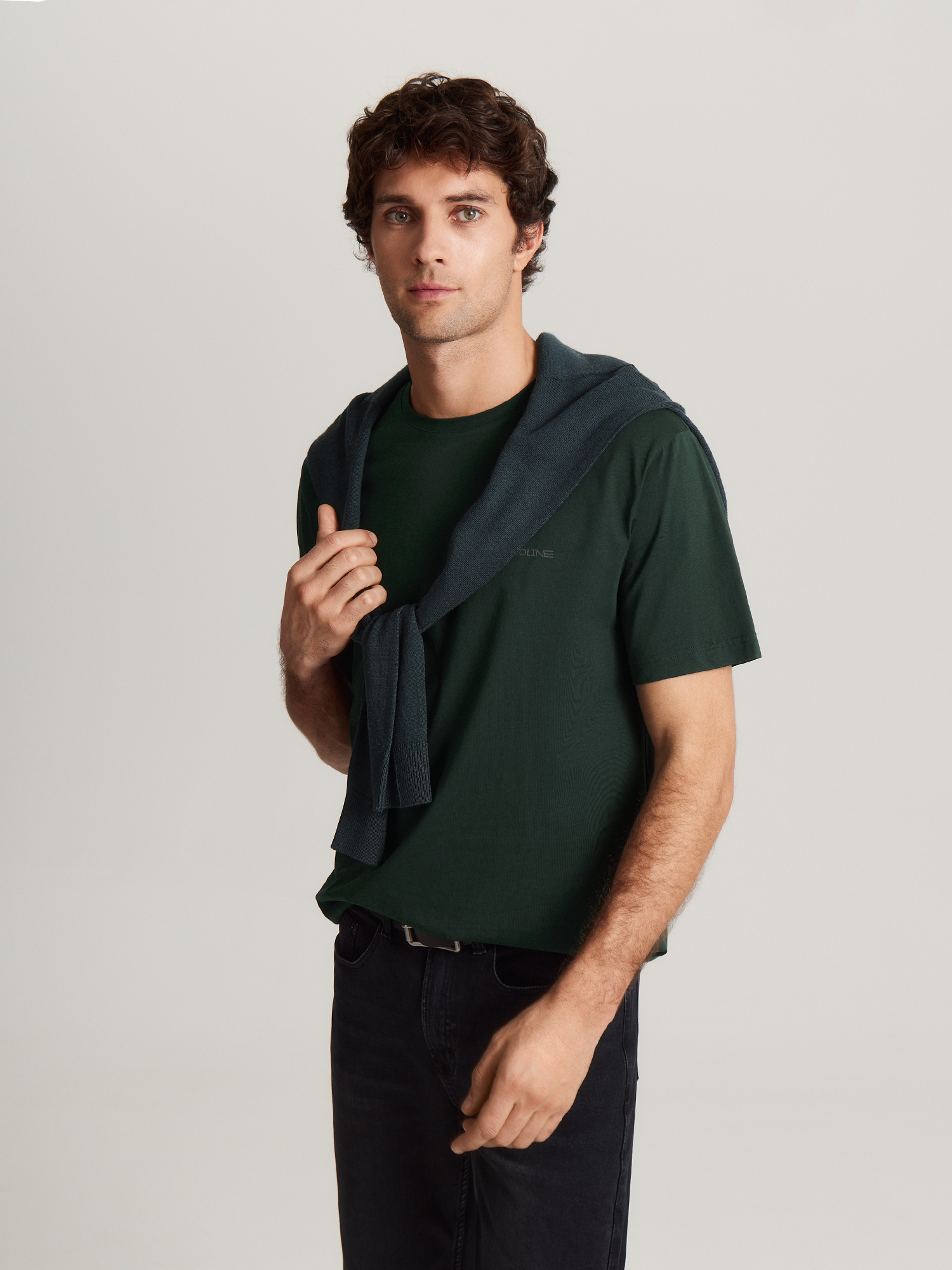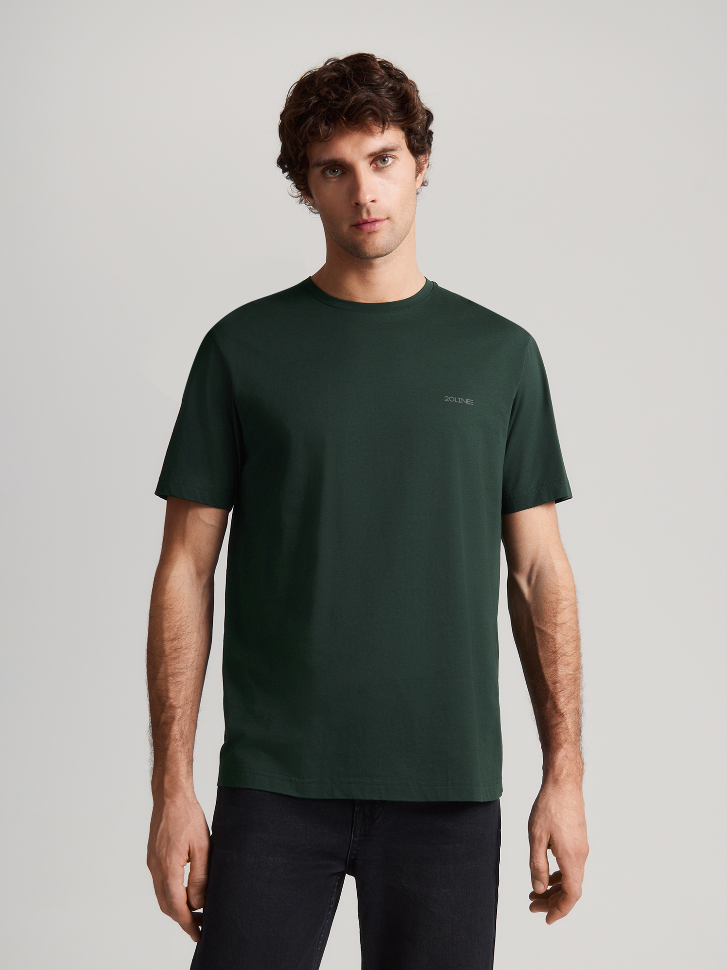 Футболка силуэта regular выполнена с круглым вырезом с отделкой из основной ткани и коротким рукавом. Классический крой делает модель универсальной. Она легко комбинируется с джинсами, шортами или спортивными брюками. Выбор наших стилистов – костюм из эластичного хлопка. Привлекает внимание брендированный принт в тон основной ткани, выполненный на собственном производстве с помощью машины PRISM для печати по текстилю. Футболка изготовлена из 100% натурального хлопка, что обеспечивает отличную воздухопроницаемость и мягкость на ощупь. Хлопок не вызывает аллергии и подходит для чувствительной кожи. Модель выполнена в сочном темно-зеленом оттенке "платан", одном из основных цветов капсулы.
