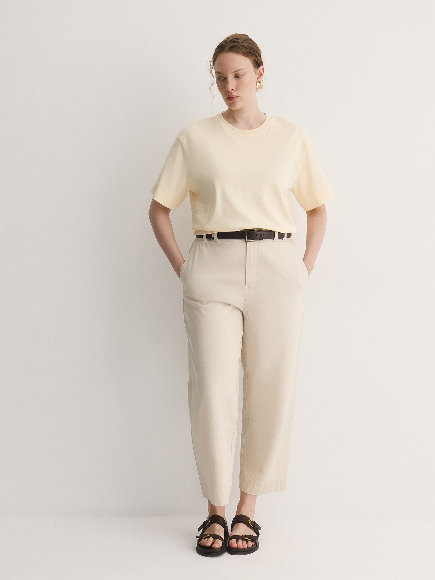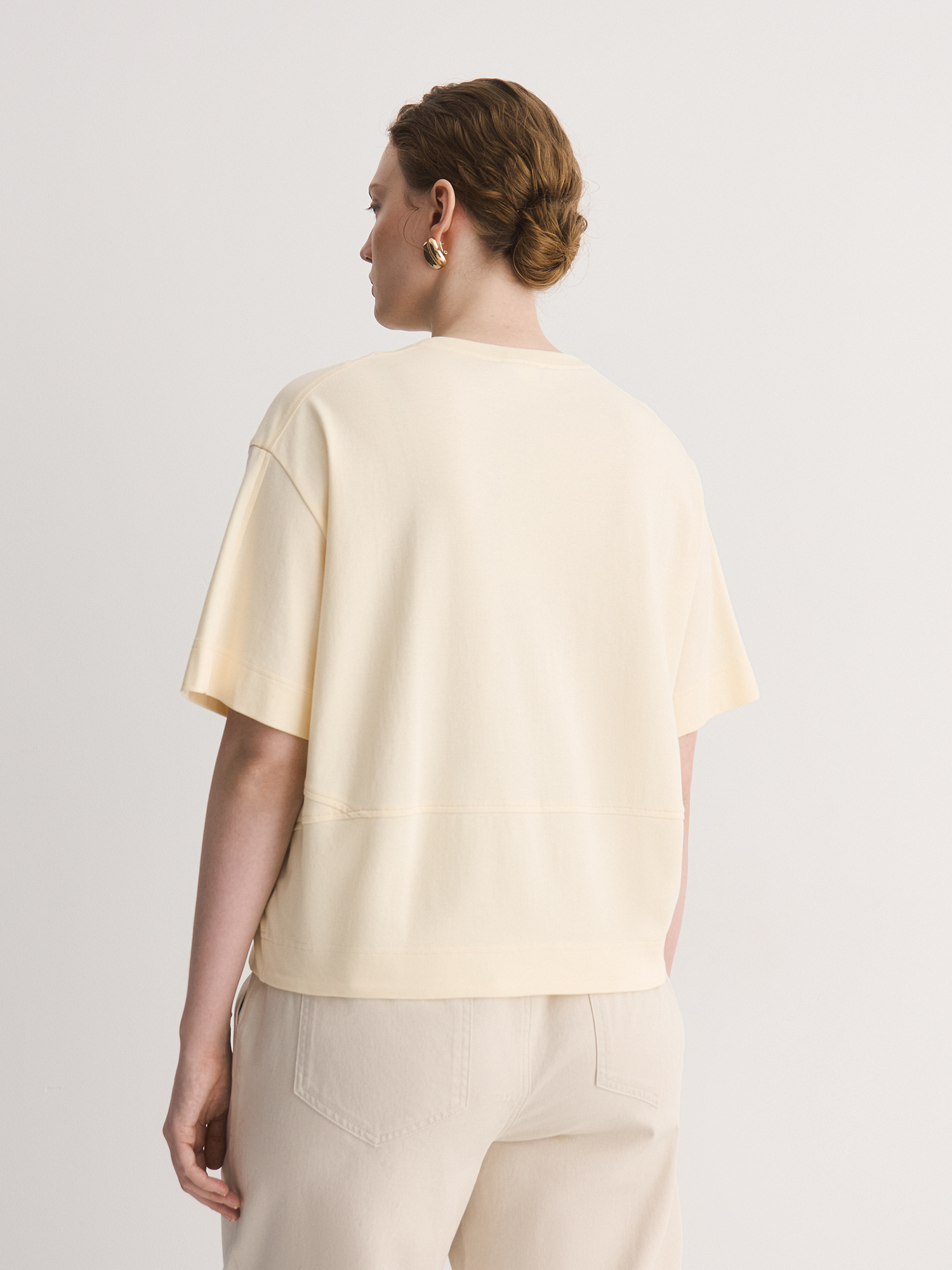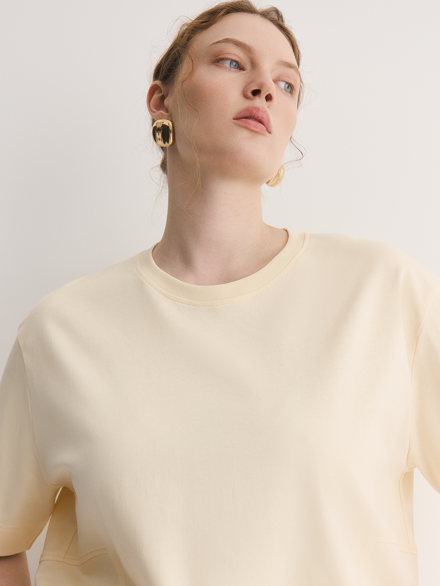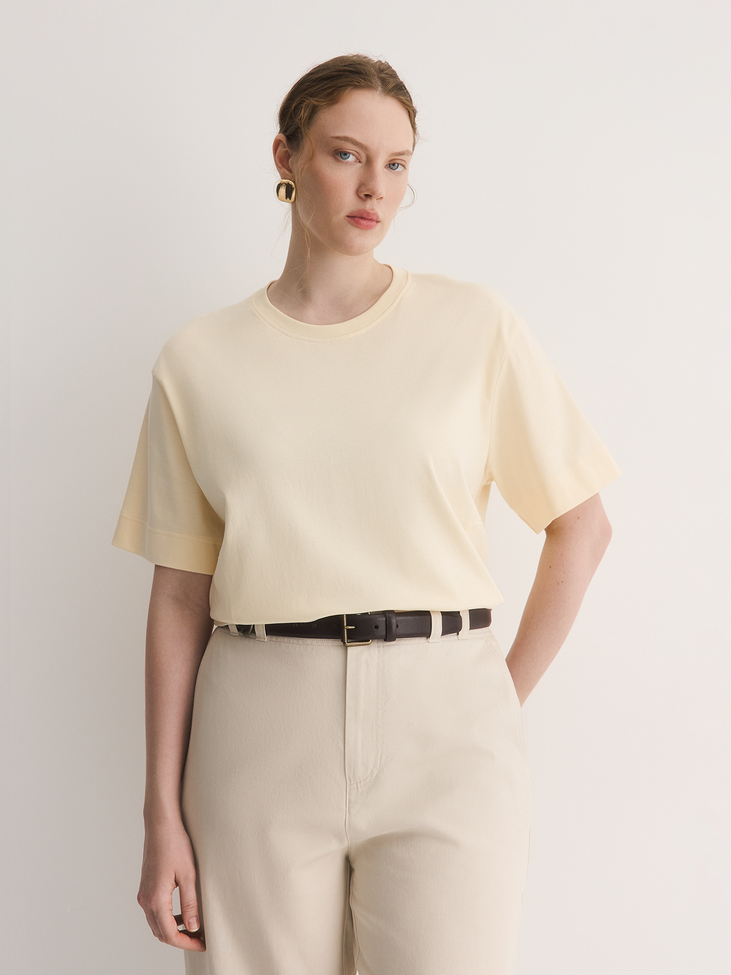 Футболка в приятном светло-желтом оттенке сочетается с чем угодно, от строгих брюк до джинсов.