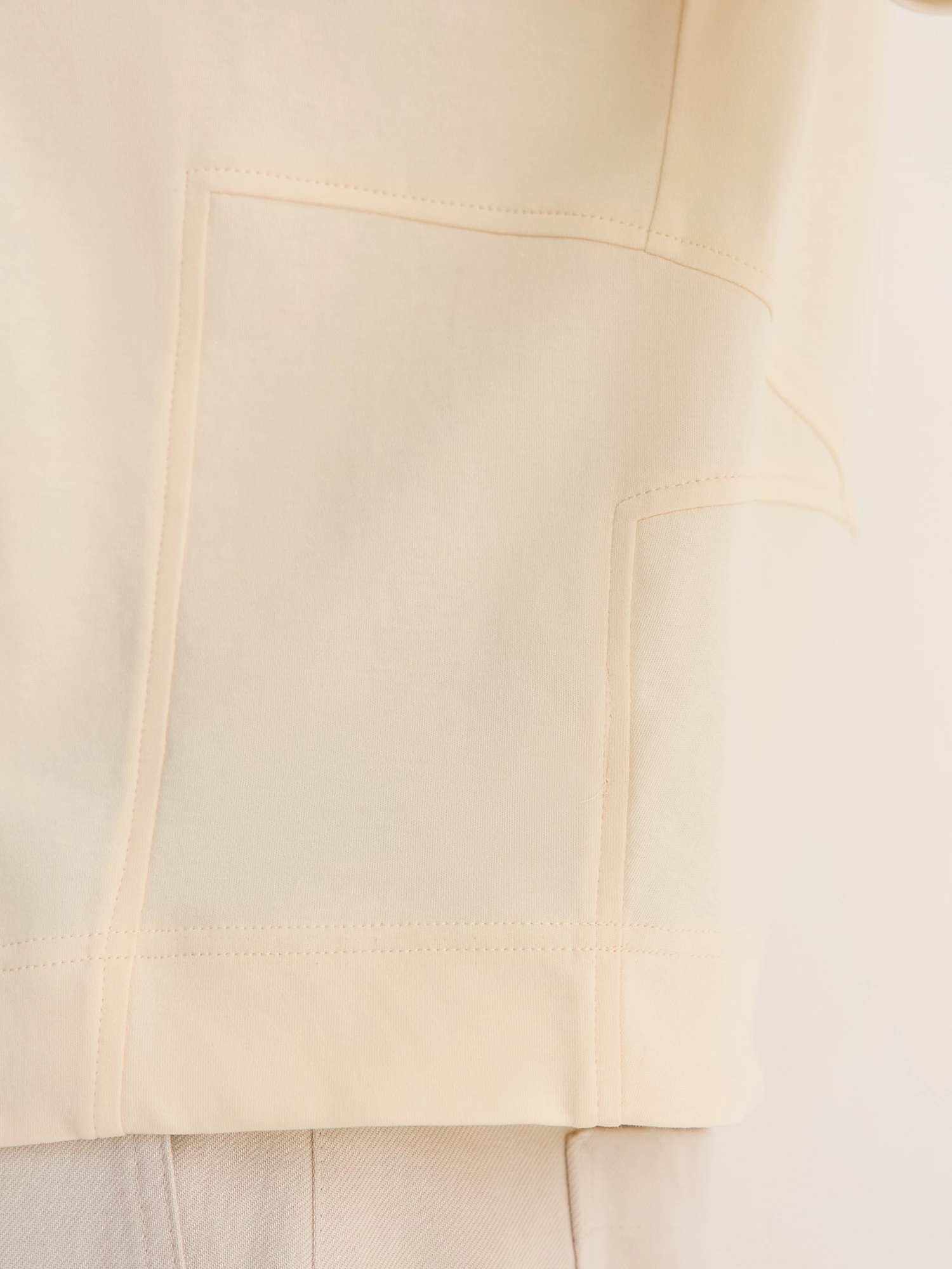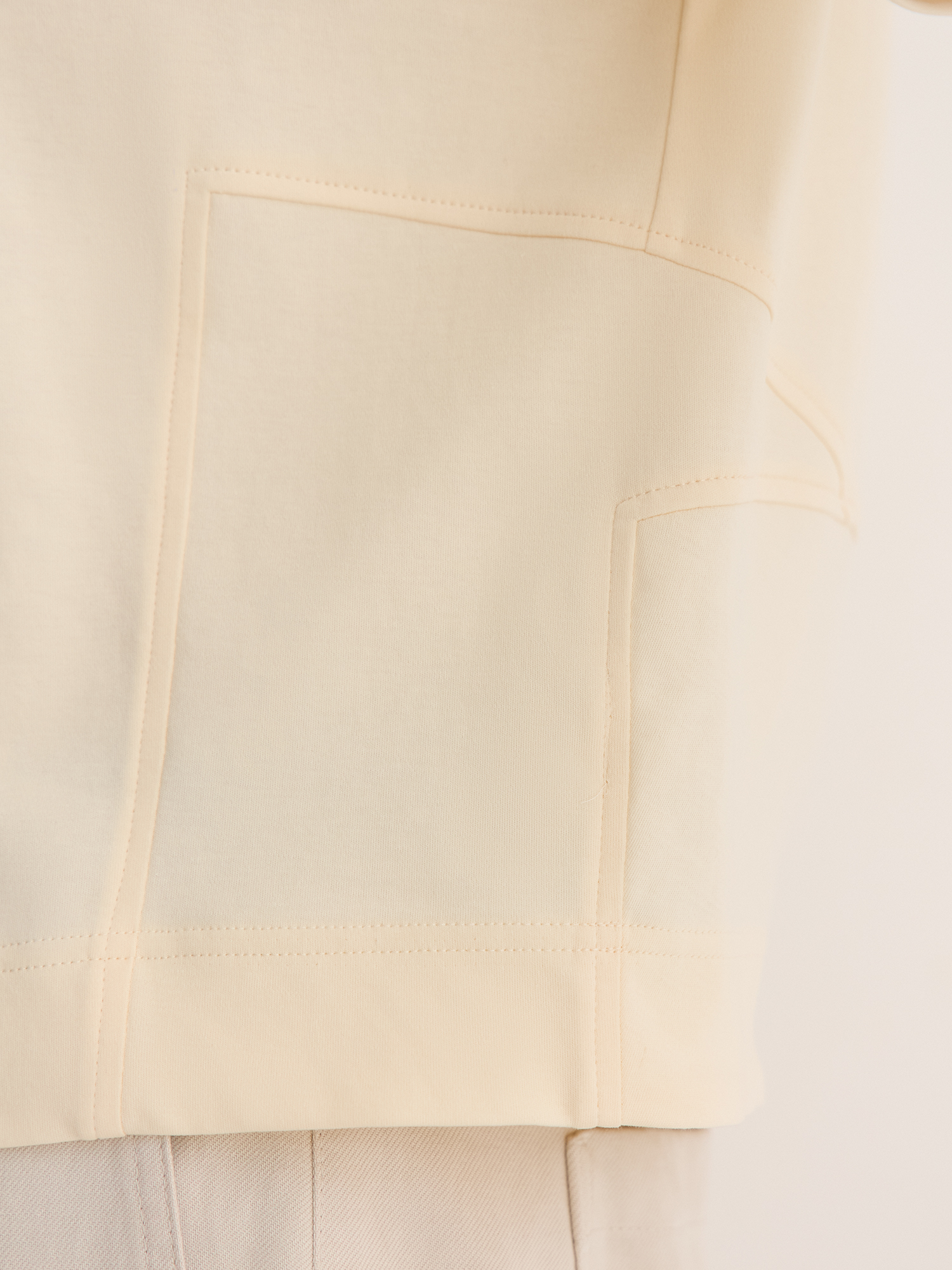 Свободный, но продуманный крой мягко облегает фигуру, не сковывая движений. Круглый вырез подчёркивает линию шеи, а аккуратные швы и отрезной низ добавляют модели чёткость и стиль.
