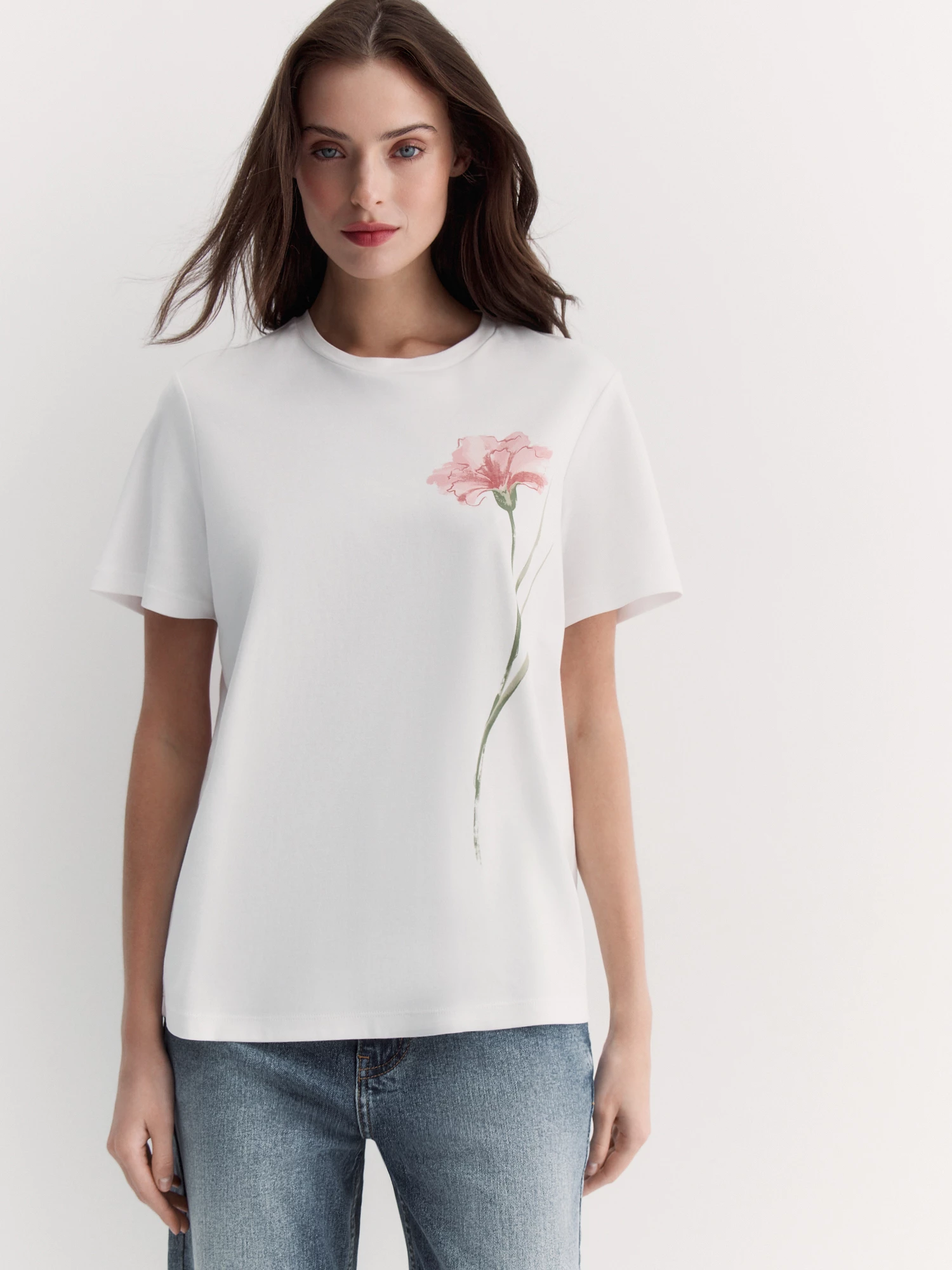 Бренд: ElisЦвет: БелыйСостав: Хлопок - 100%Артикул: TS0106K6Размер на модели: 44Коллекция: ВРЕМЯ ЦВЕСТИ