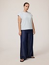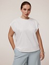 Футболка выполнена в стиле «кэжуал», но не лишена романтики. Выбрали для модели со сложным декором эластичный хлопковый трикотаж. Хлопок в составе такого полотна гипоаллергенен, хорошо дышит, удобен в эксплуатации и не требует дополнительного ухода. Спандекс добавляет натуральным волокнам формоустойчивость и эластичность. Футболка без рукавов со слегка спущенным плечом зайдет в гардероб как соло и как первый слой. Модель прямого силуэта дополнена небольшими разрезами по бокам, обеспечивающими прекрасную посадку по бедрам. Аккуратный круглый вырез создает сбалансированный силуэт, подчеркивая зону декольте, по горловине выполнена обтачка из хлопкового трикотажа рибана в тон основной ткани. Привлекает внимание вышивка с пайетками в комбинации с принтом, нанесенные на собственном производстве полного цикла. Многослойный и многогранный, декор сочетает в себе различные техники и материалы для создания уникального визуального эффекта. Принт формирует основу изображения, задавая цветовую гамму и общие контуры рисунка. Вышивка добавляет текстуру и рельефность, подчеркивая детали и создавая ощущение реалистичности. Пайетки придают декору блеск и динамику, усиливая 3D-эффект за счет игры света и тени. Акцент здесь сделан на сложной, детализированной работе и визуальной выразительности. Ветка с цветами в таком исполнении выглядит живой и объемной, что делает футболку ярким и запоминающимся предметом гардероба. Универсальный белый цвет - отличная база для дизайнерского декора.