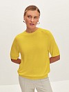 При создании цельновязанной футболки с коротким рукавом реглан и круглой горловиной использовали итальянскую вискозную пряжу, которая по своим свойствам отлично пропускает воздух. Прямой силуэт и средний объем модели обеспечит комфортную, не сковывающую движения посадку. Изделие дополнит образ в стиле смарт – кэжуал.