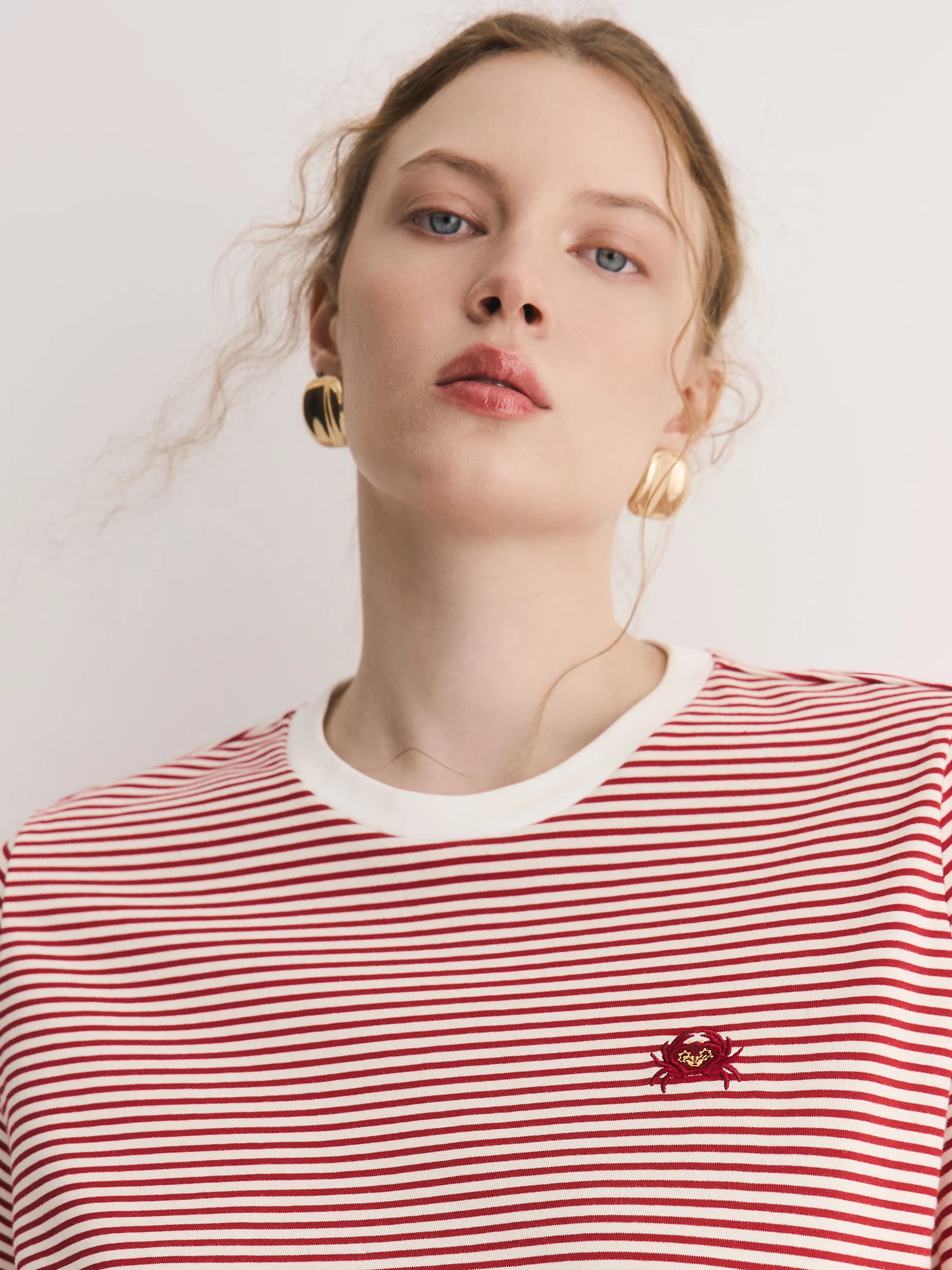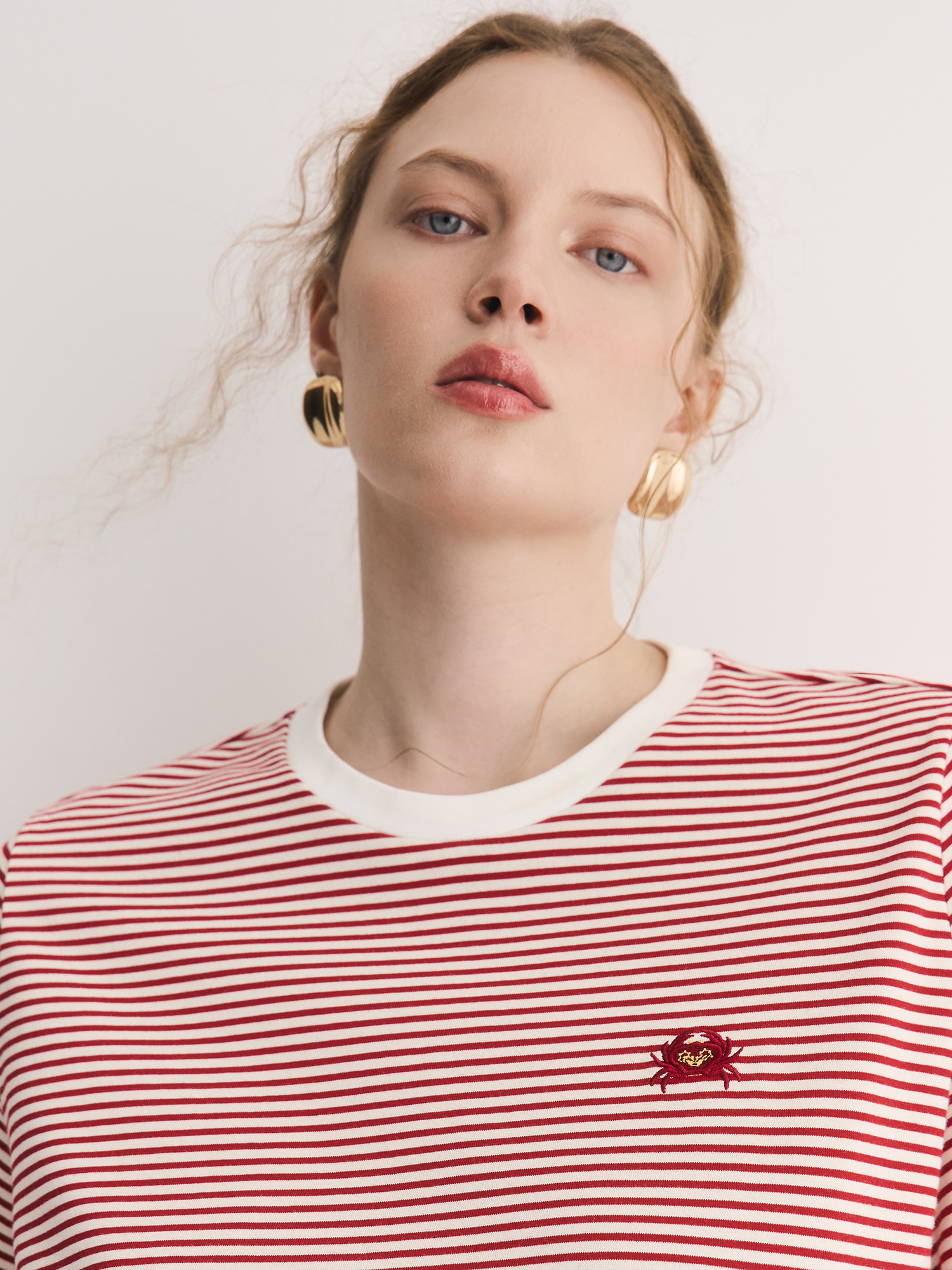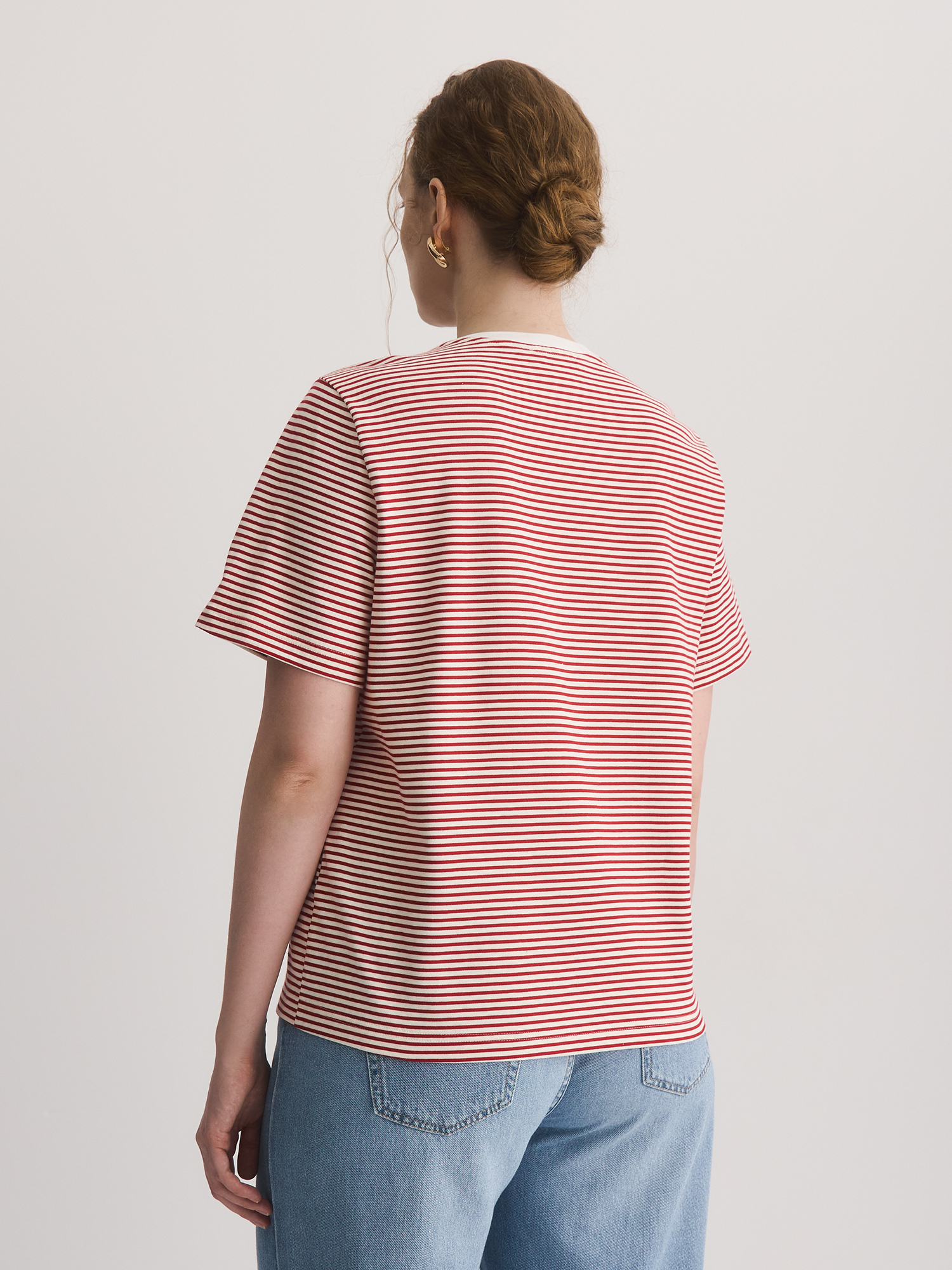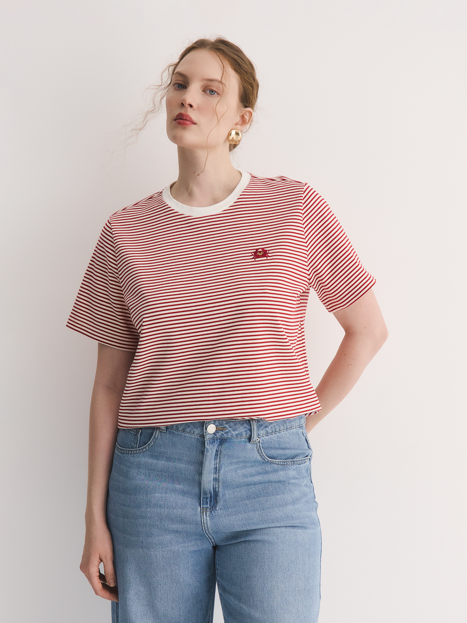 Бренд: LalisЦвет: Бело-бордовыйСостав: Хлопок - 100%Артикул: TS0199K1RРазмер на модели: 50Коллекция: МОРСКАЯ ПРОГУЛКА
