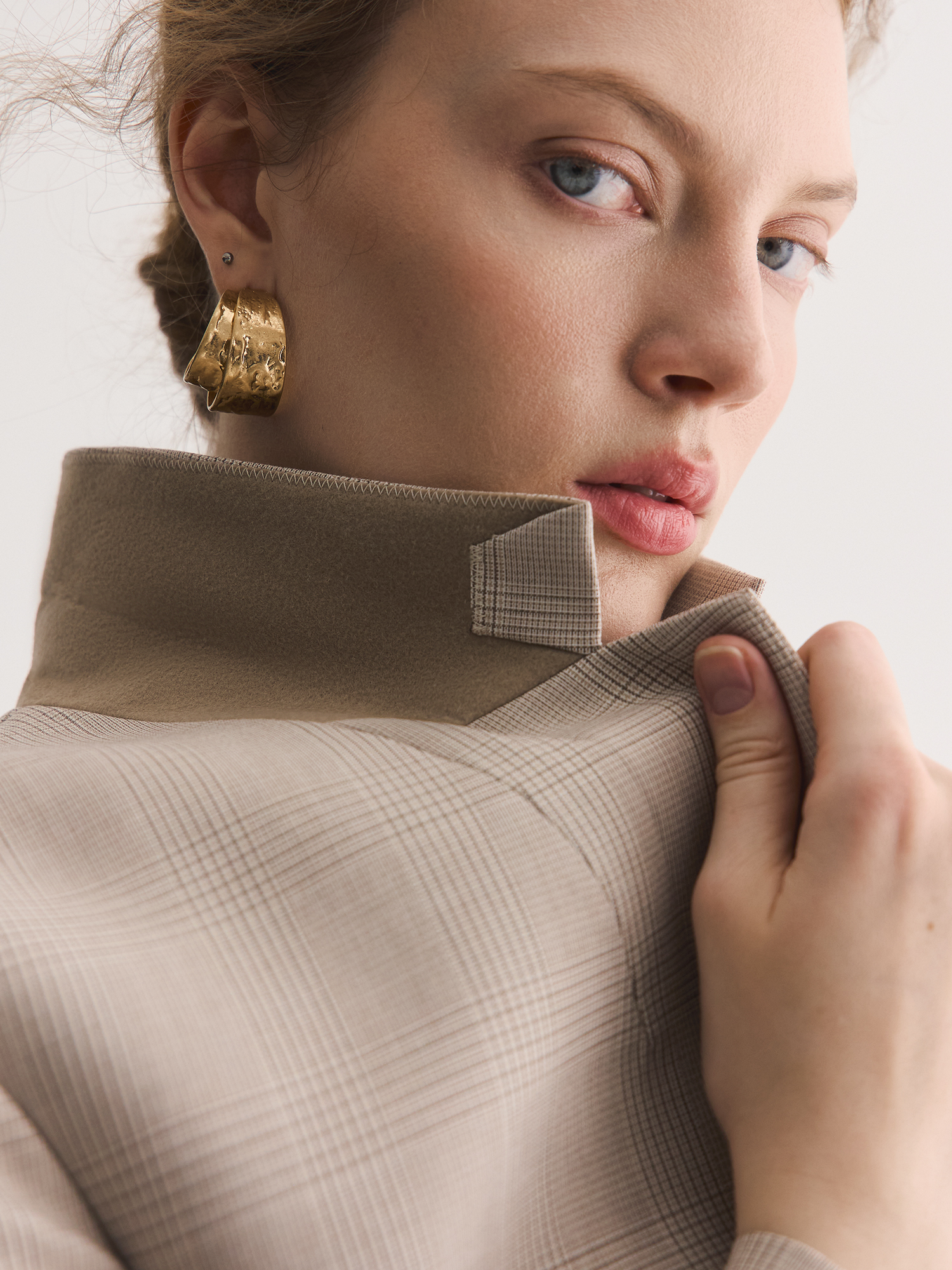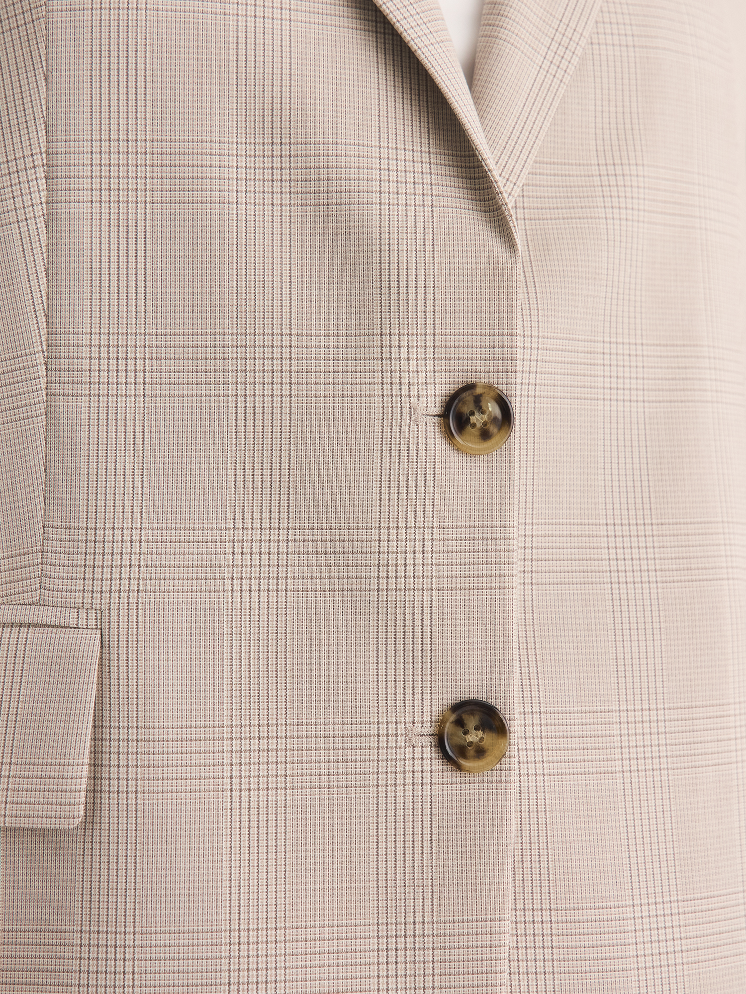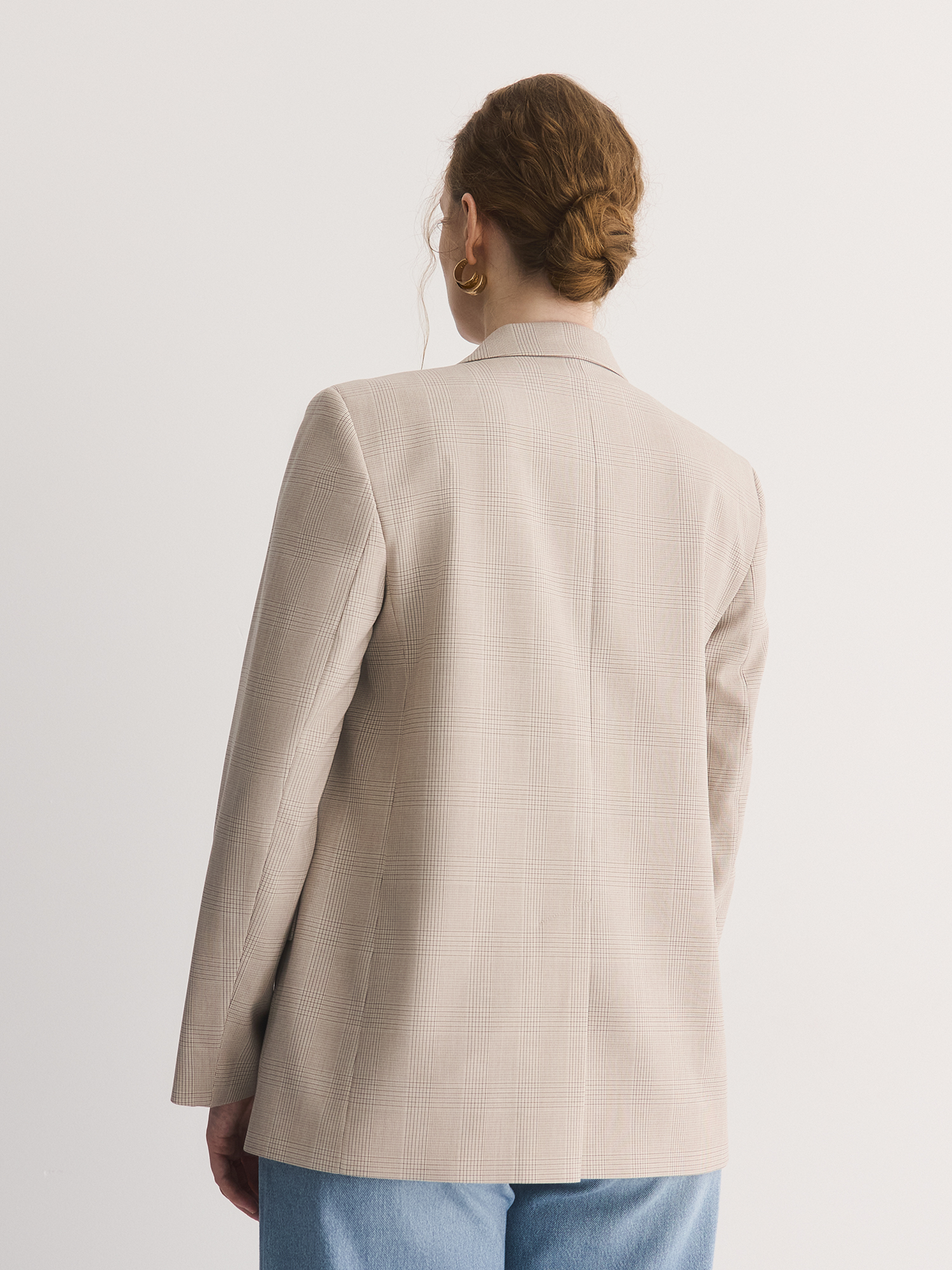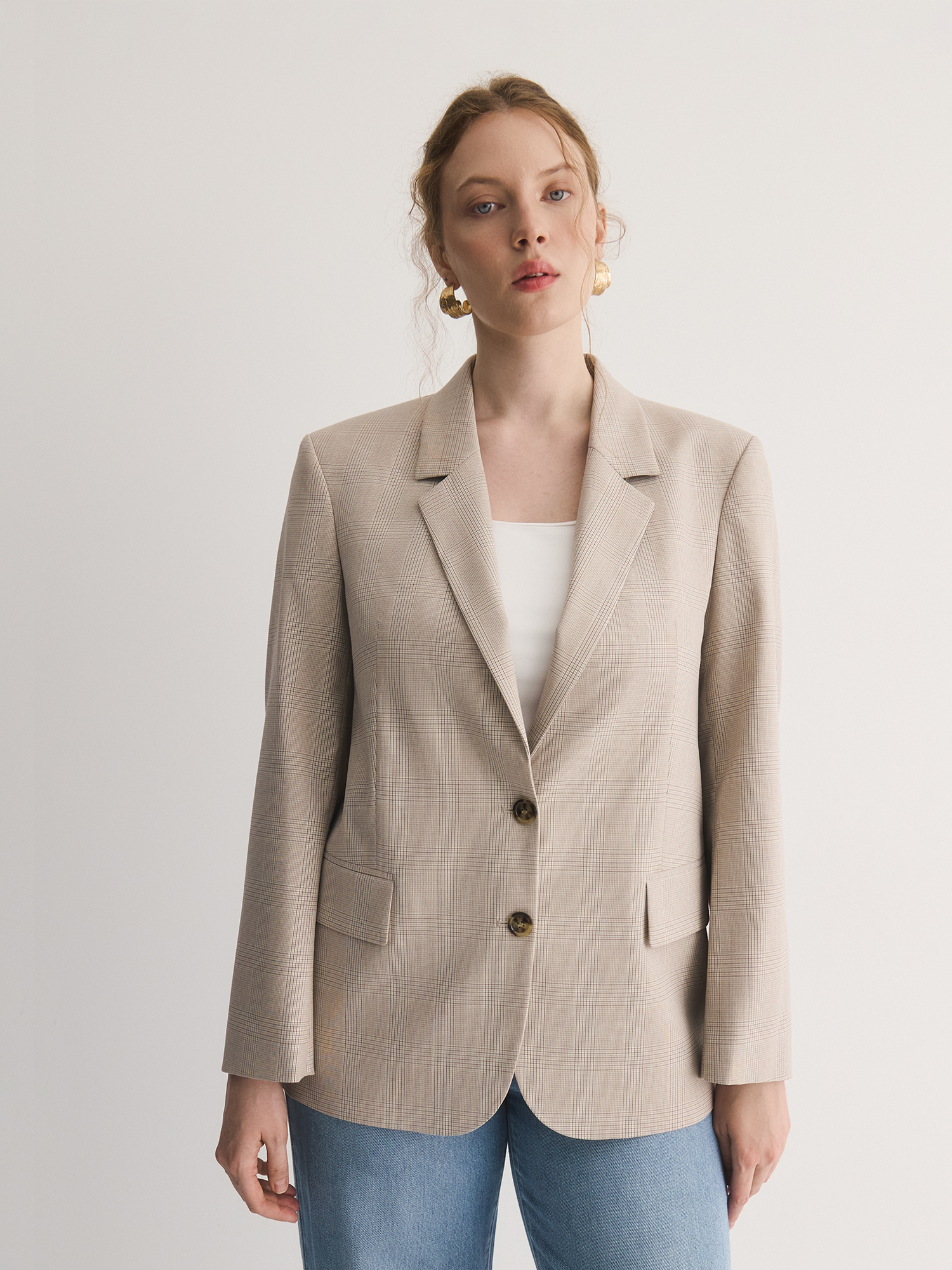 Жакет из светлой вискозной костюмной ткани — это универсальный и стильный элемент гардероба, который легко вписывается в различные образы и подходит к низу с любой фактурой ткани. Его можно сочетать как с классическими костюмными юбками и брюками, так и с более повседневными вариантами, такими как джинсы или платья. Это делает пиджак идеальным выбором для создания как деловых, так и кэжуальных луков. Модель жакета отличается элегантным V-вырезом, обрамленным небольшим английским воротником, что придает ей утонченный вид. Длинные втачные рукава добавляют изящества и делают жакет подходящим для различных сезонов. Вертикальные вытачки, предусмотренные в конструкции, обеспечивают комфортную посадку и подчеркивают силуэт, создавая эффект легкой стройности. Боковые карманы с клапанами не только добавляют функциональности, но и расставляют акценты, придавая жакету стильный и завершенный вид. Жакет выполнен из смесовой ткани, в состав которой входят вискоза и полиэстер, а также спандекс. Вискоза обеспечивает мягкость и приятные тактильные ощущения, что делает жакет комфортным для носки в течение всего дня. Полиэстер добавляет прочности и долговечности, позволяя изделию сохранять прекрасный внешний вид. Спандекс, в свою очередь, обеспечивает эластичность и формоустойчивость, что позволяет жакету идеально сидеть на фигуре и не терять форму. Светлый оттенок жакета универсален и позволяет комбинировать его с абсолютно любыми цветами и оттенками. Выбор наших стилистов - сочетание со светлым топом и юбкой насыщенного темно-коричневого цвета, что создаст гармоничный и стильный образ. Такой жакет станет отличным дополнением к любому гардеробу, позволяя легко адаптировать его под различные стили и ситуации, от офисных до вечерних выходов.