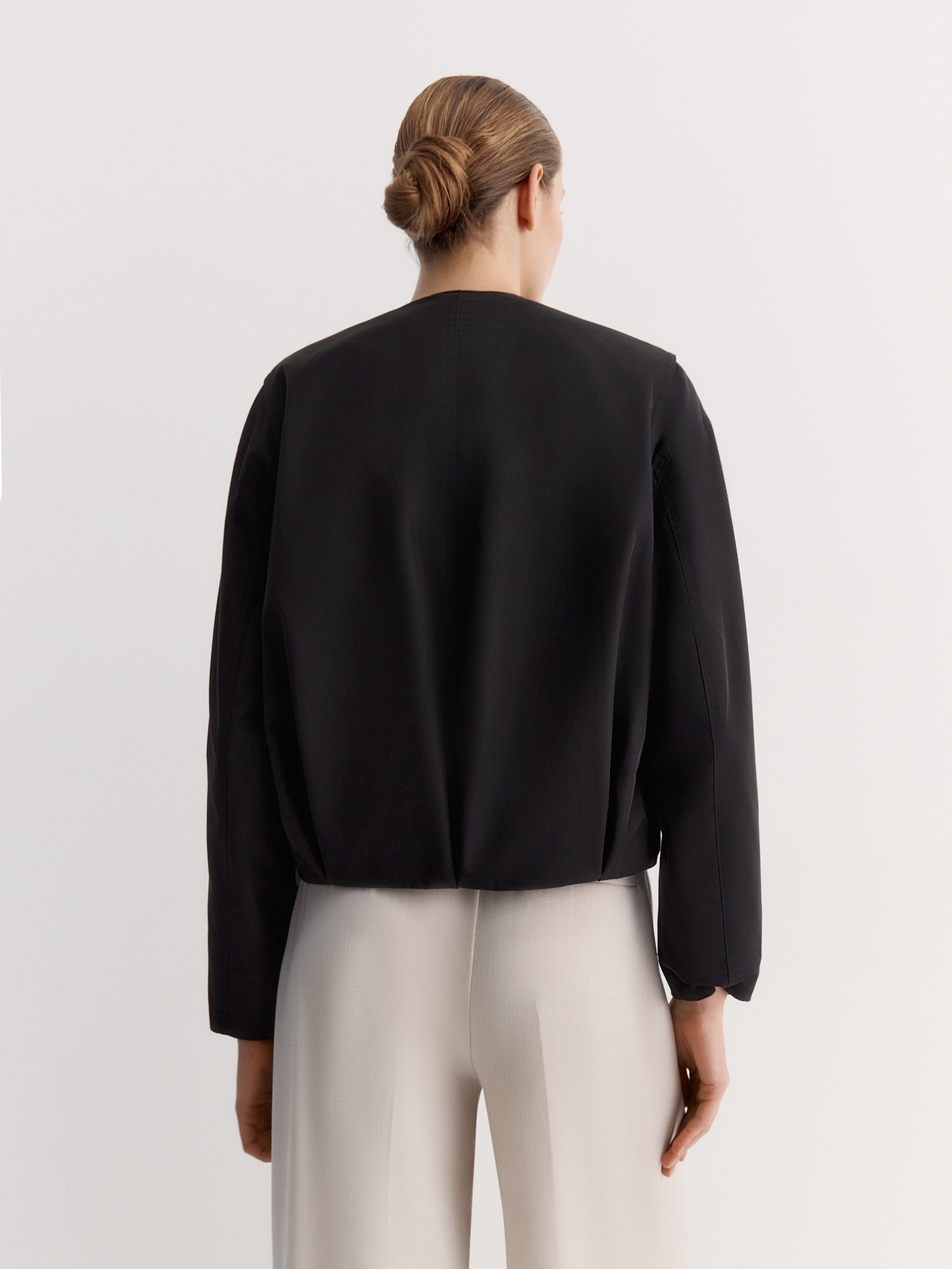 Короткая куртка из смесовой ткани с высоким содержанием гребенного хлопка и вискозы – лёгкая, но плотная, удобная и с интересными деталями. Сшита из дышащей ткани, которая приятна к телу, а полная поливискозная подкладка делает носку комфортной.