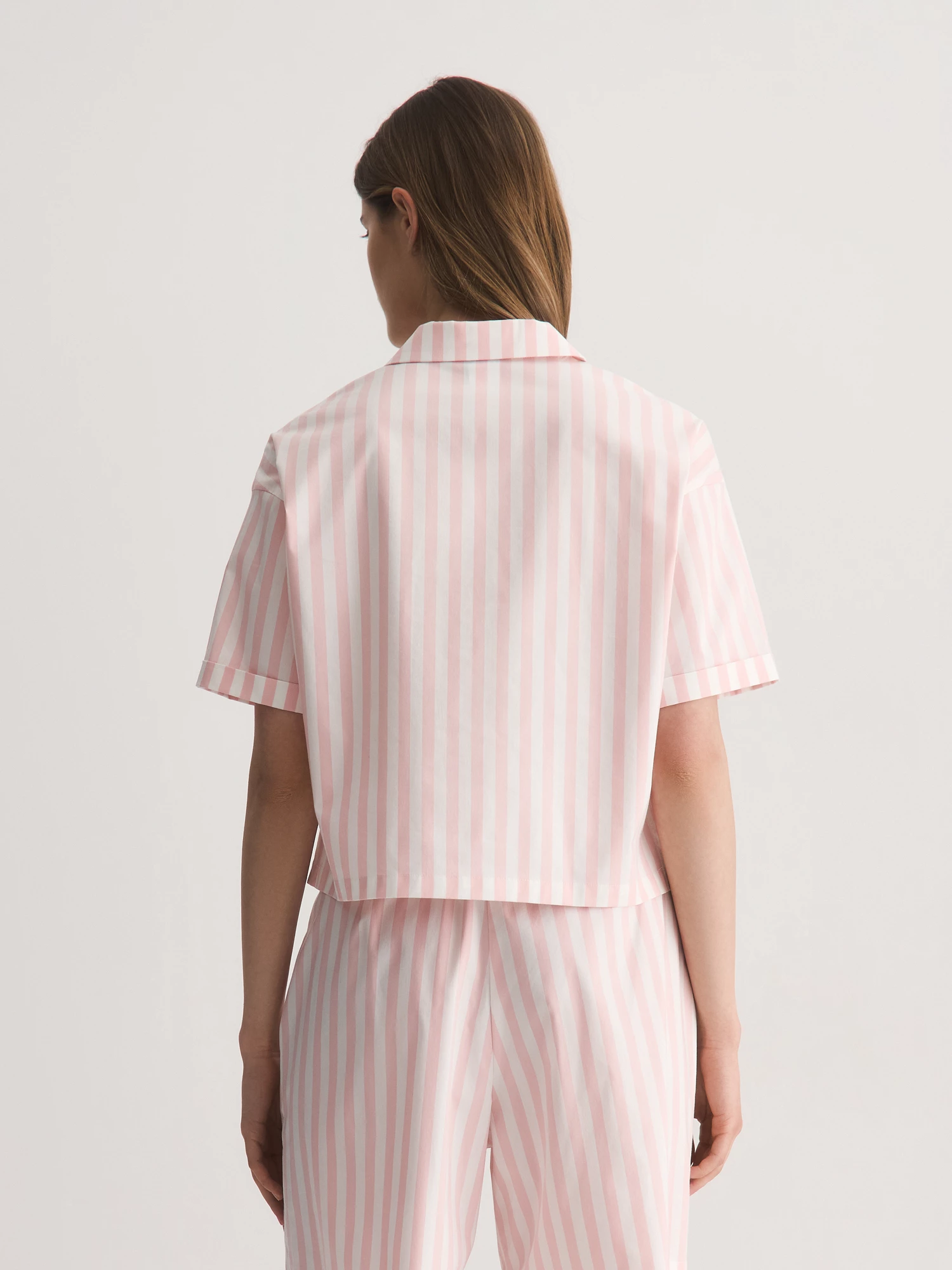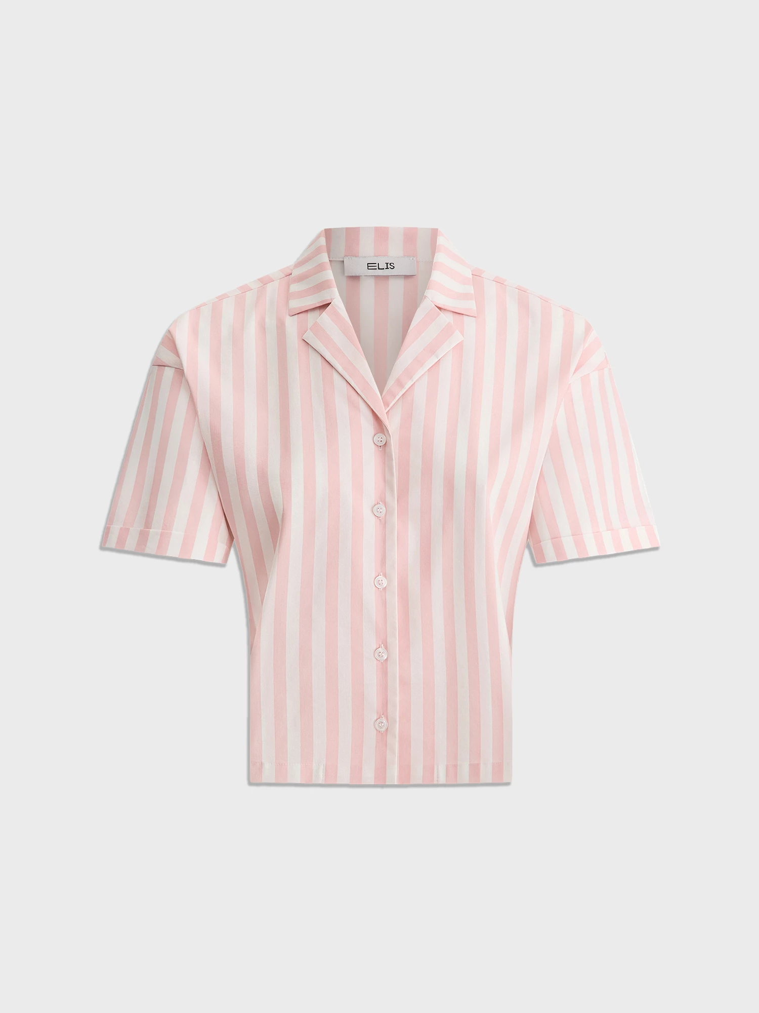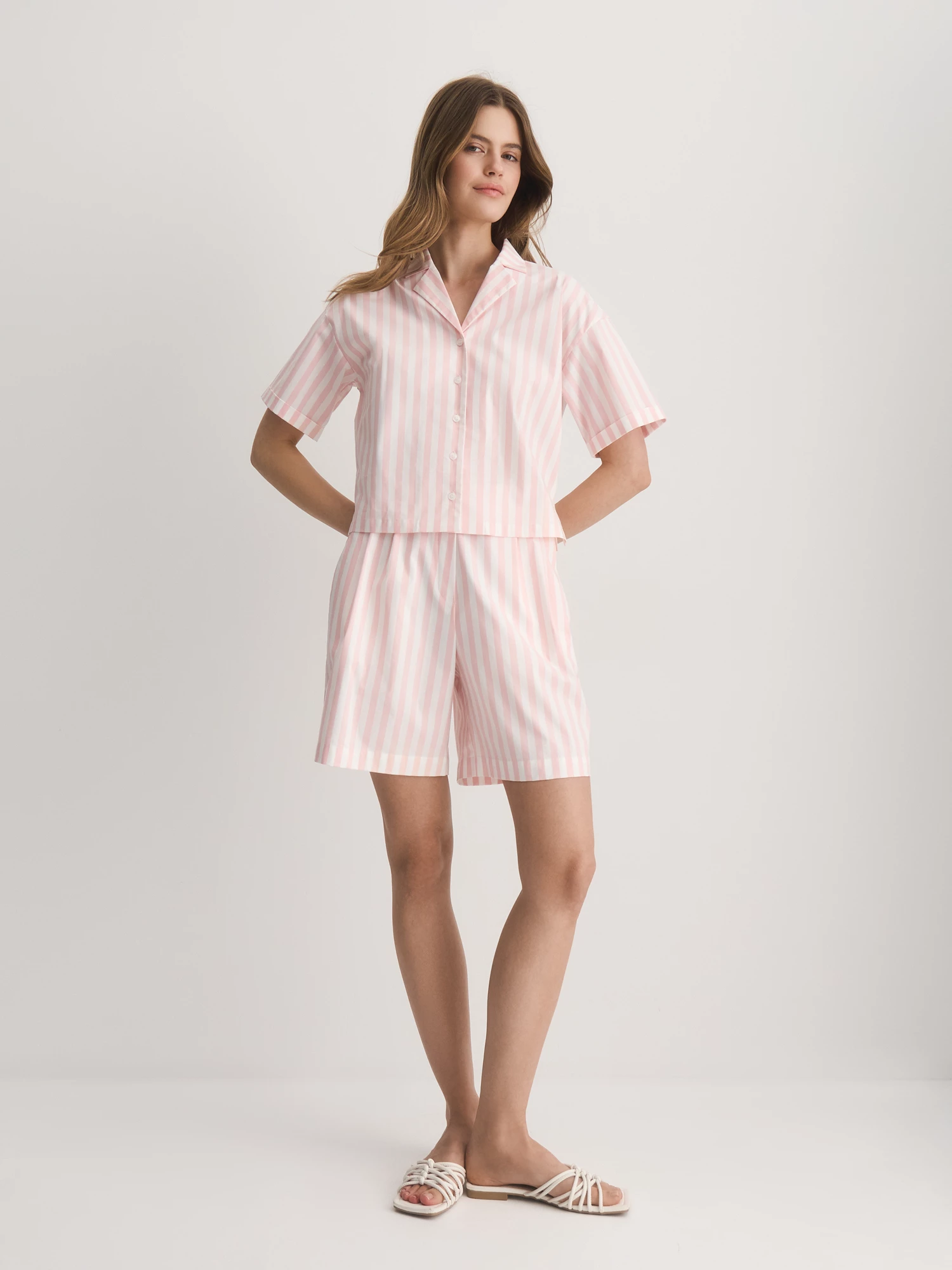 Свободная прямая рубашка в пижамном стиле с бело-розовой полоской.