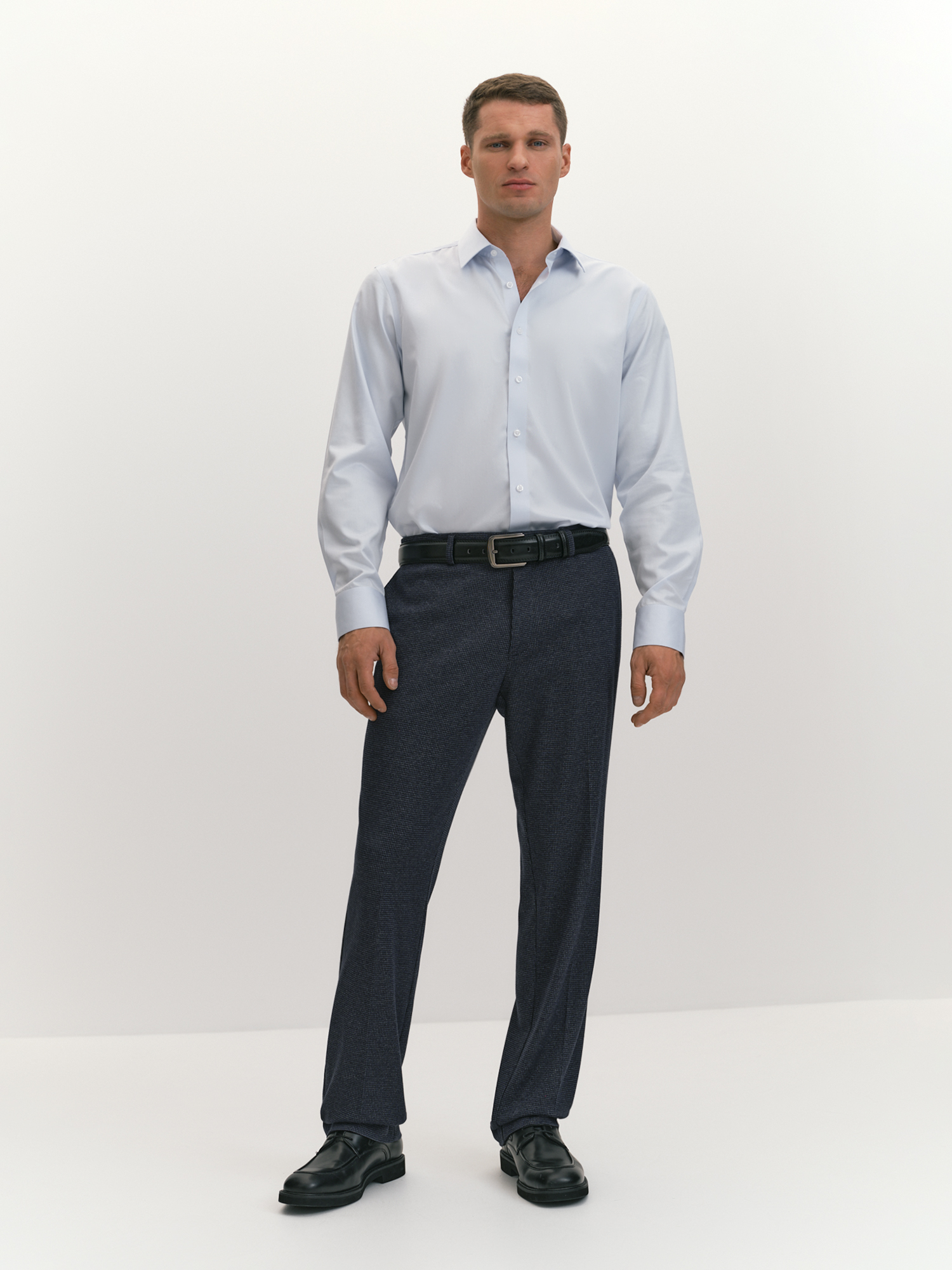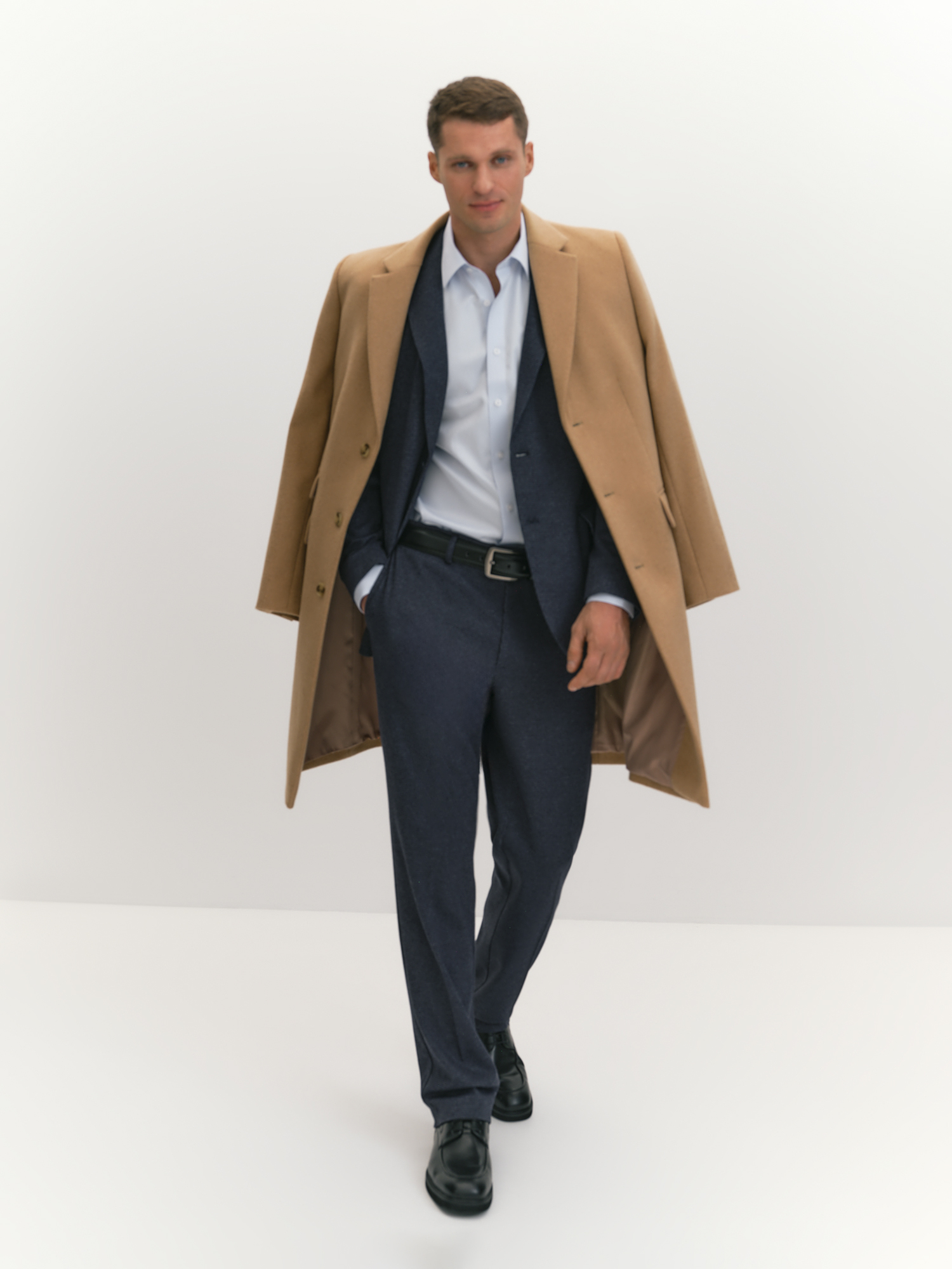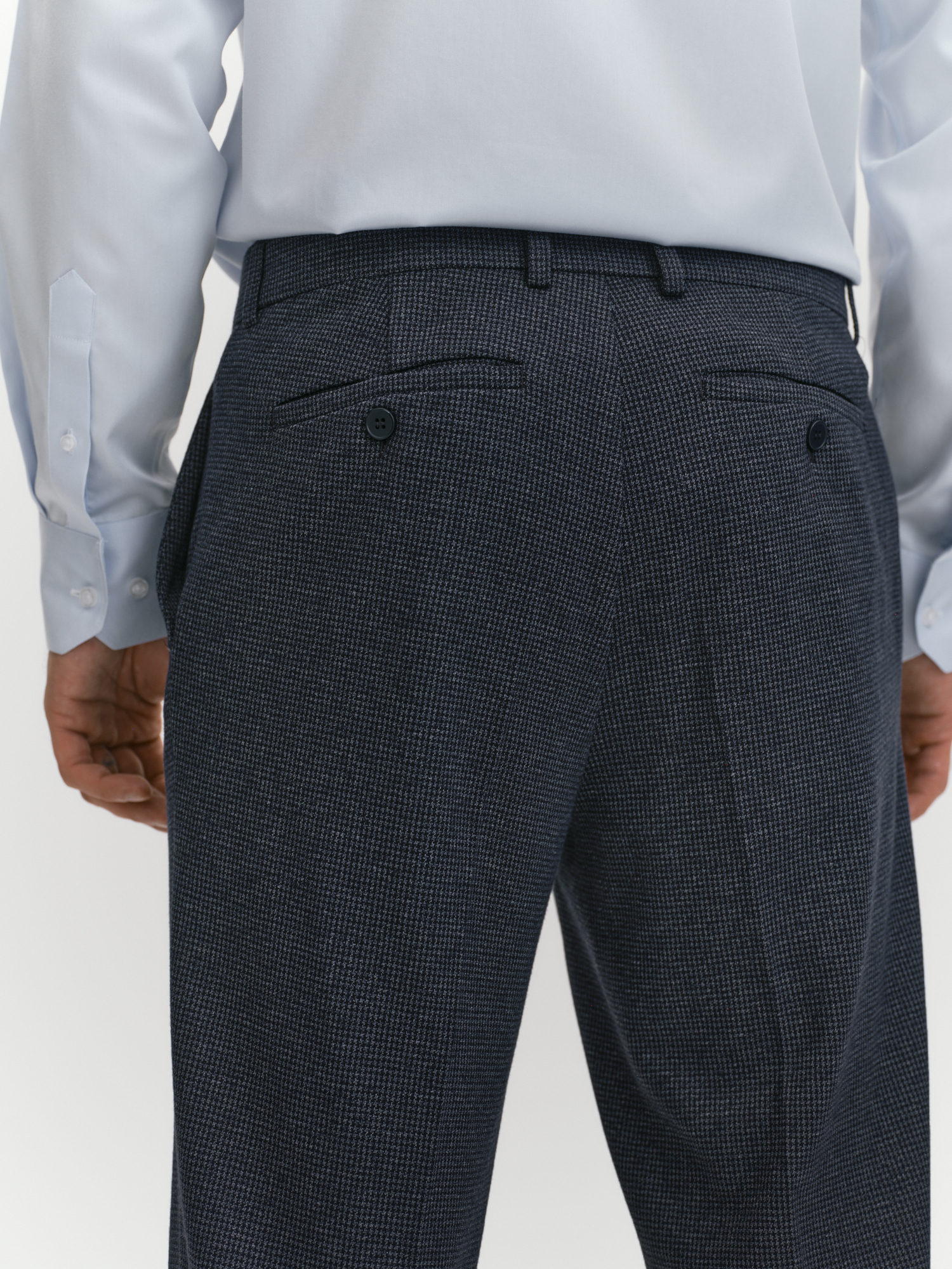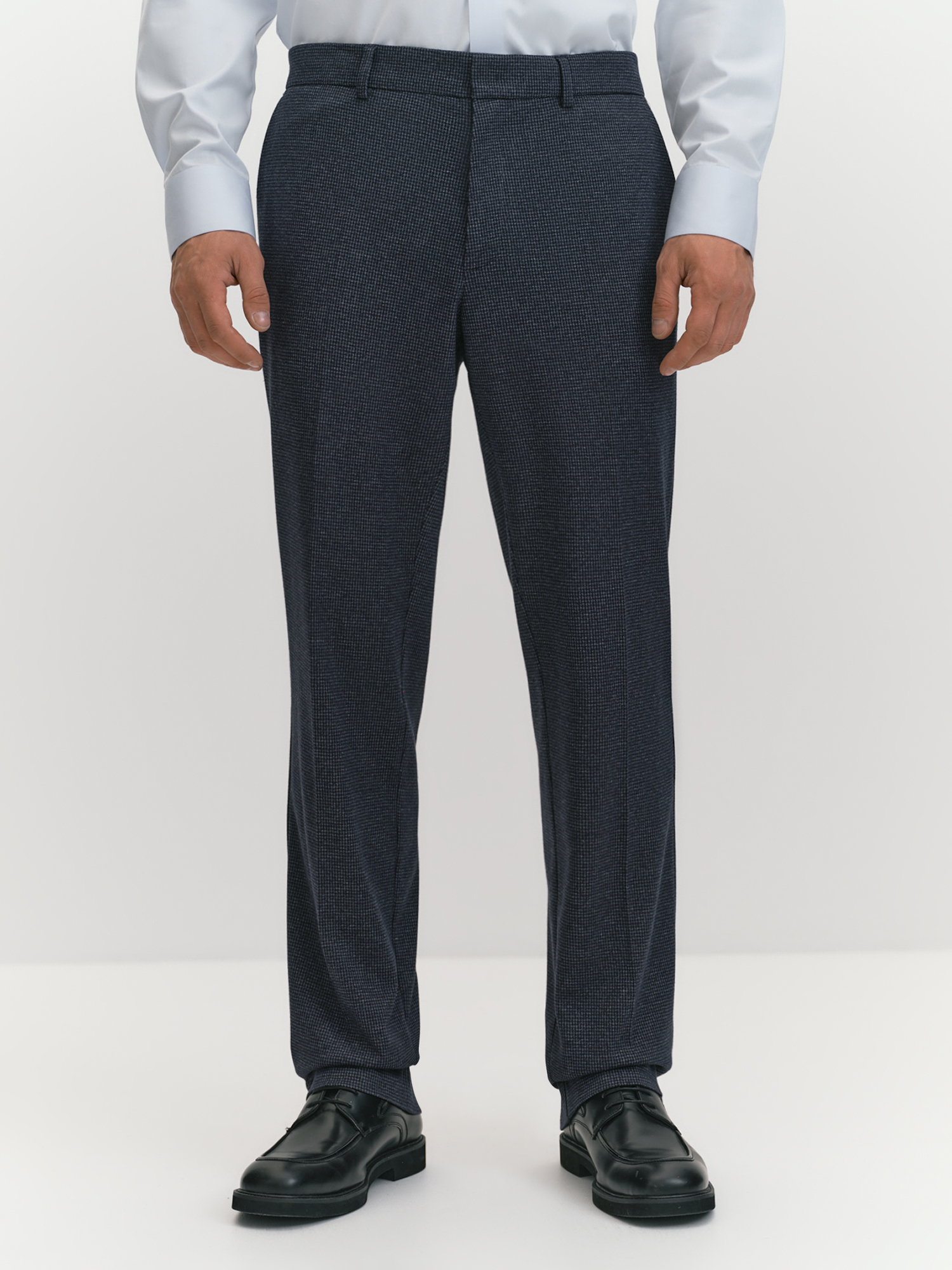 Зауженные брюки на притачном поясе со шлевками с легендарным принтом pied-de-poule (рус. пье-де-пуль) одновременно самодостаточны и прекрасно дополняют однобортный костюмный пиджак. Брюки выполнены с традиционной застежкой-гульфиком, с косыми боковыми карманами, усиленными закрепками, и задними прорезными карманами с листочкой и фиксацией на пуговицу. Особый комфорт изделию придает качественный трикотаж с хлопком и вискозой, он воздухопроницаем, долговечен и хорошо держит форму. Кроме того, брюки из такого трикотажа станут удачным дополнением к неформальным офисным пиджакам, рубашкам, свитшотам, водолазкам, свитерам и джемперам, классическая ломаная клетка в темно синем делает модель универсальной в сочетаниях. Выбор наших стилистов для завершения костюмного образа - классическое бежевое пальто с дополнительным карманом IPD0018.