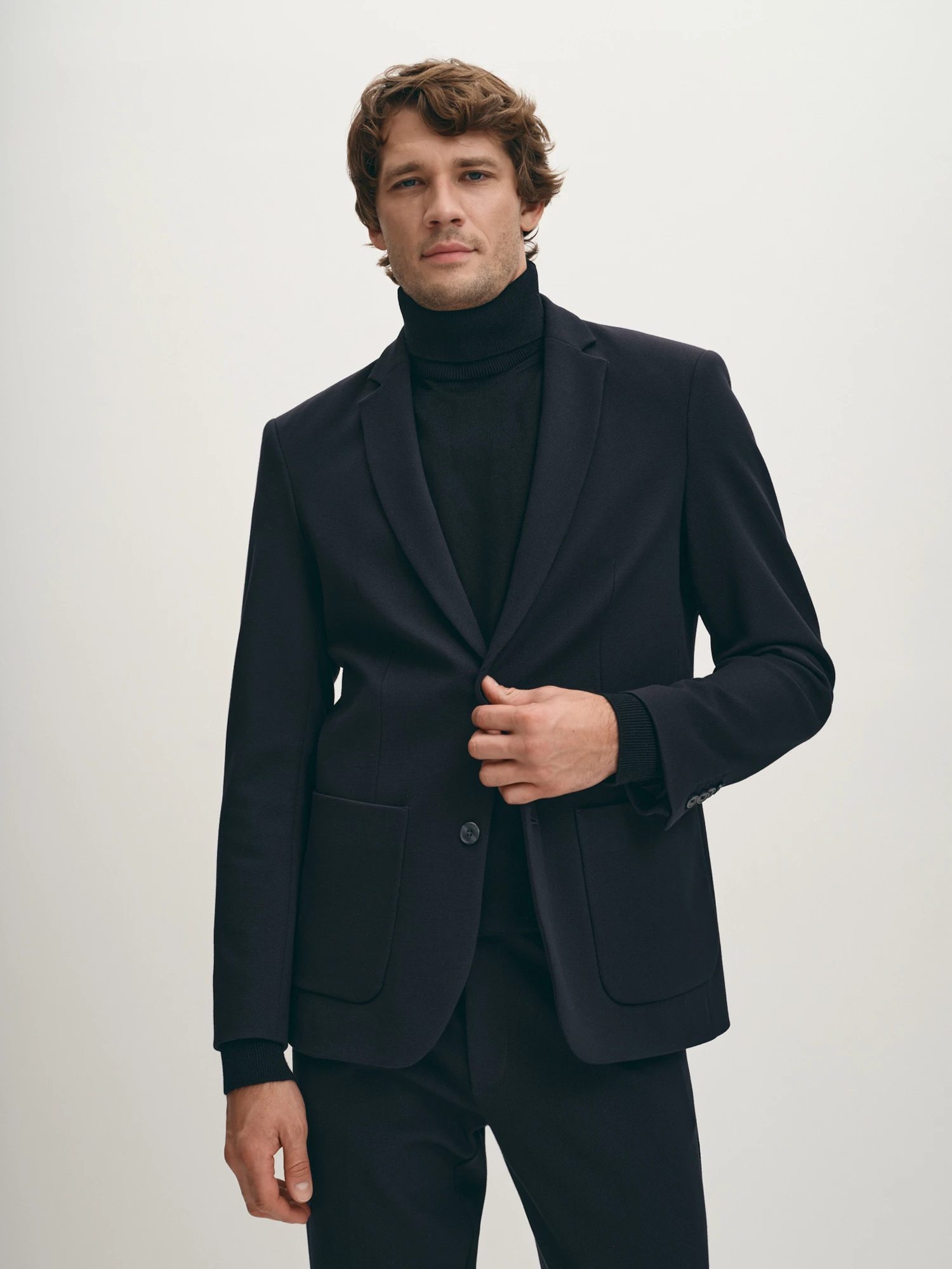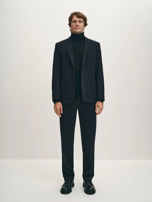 Этот пиджак - отличный выбор для тех, кто хочет выглядеть стильно и элегантно, но при этом чувствовать себя комфортно. Благодаря мягкому фактурному трикотажу, пиджак идеально сидит по фигуре и не сковывает движений. Нейлоновые нити, использованные для укрепления материала, делают пиджак прочным и долговечным, предотвращая его вытягивание со временем. Темно-синий цвет придает пиджаку классический и изысканный вид, который подходит для любых случаев.