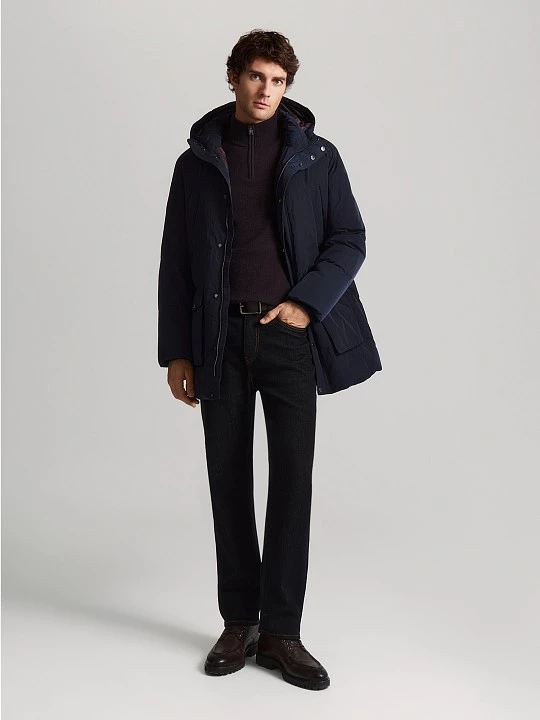 Теплая куртка из качественной водоотталкивающей ткани с четырьмя наружными карманами, подходит для осени и зимы. В области проймы пуховик дополнен двумя небольшими вентиляционными отверстиями.Модель делает теплее и уютнее капюшон на кулисе и шнуре и внешний ветрозащитный клапан. Качественный наполнитель из пуха и пера (индекс Fill Power 630-650) делает модную модель очень теплой и ультралегкой. Наполнитель равномерно распределен внутри пуховой куртки благодаря упаковке из пуходержащей ткани и дополнительно зафиксирован горизонтальной стежкой. Образ можно дополнять вязаными шапками, шарфами и перчатками, произведенными на наших собственных фабриках. Если подобрать размер пуховика на один-два больше обычного, можно формировать модный силуэт оверсайз. Oversize универсален, подходит для офиса, прогулок, спорта. Базовый темно-синий цвет сочетается с нейтральными цветами, а также с насыщенными и яркими оттенками. Индекс Fill Power 630-650 - это показатель натуральных наполнителей премиум-класса.