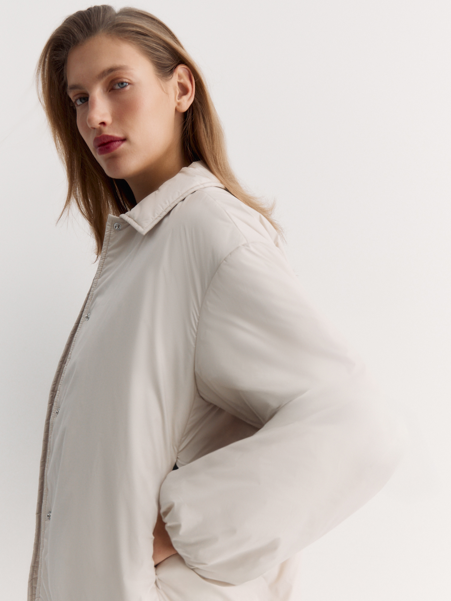 Невесомая утепленная куртка с отложным воротником – удобная, практичная и с продуманными деталями.