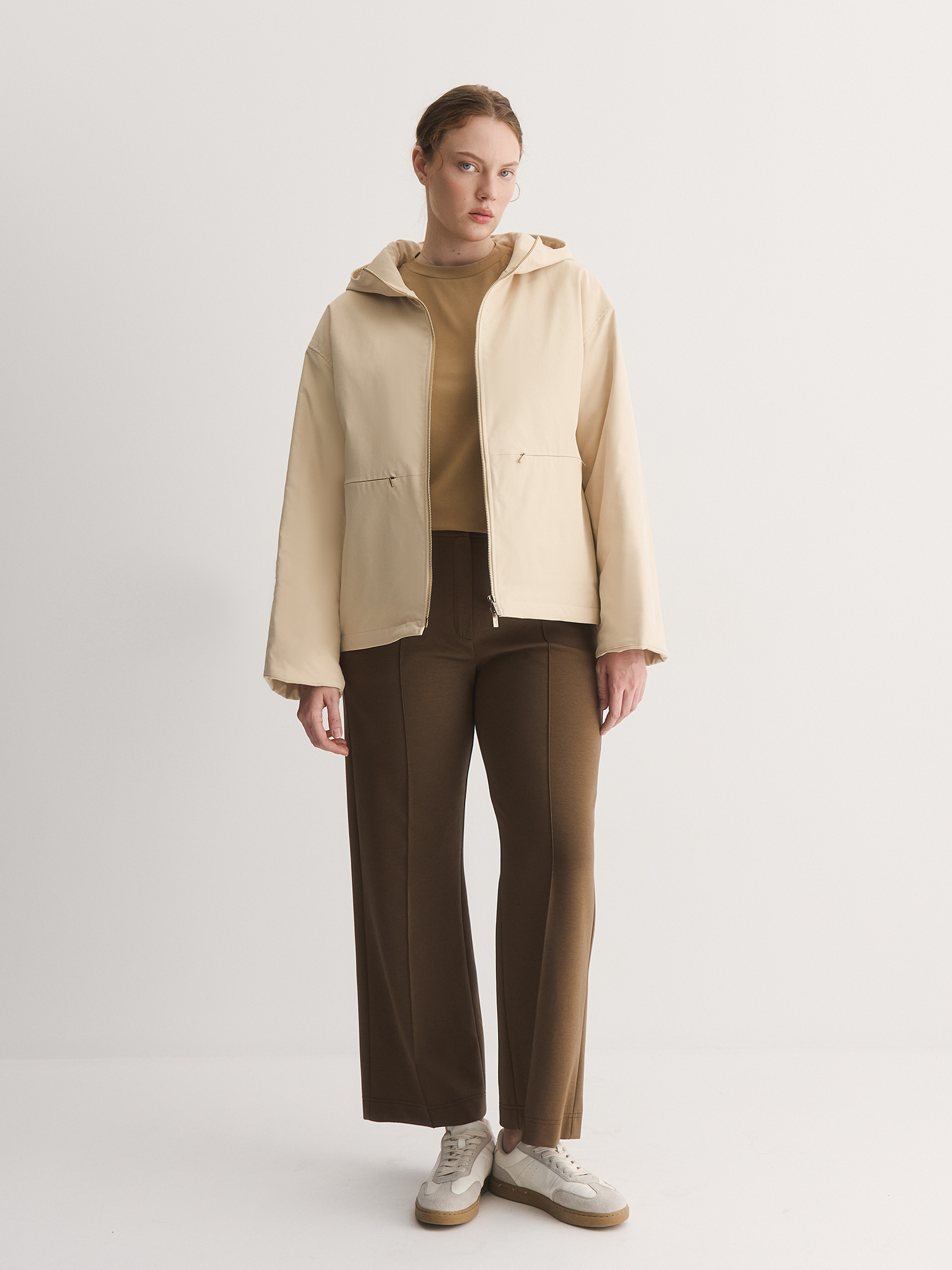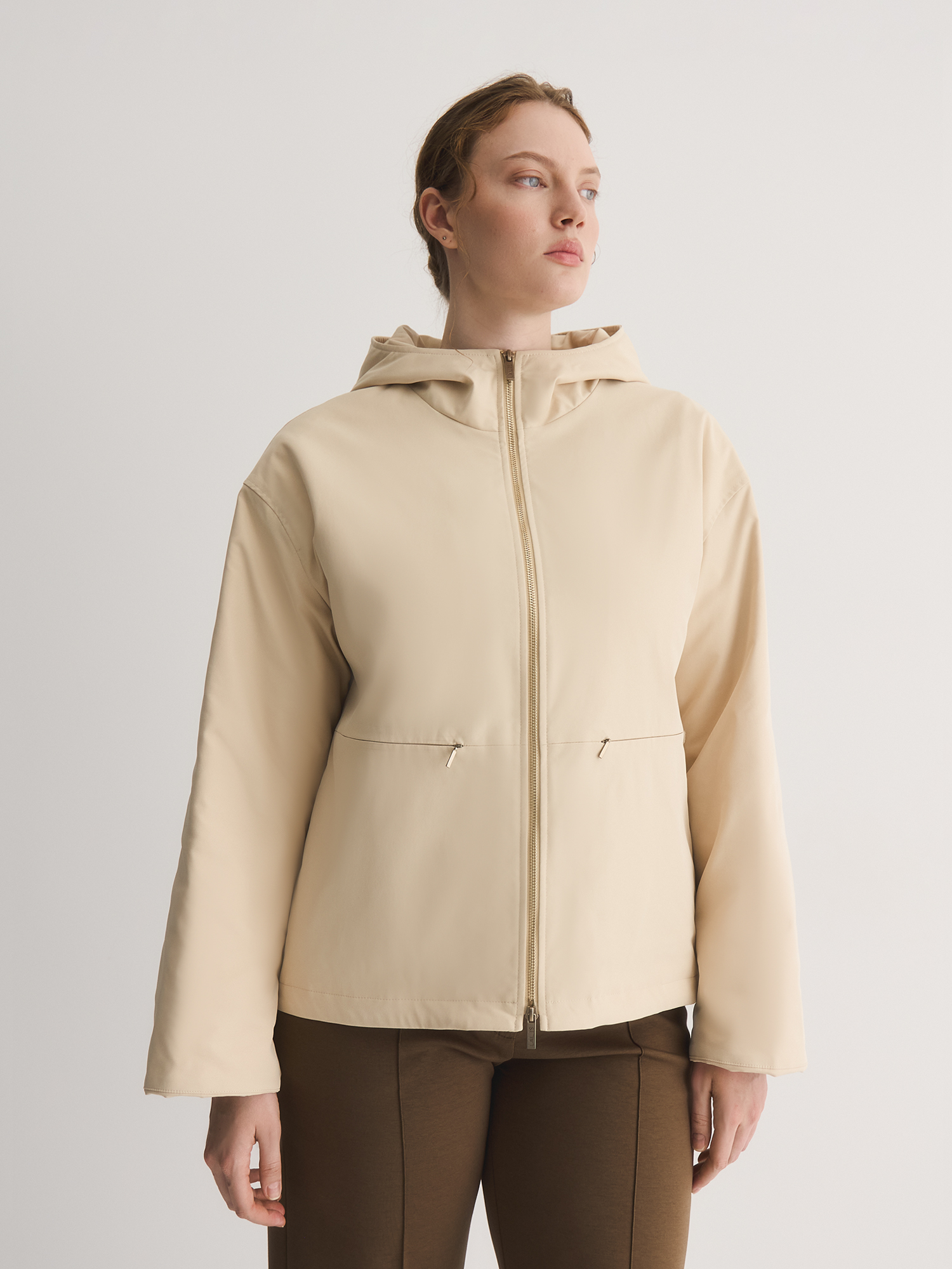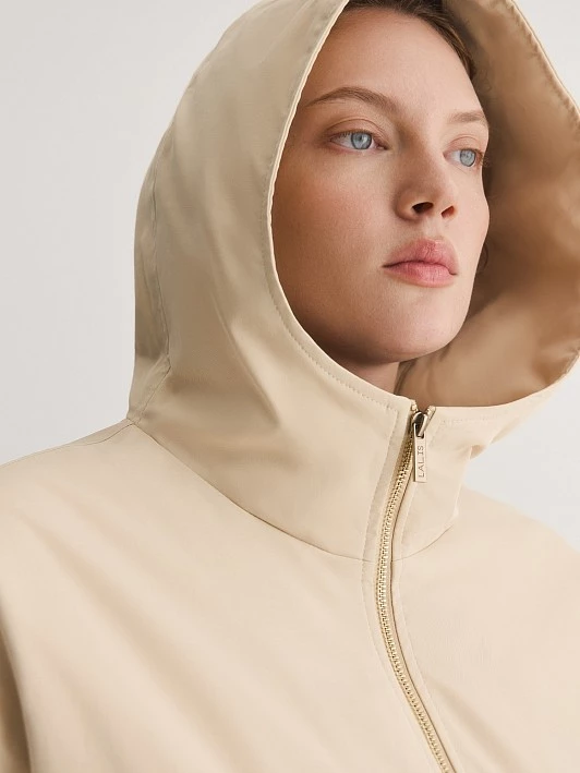 Куртка подходит для переменчивой веcенней погоды - несъемный капюшон переходит в воротник-стойку, хорошо защищает от ветра и расширяет стилистические возможности модели. В швах изделия расположены боковые карманы с практически незаметным горизонтальным входом на молнии.